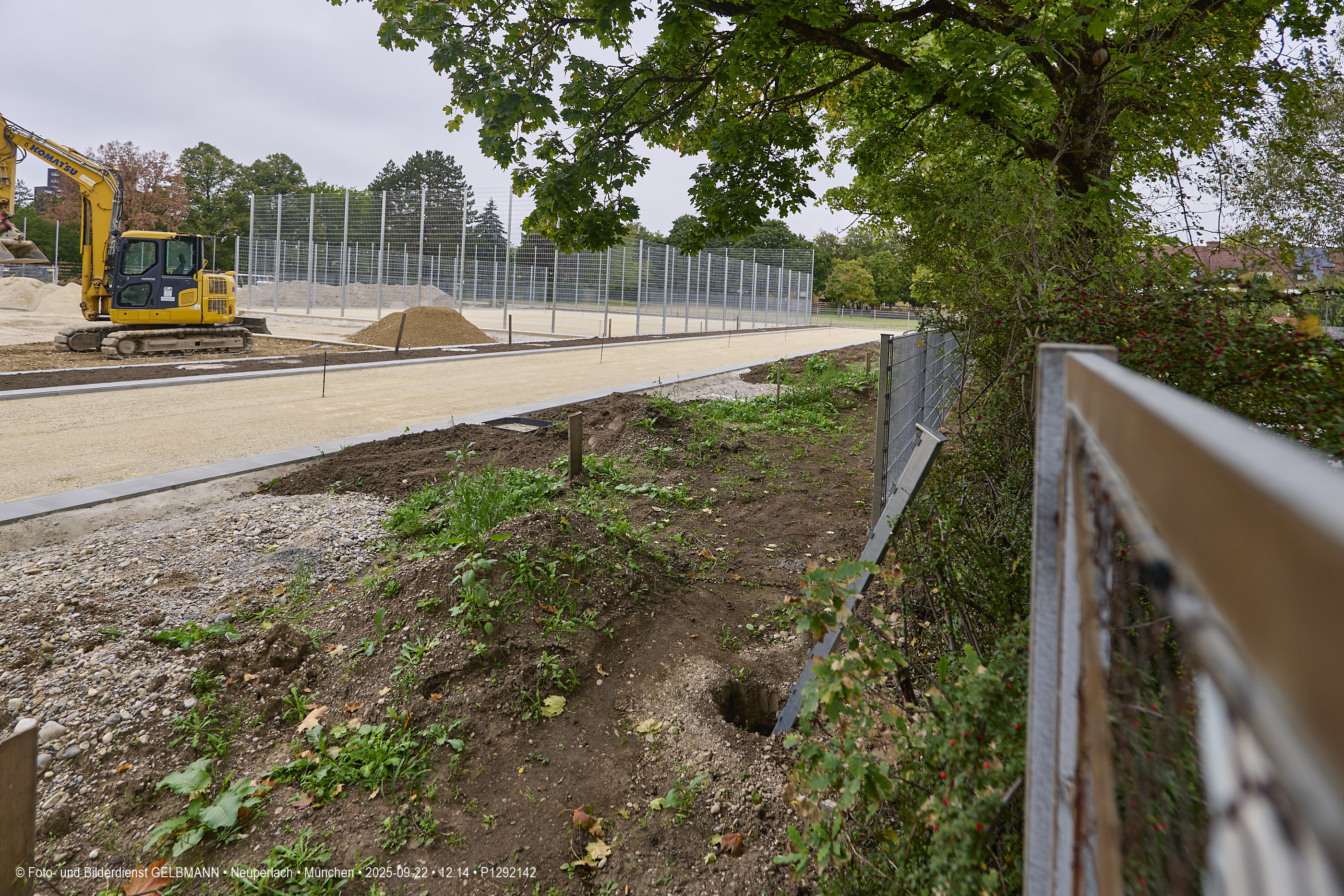Immer mehr Teile auf dem neuen Süortplatz an der Grundschule am Karl-Marx-Ring, dem neuen Campus Karl-Marx-Ring, bekommen ihr entgültiges Ausshehen. Im Augenblick ist die Laufstrecke fertiggestellt worden. Ein kleiner Teil des neuen Sportplatzes bekommt einen Zaun. Aus der Luft ist dies gut zu sehen. Ich vermute, es ist ein Basketball-Spielfeld.