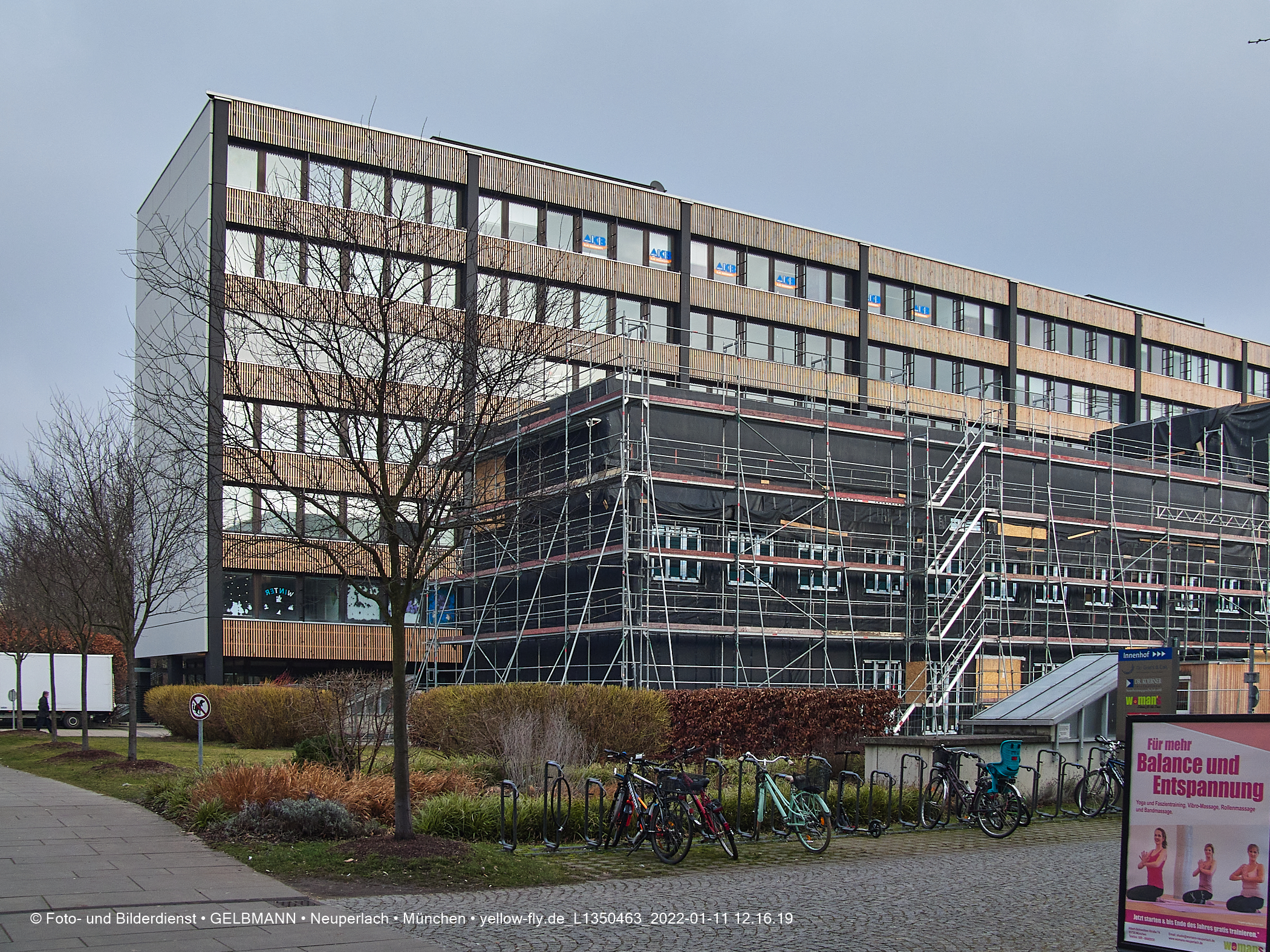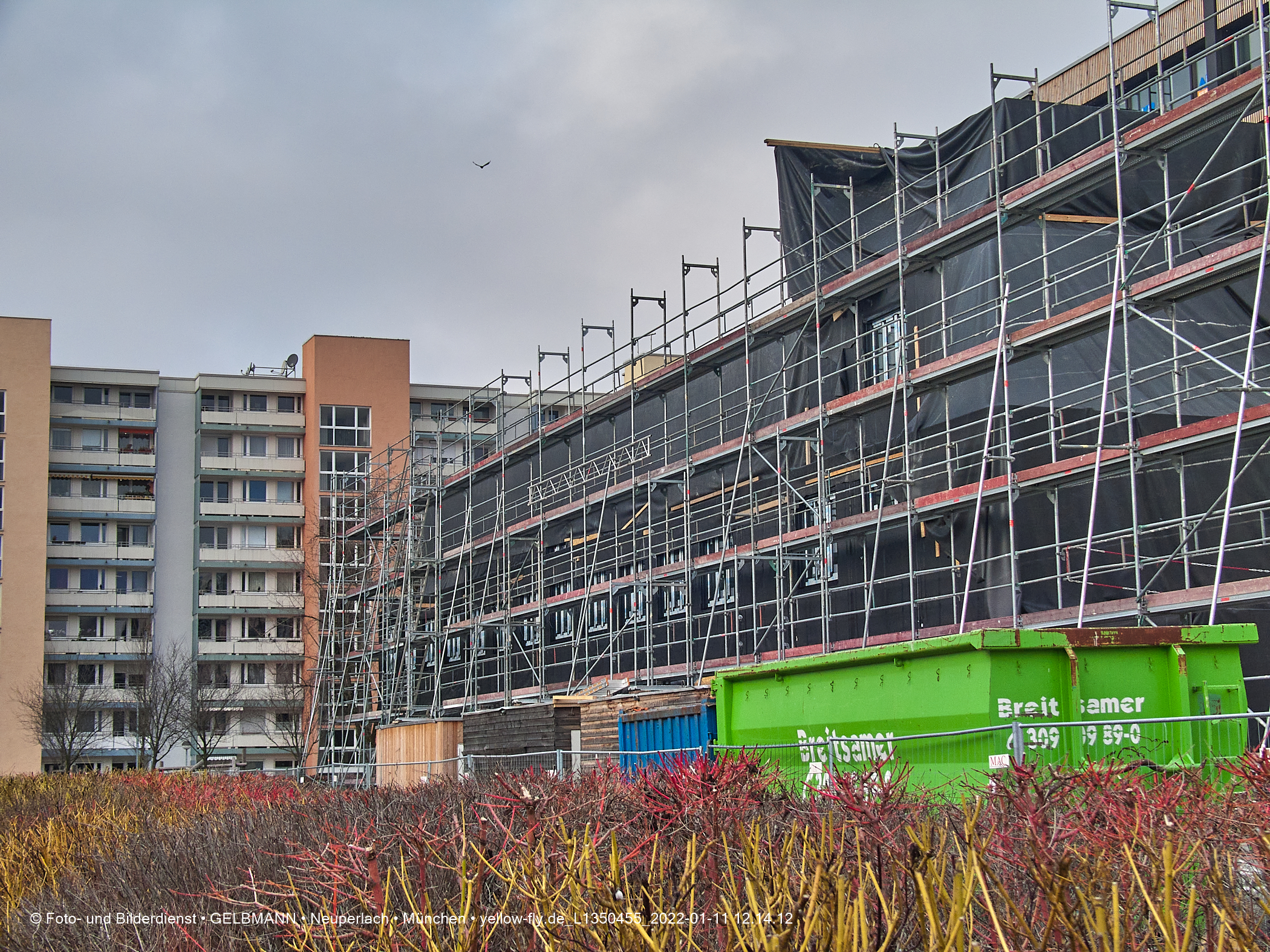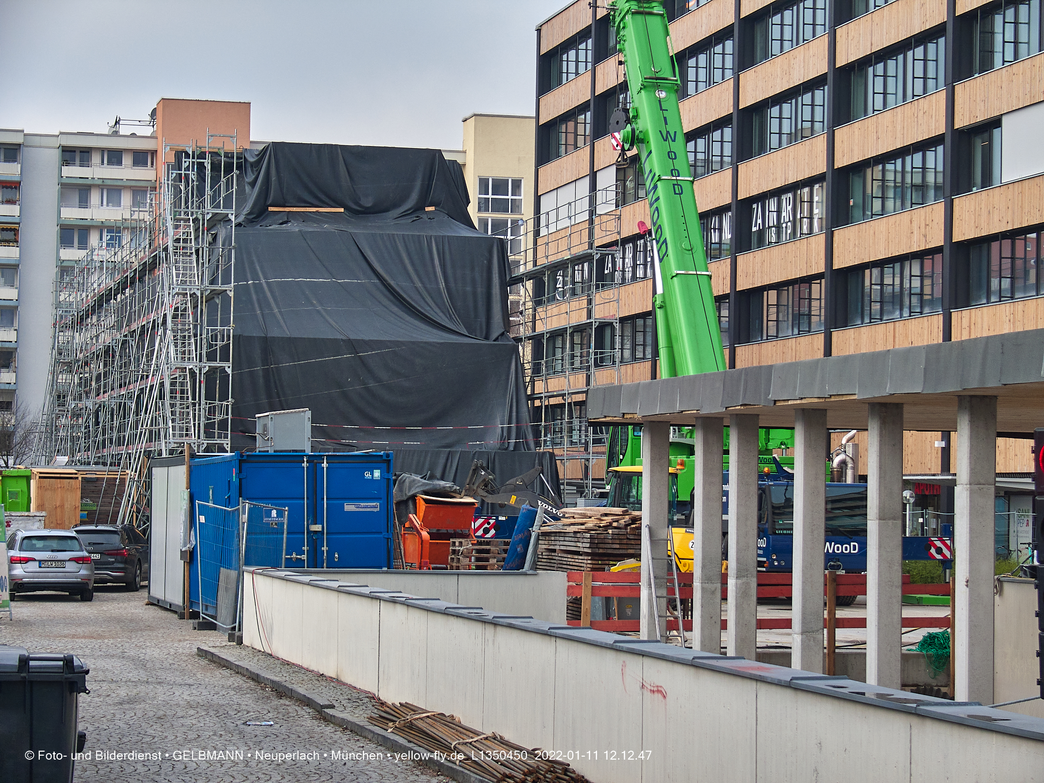Die Holzteile unserer neuen Montessori Schule in Neuperlach sind noch mit einer schwarzen Plane verhüllt. Auch heute haben mich Passanten beim Fotografieren angesprochen. Eine Mutter wollte von mir wissen, ob ihr Kind, das unter einem Asperger Syndrom leidet, auch auf diese moderne Schule gehen kann. Diese Frage konnte ich ihr leider nicht beantworten. Ich weiß nur, dass Erwachsene mit dieser Krankheit sich in unserer realen Welt sehr schwertun und vermutlich in einem Heim besser aufgehoben wären. Das konnte die arme Mutter zwar nicht befriedigen, aber wir haben uns dennoch nett unterhalten.