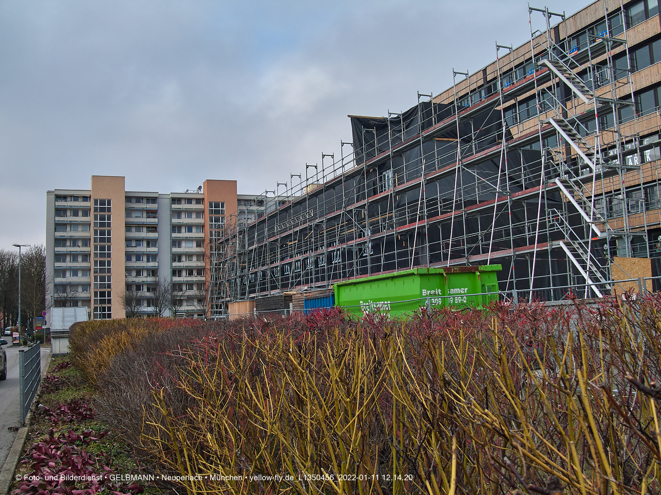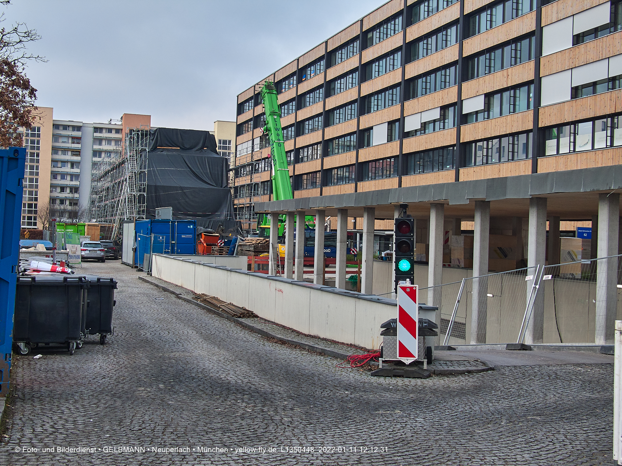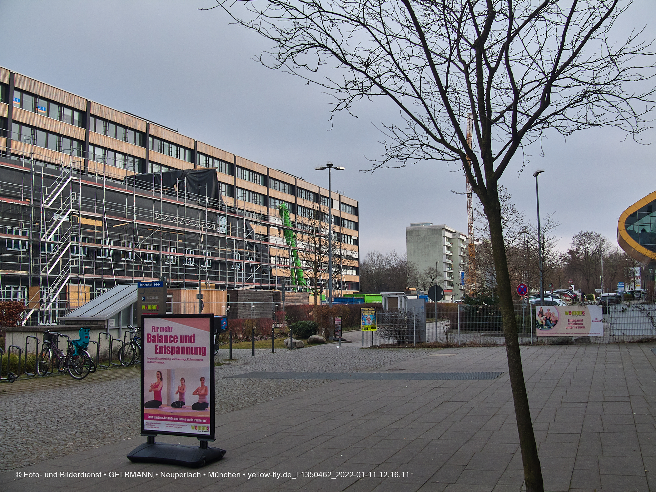 Die Holzteile unserer neuen Montessori Schule in Neuperlach sind noch mit einer schwarzen Plane verhüllt. Auch heute haben mich Passanten beim Fotografieren angesprochen. Eine Mutter wollte von mir wissen, ob ihr Kind, das unter einem Asperger Syndrom leidet, auch auf diese moderne Schule gehen kann. Diese Frage konnte ich ihr leider nicht beantworten. Ich weiß nur, dass Erwachsene mit dieser Krankheit sich in unserer realen Welt sehr schwertun und vermutlich in einem Heim besser aufgehoben wären. Das konnte die arme Mutter zwar nicht befriedigen, aber wir haben uns dennoch nett unterhalten.