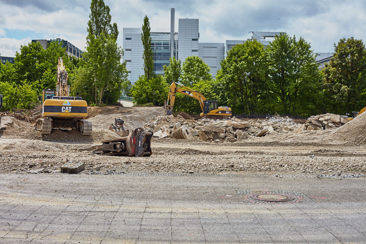 Nach den gestrigen Berichten über die Umgestaltung unseres Plattzentrums heute, sehen wir hier auf »NEUPERLACH DOT ORG«, kurz ausgesprochen und wie auf facebook geschrieben und nachzulesen ist, »Neuperlach.org«, wieder historische Fotos vom Bau des LAO-Hauses, bzw., der Umgestaltung des Plettzentrums nach dem Abriss des alten Büros der Neuen Heimat und der darin enthaltenen Läden und Ayinger Hofes. Die weitere Umgestaltung ist hier in aktuellen und historischen Bildern zu sehen. Das Plettzentrum im Sommer 2012. Auf einem Teil des Plettzentrums sind die Gehwegplatten entfernt worden.