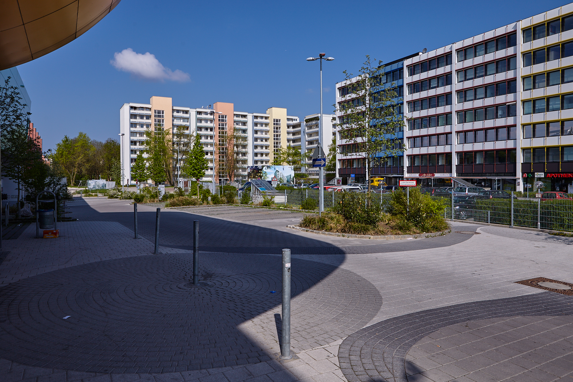 Der Platz vor der Baustelle ist noch im Originalzustand und die Sonnenuhr zeigt die Zeit an. Ihr Countdown läuft.