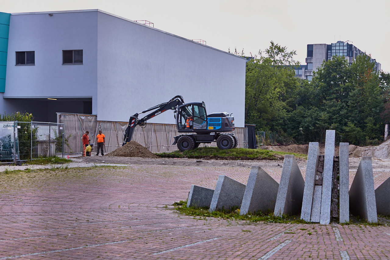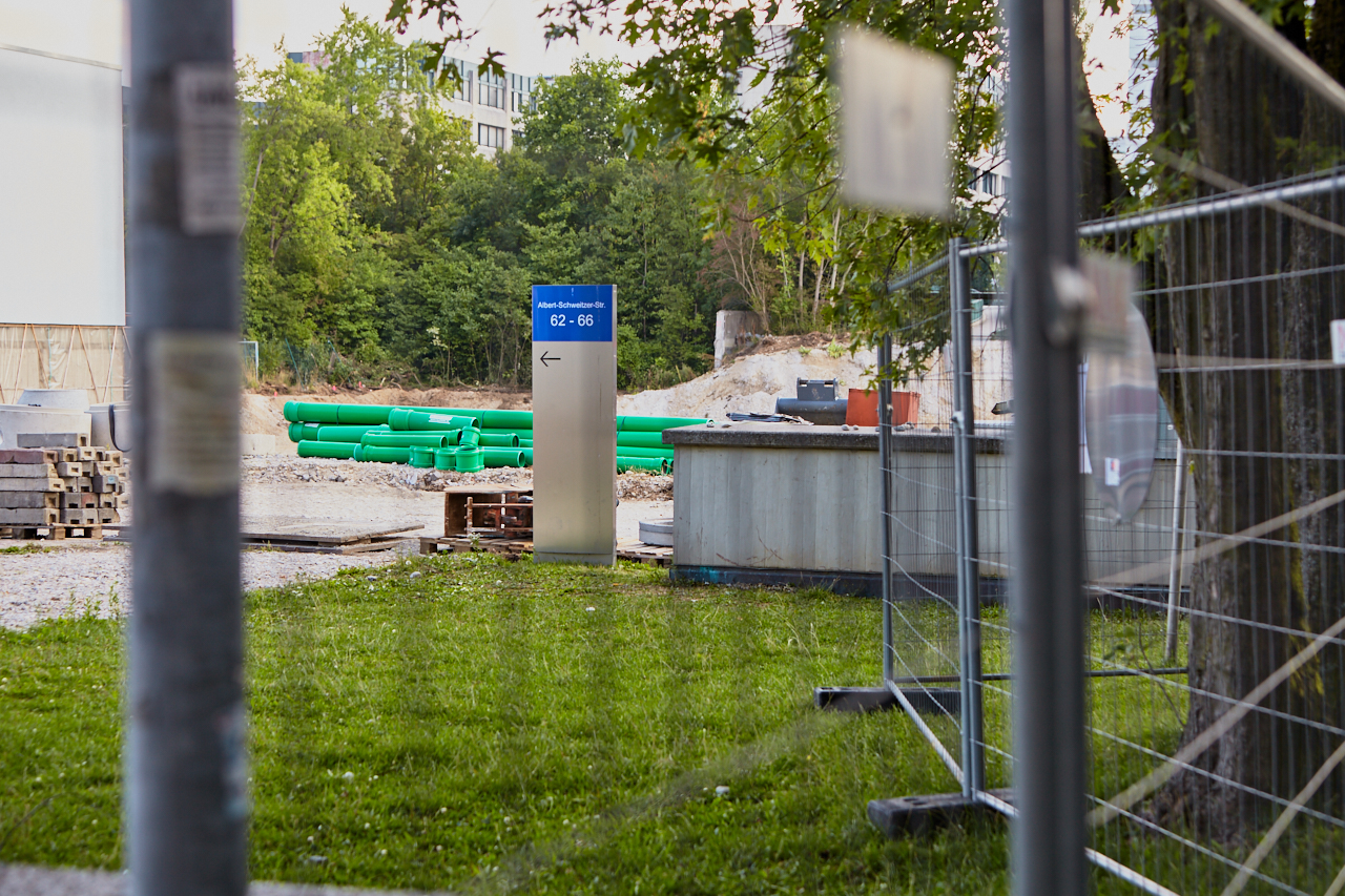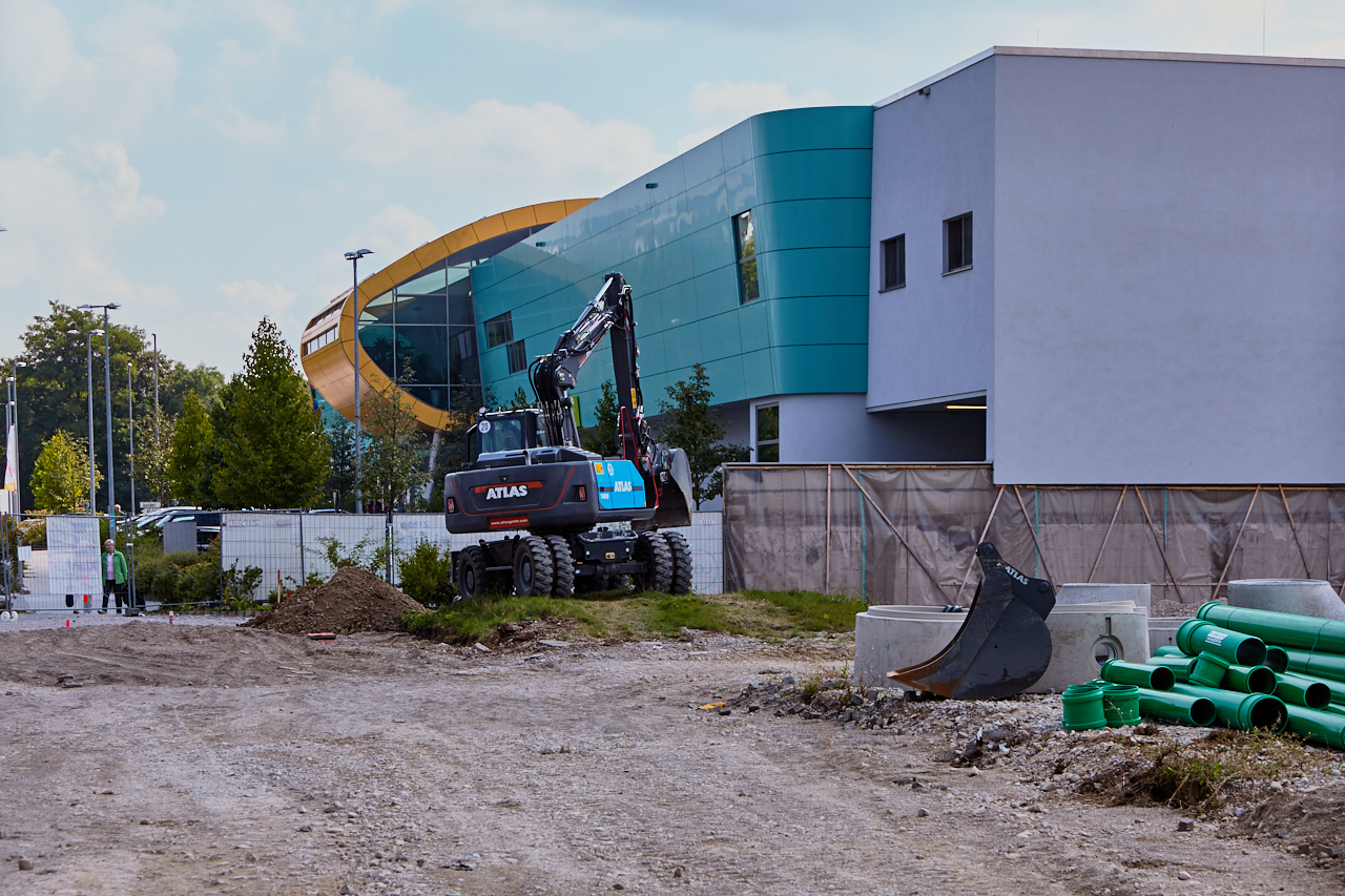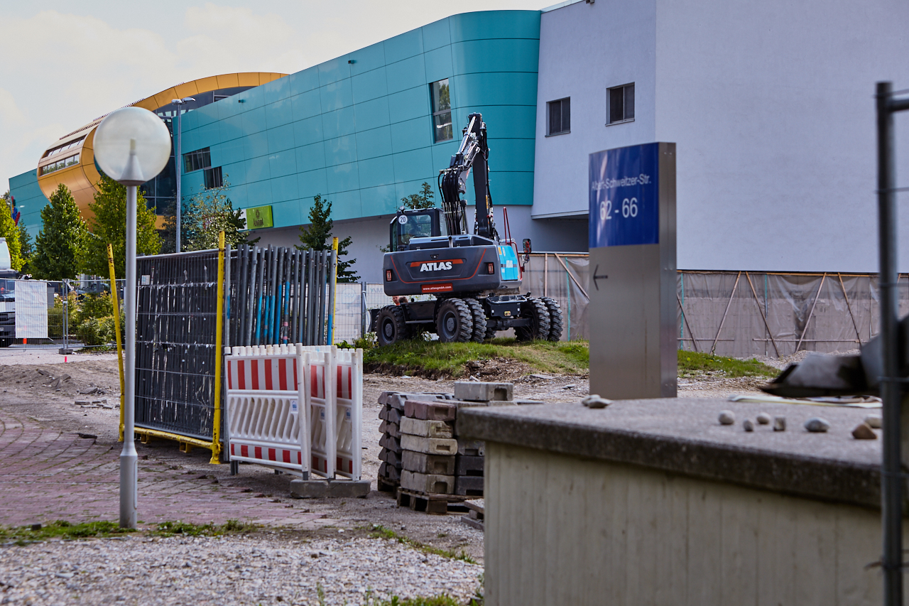 Langsam beginnen die Aushubarbeiten an dem zukünftigen Standort des LAO-Hauses. Der Weg über die Brücke an der Ständlerstraße ist seit einigen Tagen gesperrt. Der Platz vor der Baustelle ist noch im Originalzustand und die Sonnenuhr zeigt die Zeit an. Ihr Countdown läuft.