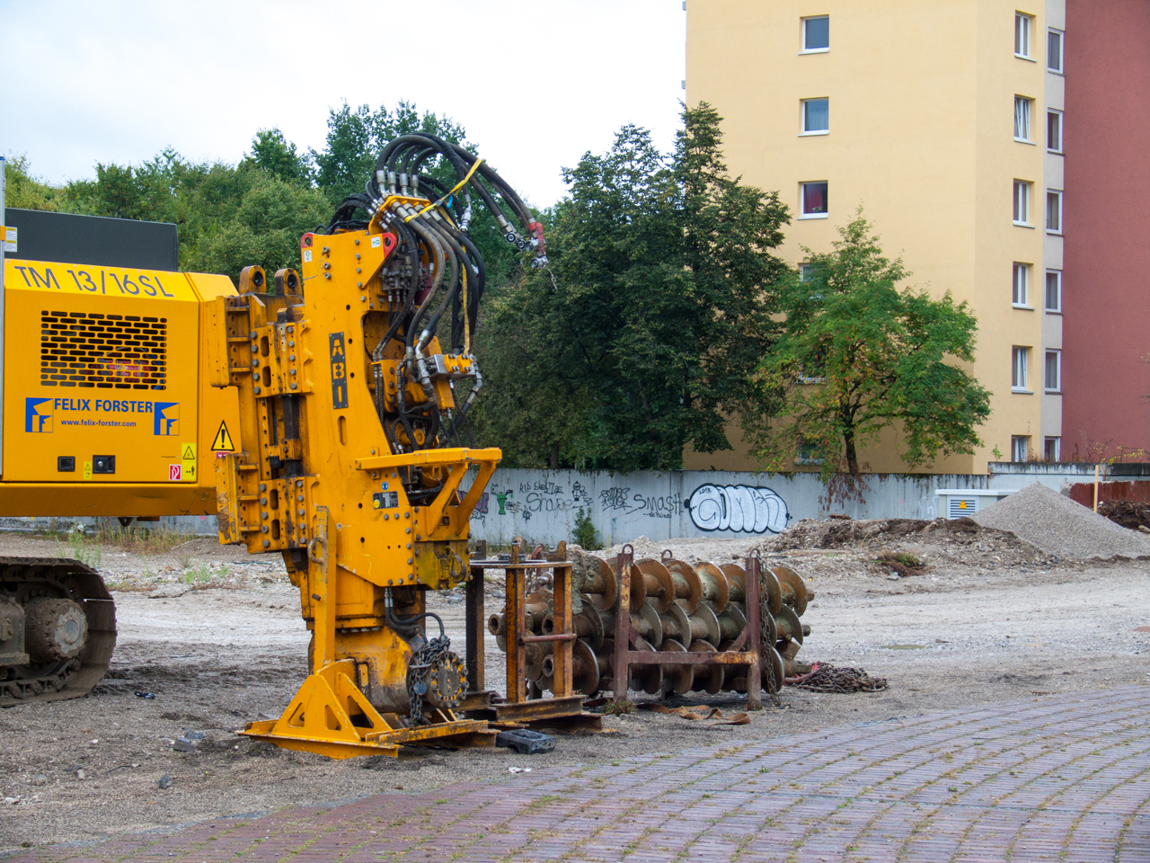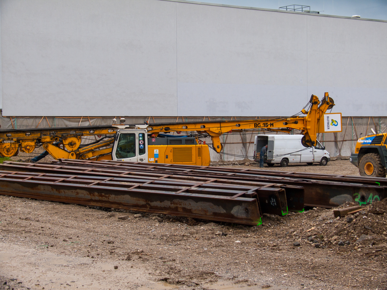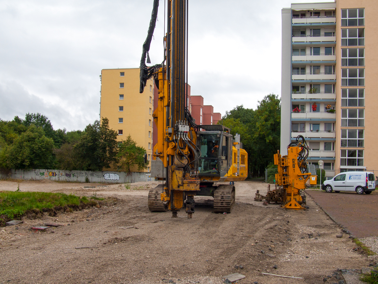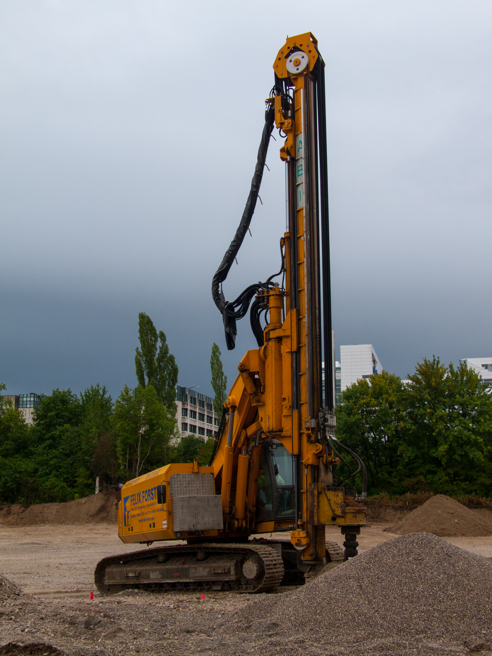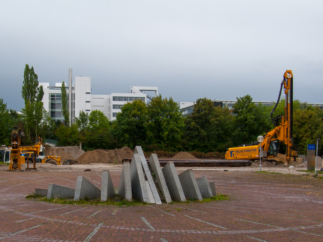 HIER AUF DEN FOTOS IST NOCH UNSERE SCHÖNE SONNENUHR ZUSEHEN, WELCHE KURZE ZEIT DANACH IN DER TIEFGARAGE DER FIRMA Z. VERSCHWANDT. KEINER WUSSTE ZU DIESEM ZEITPUNKT, DASS SIE, ENTGEGEN GEMACHTER ZU- UND AUSSAGEN, NICHT MEHR AUFGESTELLT WIRD. GUT EINGEPACKT KANN MAN DIE STEINE BEI Z. BESICHTIGEN. DIE VORBEREITUNGEN FÜR DEN AUSHUB DER BAUGRUBE BEGINNEN. MIT GROSSEN BOHRMASCHINEN WERDEN LÖCHER FÜR DIE SPUNDWÄNDE GEBOHRT.