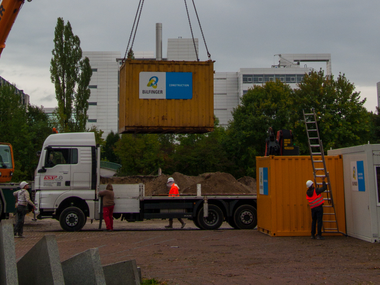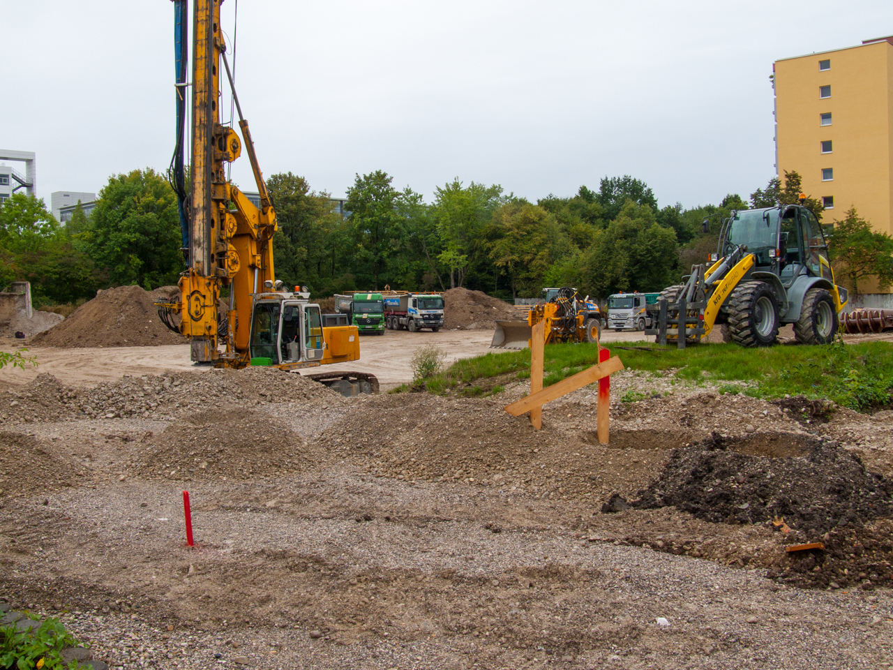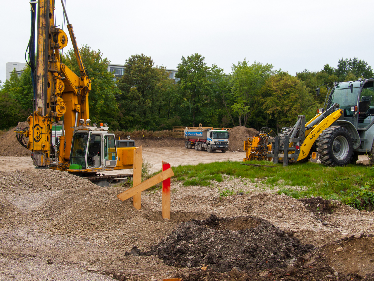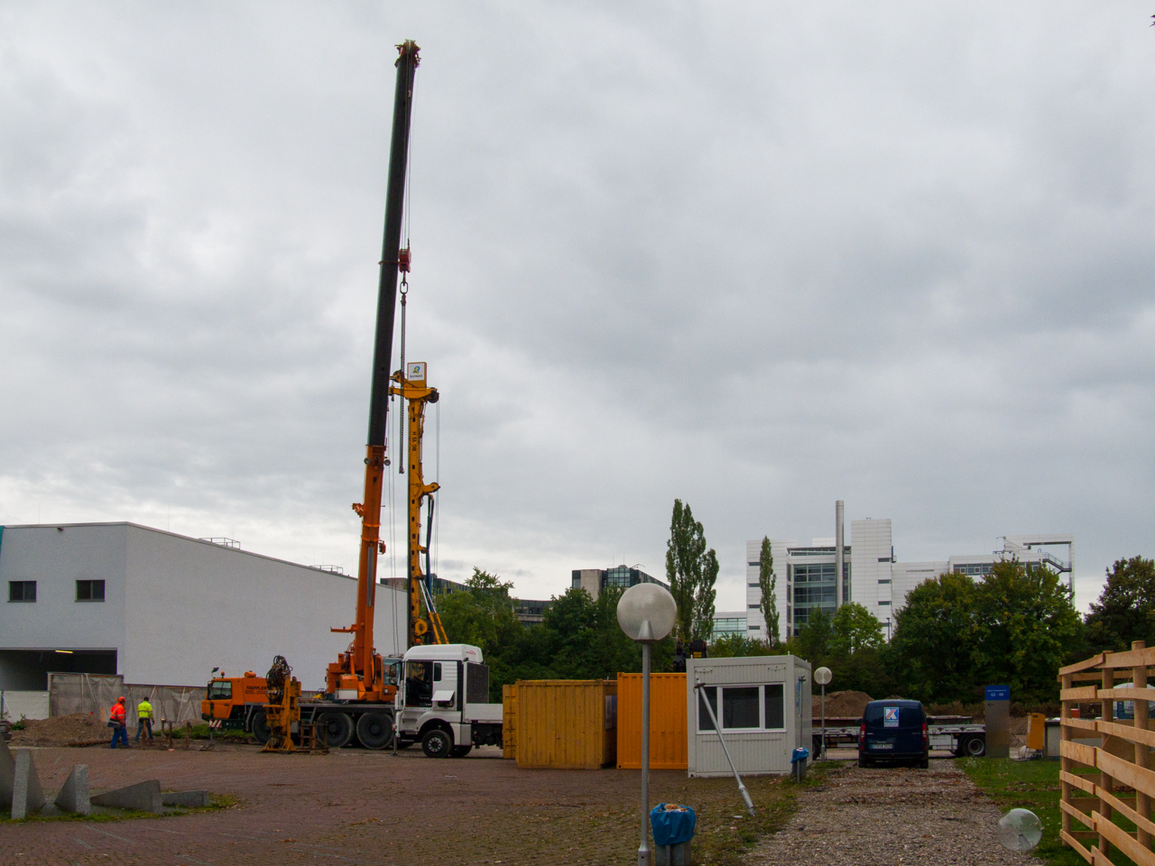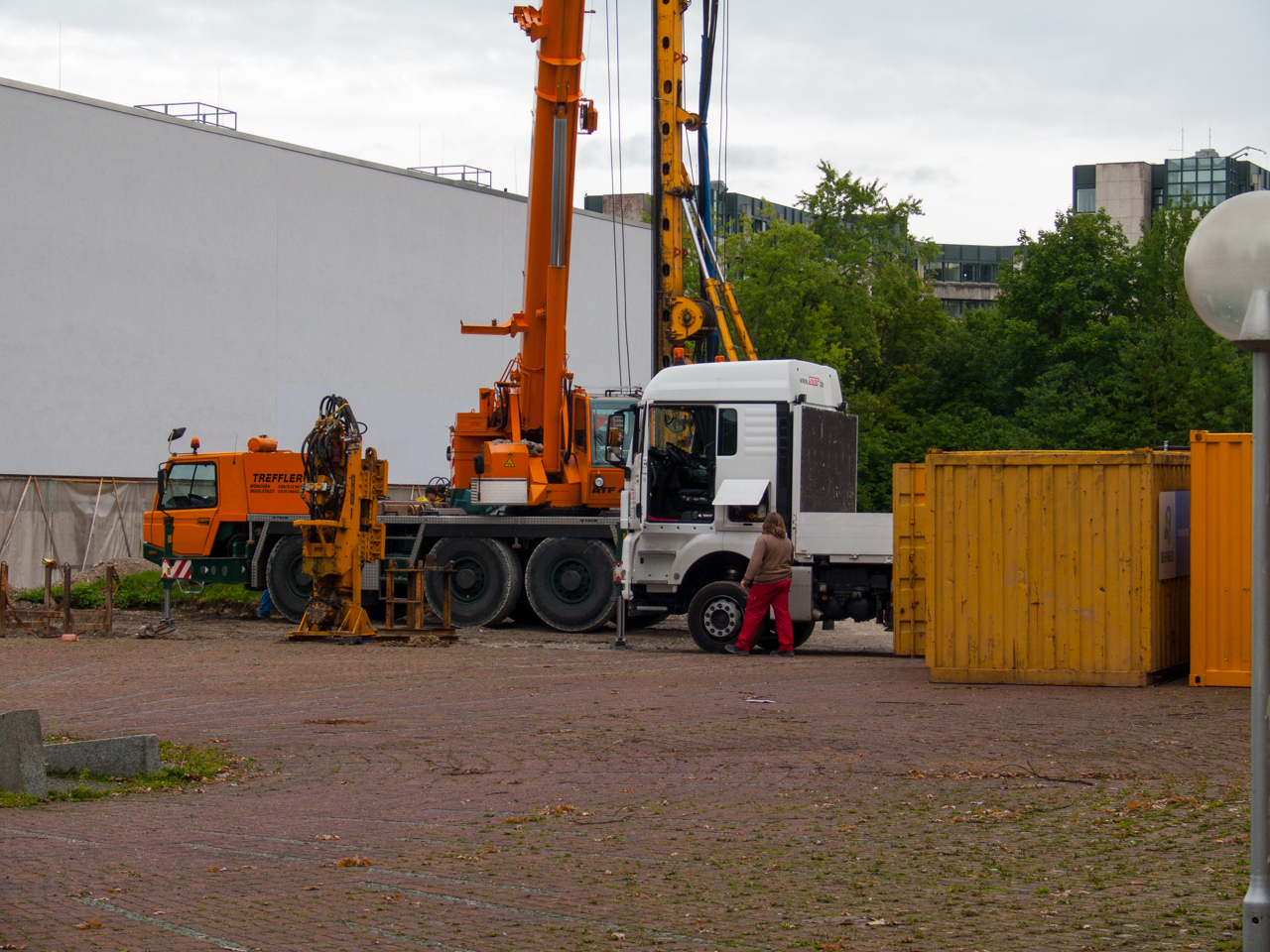HIER AUF DEN FOTOS IST NOCH UNSERE SCHÖNE SONNENUHR ZUSEHEN, WELCHE KURZE ZEIT DANACH IN DER TIEFGARAGE DER FIRMA Z. VERSCHWANDT. KEINER WUSSTE ZU DIESEM ZEITPUNKT, DASS SIE, ENTGEGEN GEMACHTER ZU- UND AUSSAGEN, NICHT MEHR AUFGESTELLT WIRD. GUT EINGEPACKT KANN MAN DIE STEINE BEI Z. BESICHTIGEN. DIE VORBEREITUNGEN FÜR DEN AUSHUB DER BAUGRUBE BEGINNEN. MIT GROSSEN BOHRMASCHINEN WERDEN LÖCHER FÜR DIE SPUNDWÄNDE GEBOHRT.