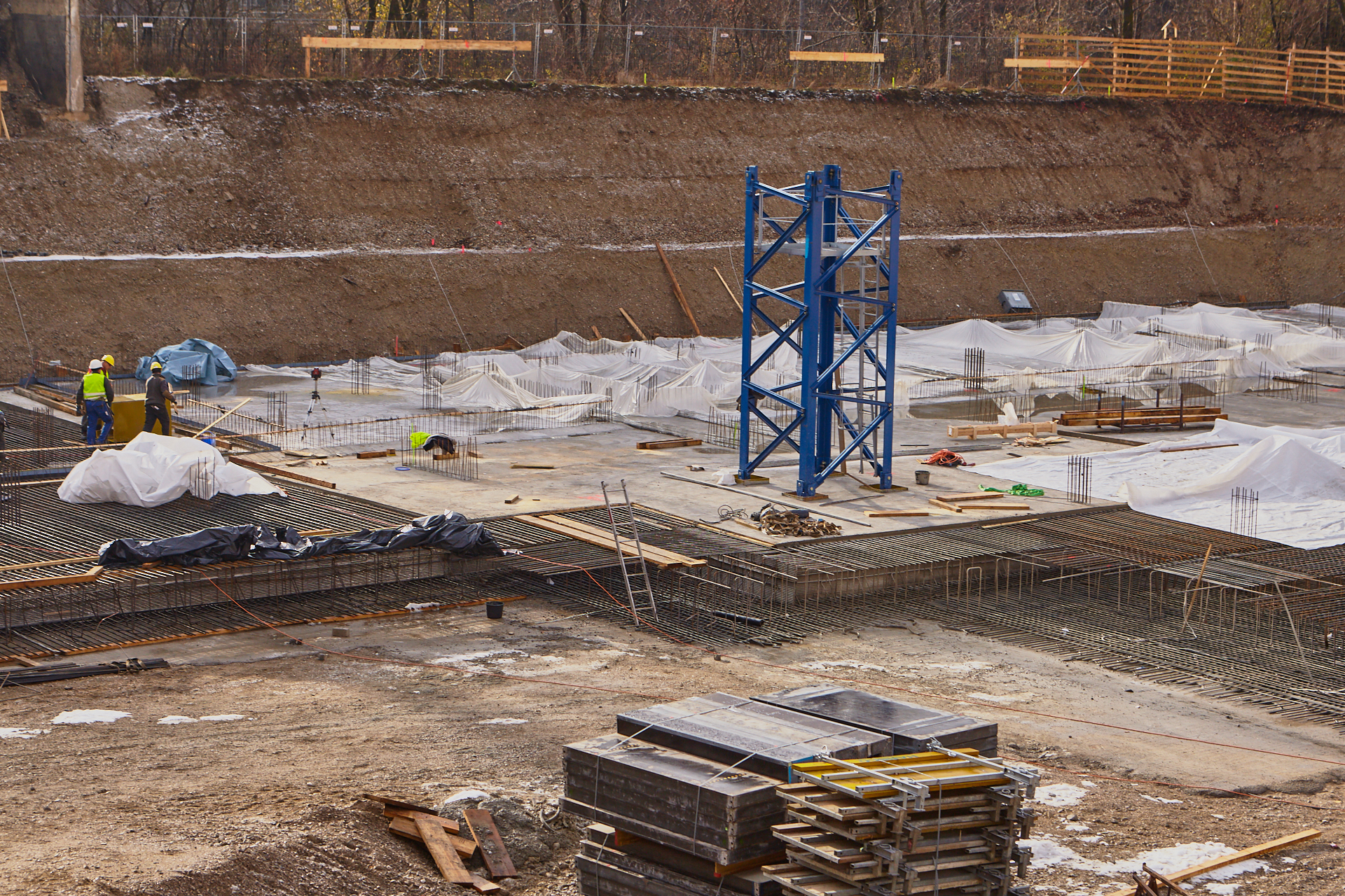 An dem Fundament und dem Keller des neuen und zukünftigen LAO-HAUSES wird mit Hochdruck gearbeitet. Beton und Eisen werden verlegt und gegossen. Langsam ist der Grundfläche des Gebäudes zu erkennen.