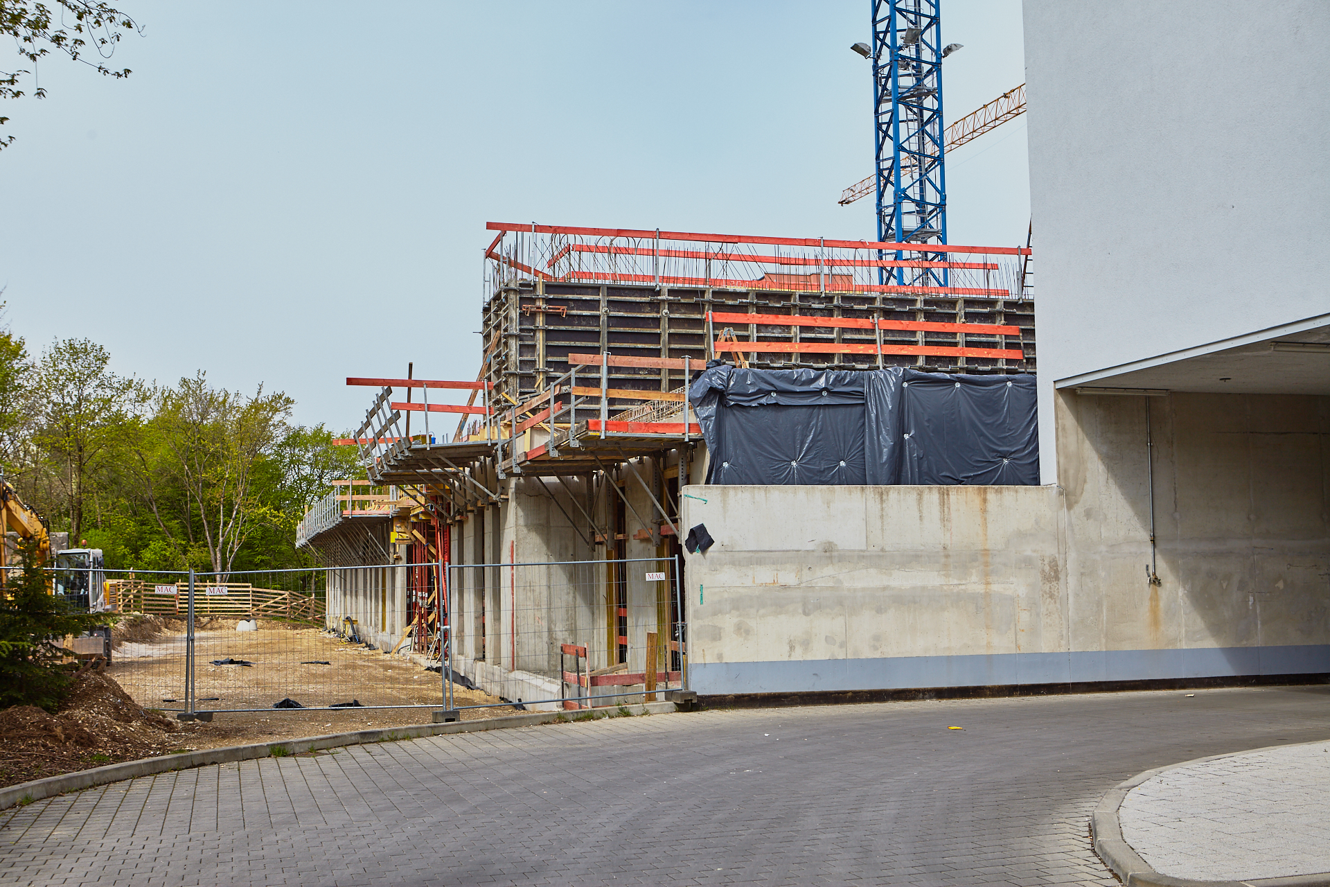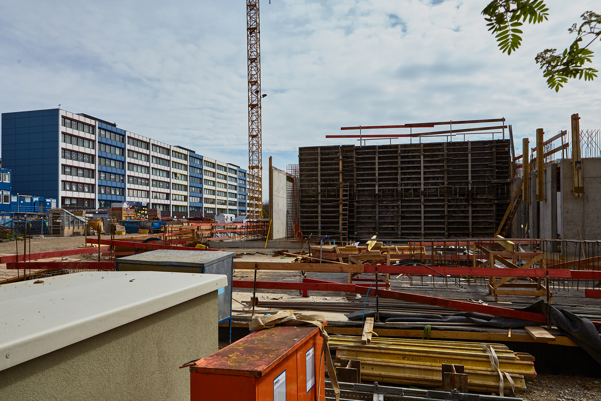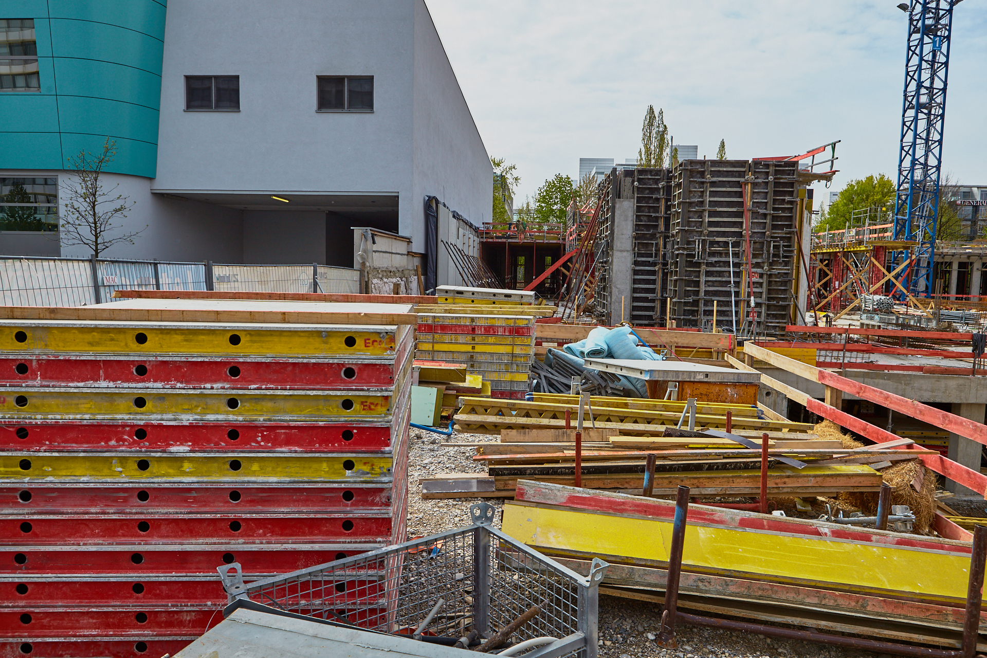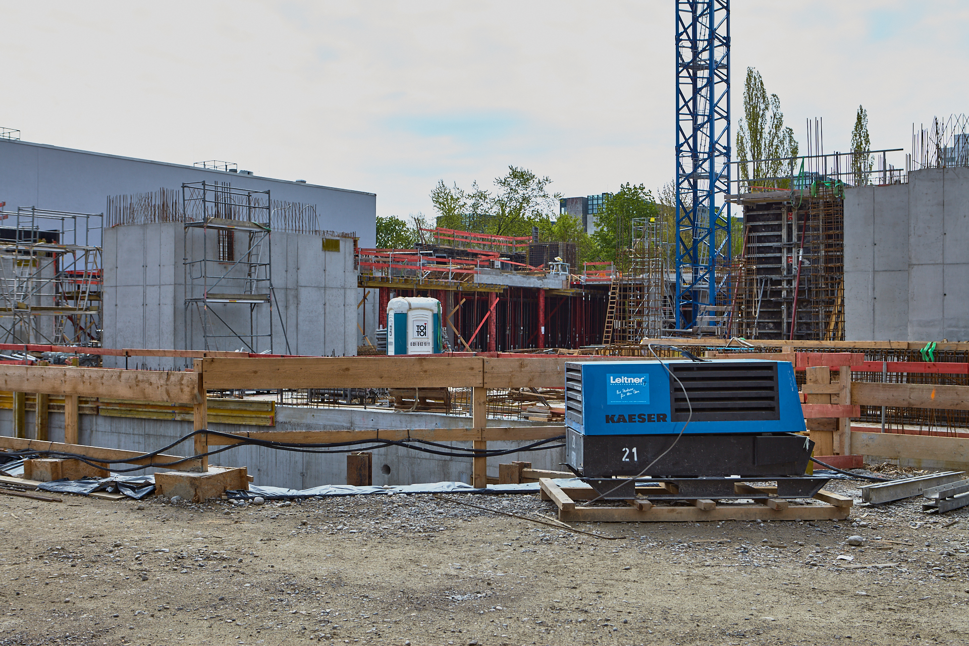 Der Keller und das Erdgeschoß des neuen LAO-Hauses werden gerade bearbeitet. Die Baustelle zum neuen LAO-HAUS, Leben am Ostpark, mit moderner Architektur und urbaner Gestaltung. Langsam wachsen die Wände am zukünftigen Wohn- und Geschäftsgebäude LAO-HAUS.