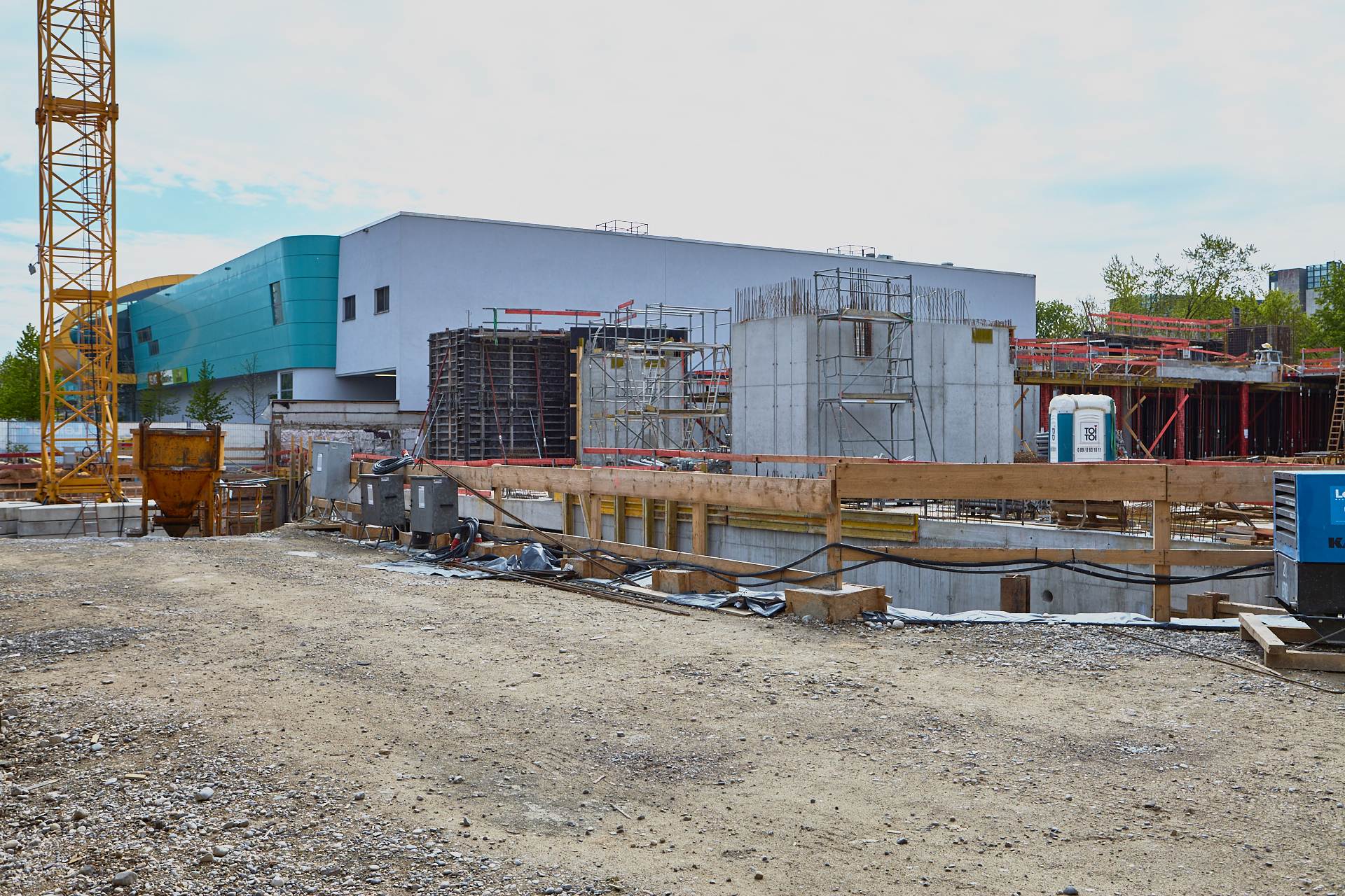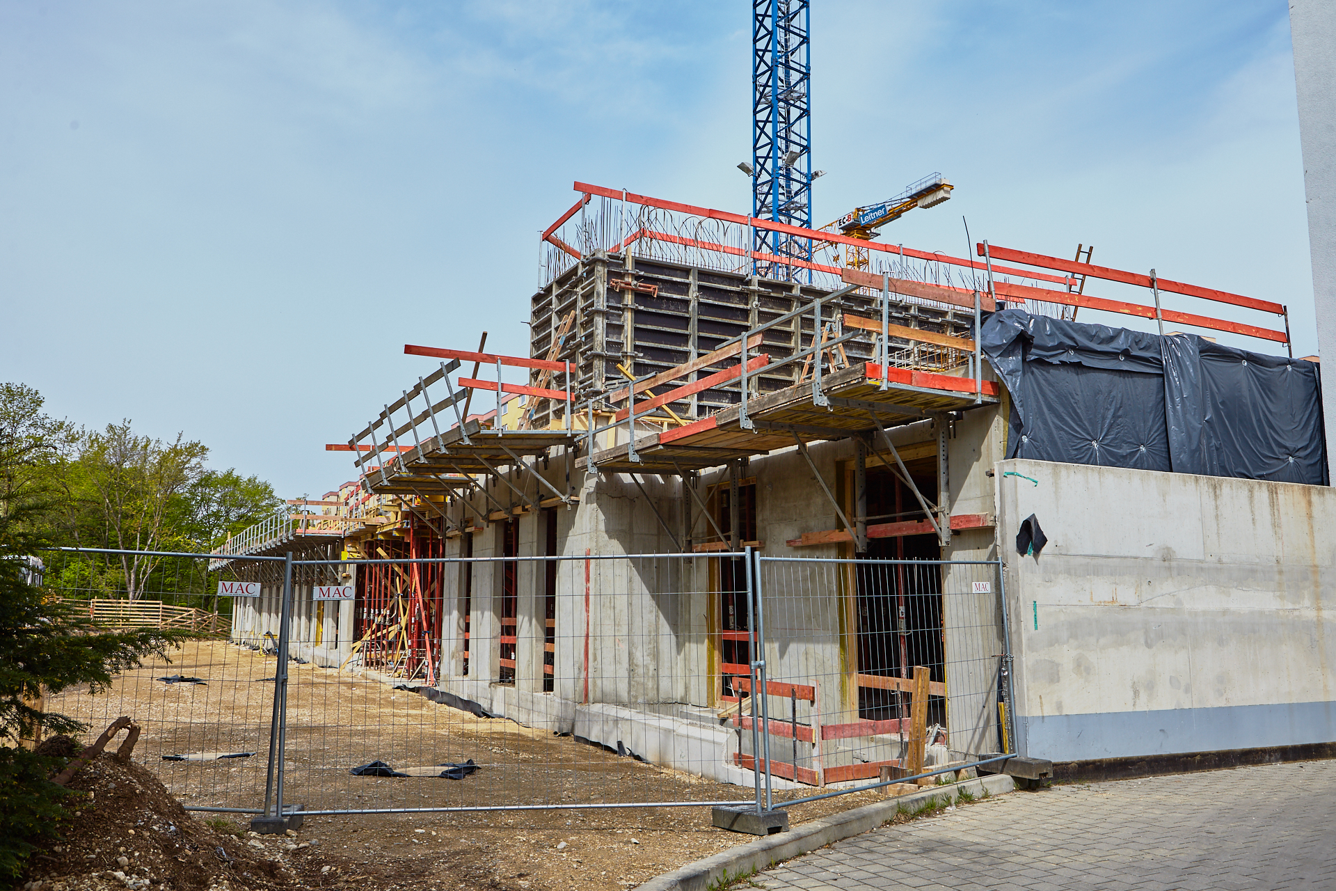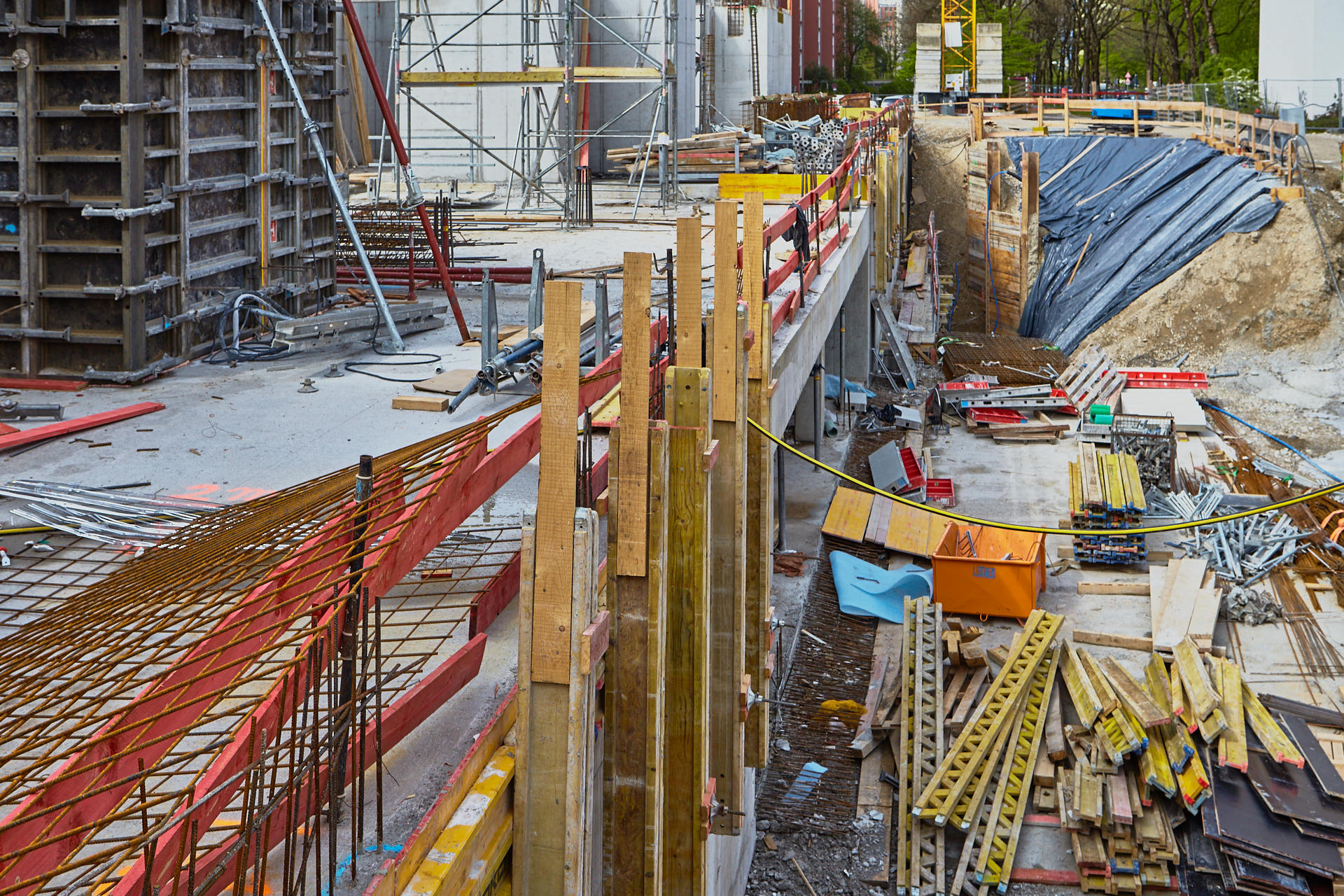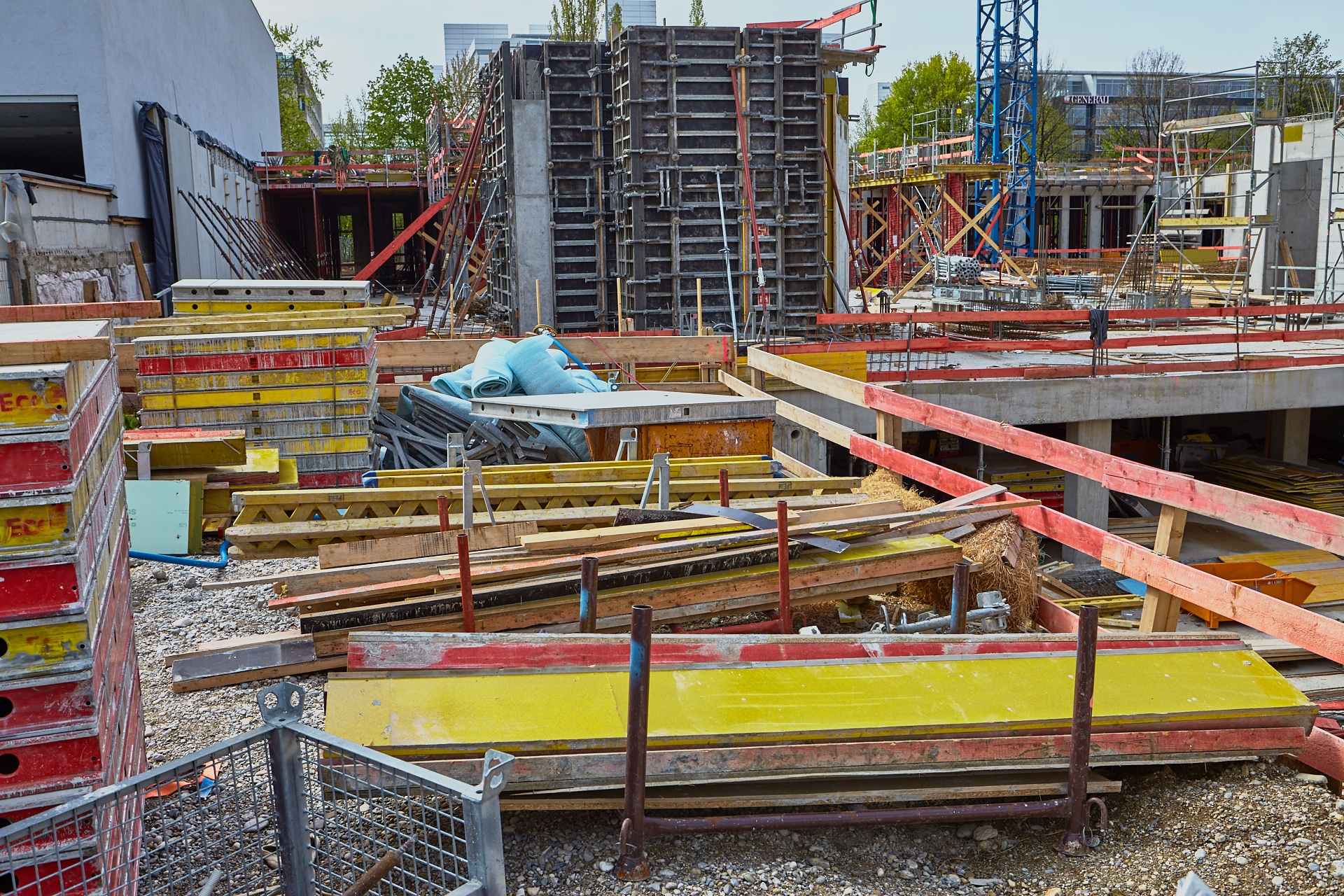 Der Keller und das Erdgeschoß des neuen LAO-Hauses werden gerade bearbeitet. Die Baustelle zum neuen LAO-HAUS, Leben am Ostpark, mit moderner Architektur und urbaner Gestaltung. Langsam wachsen die Wände am zukünftigen Wohn- und Geschäftsgebäude LAO-HAUS.