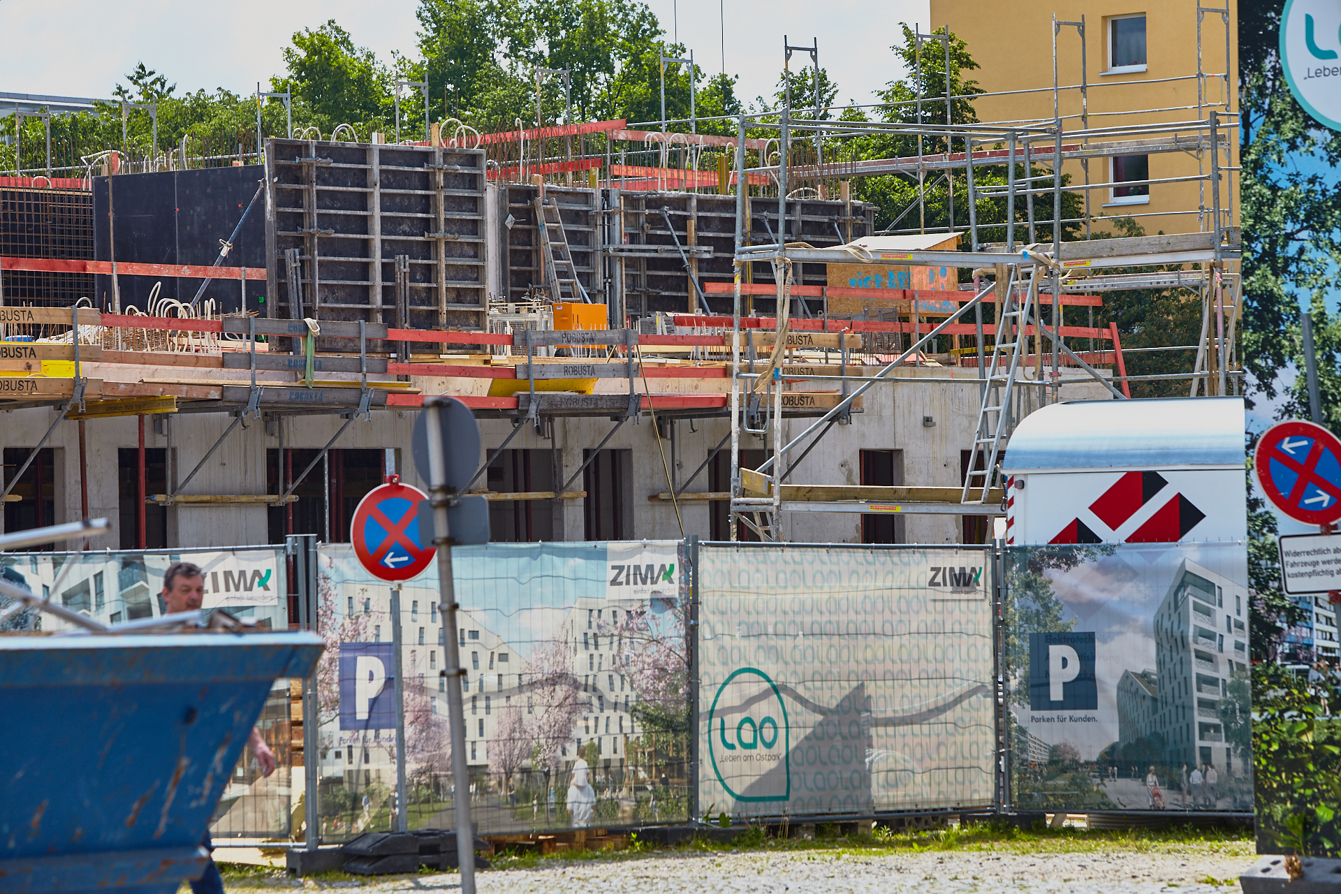 Die Baustelle zum neuen LAO-HAUS, Leben am Ostpark, mit moderner Architektur und urbaner Gestaltung. Die Bausetelle LAO-HAUS zeigt immer mehr, wie das fertige Gebäude aussehen wird.