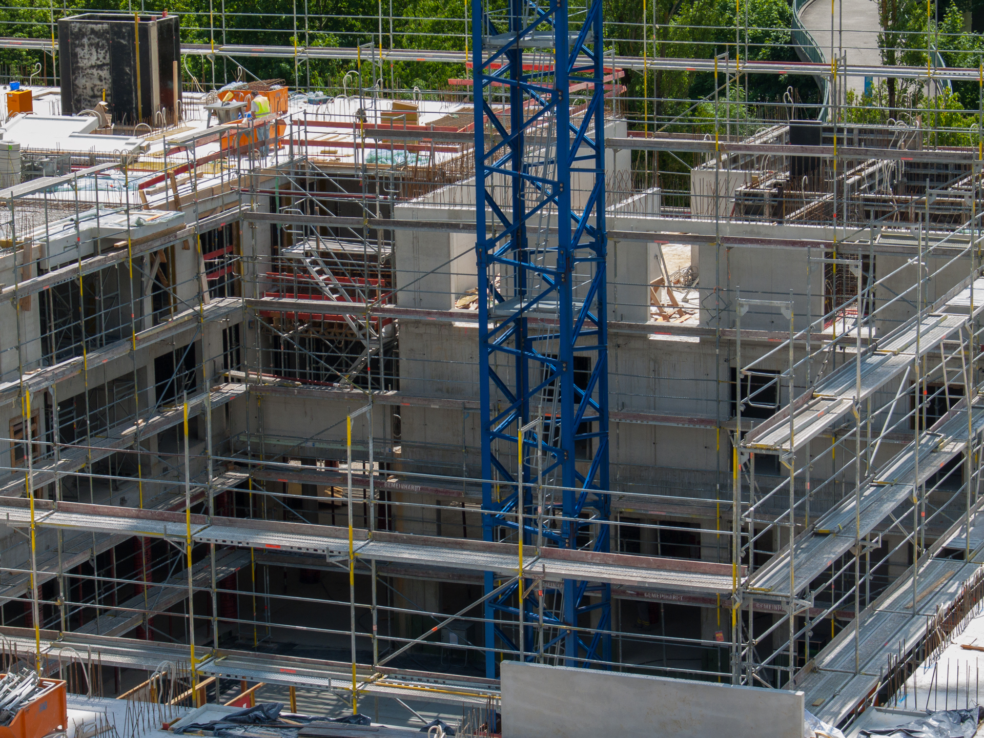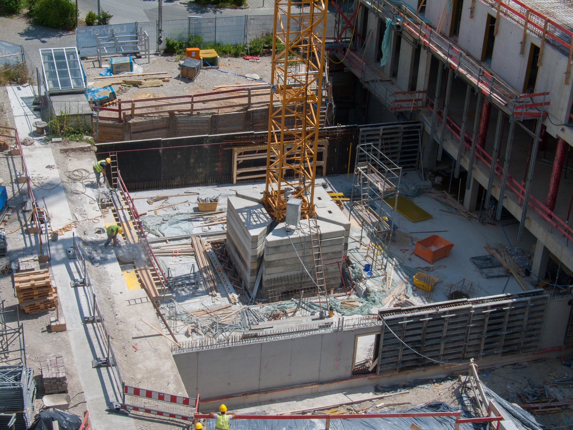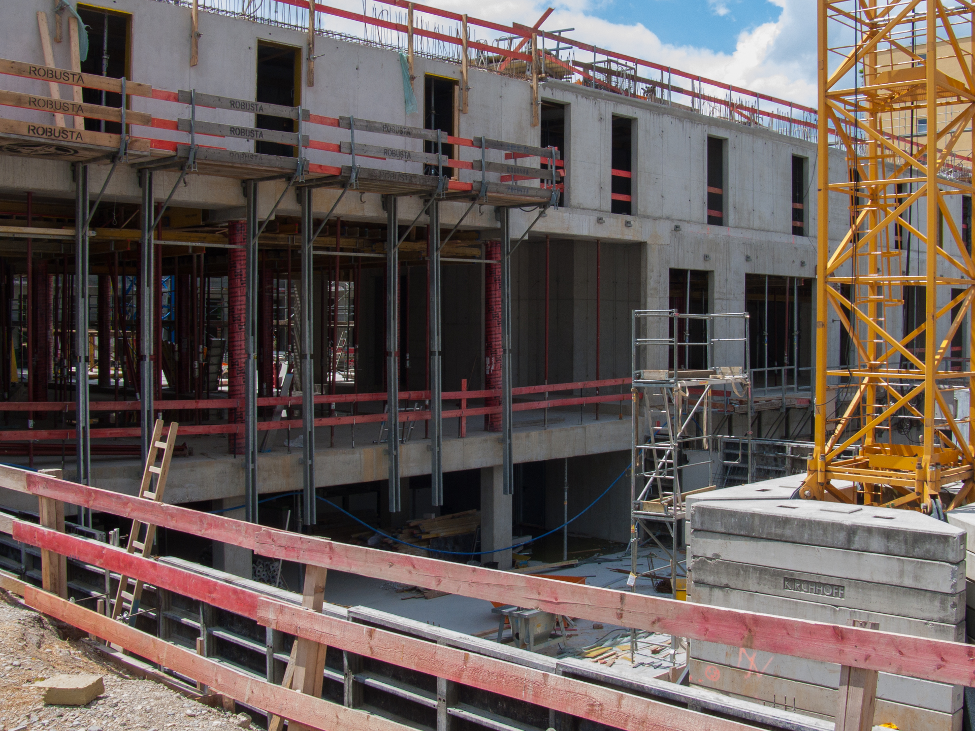 Die Baustelle zum neuen LAO-HAUS, Leben am Ostpark, mit moderner Architektur und urbaner Gestaltung. Die Bausetelle LAO-HAUS zeigt immer mehr, wie das fertige Gebäude aussehen wird.