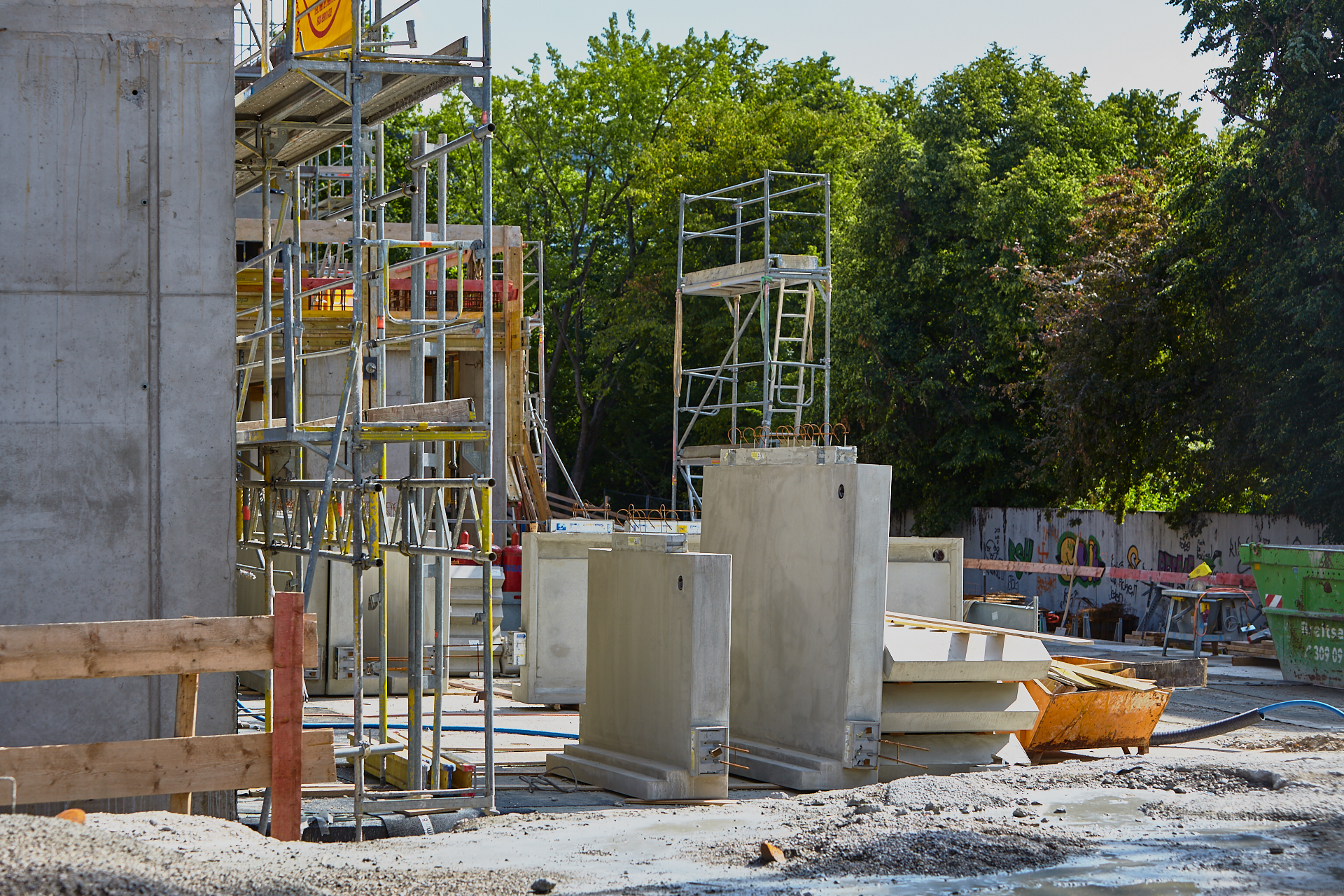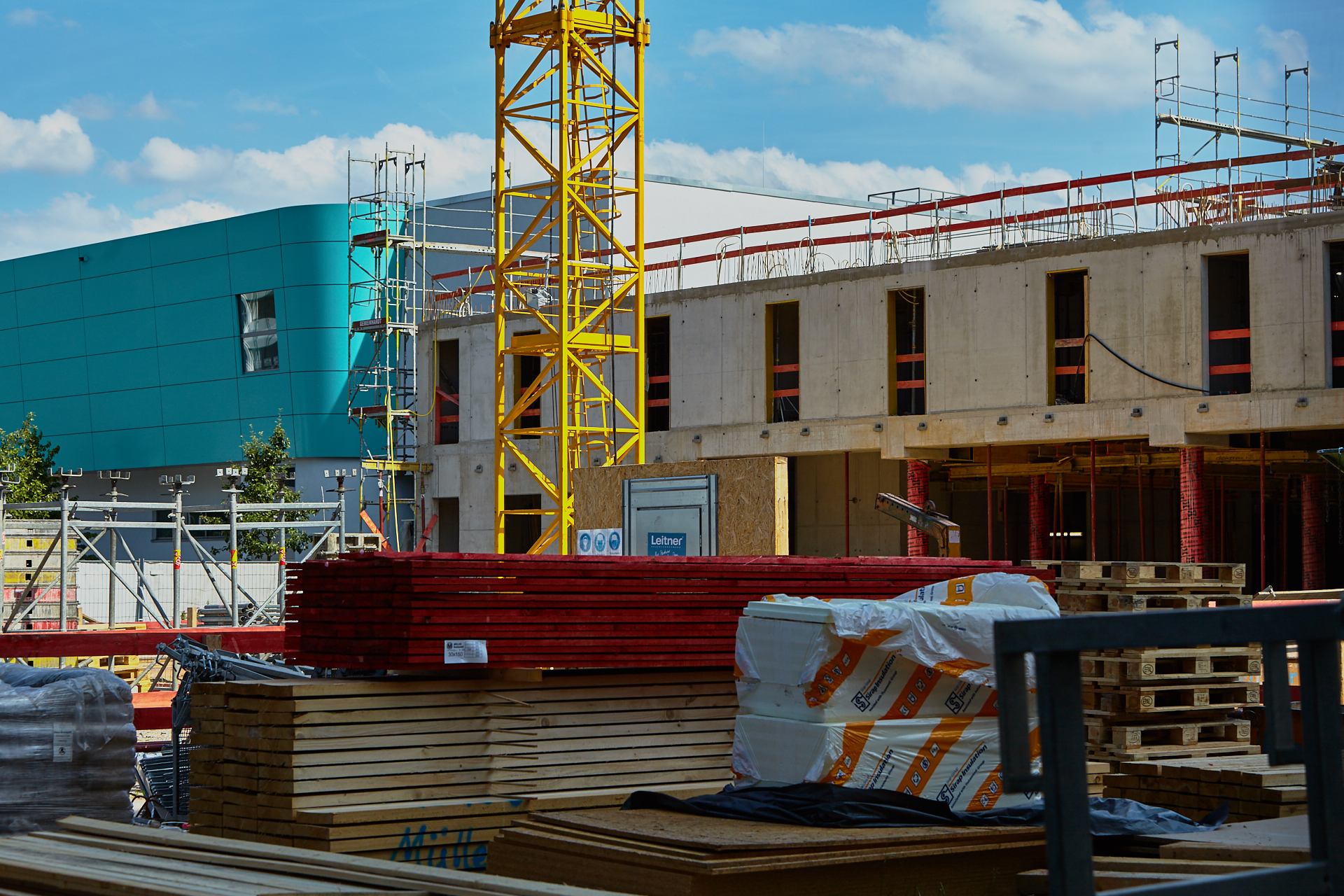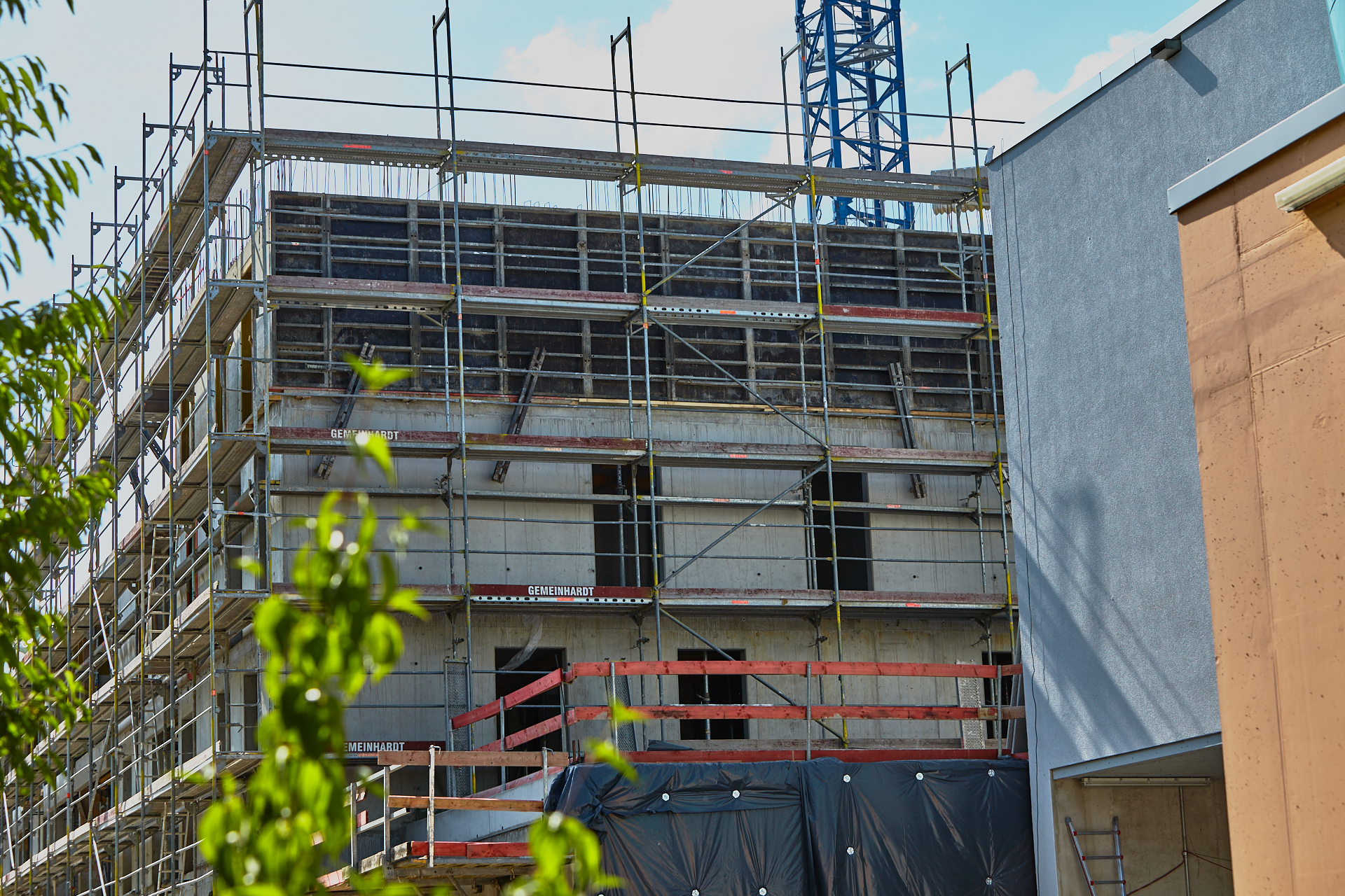 Die Baustelle zum neuen LAO-HAUS, Leben am Ostpark, mit moderner Architektur und urbaner Gestaltung. Die Bausetelle LAO-HAUS zeigt immer mehr, wie das fertige Gebäude aussehen wird.