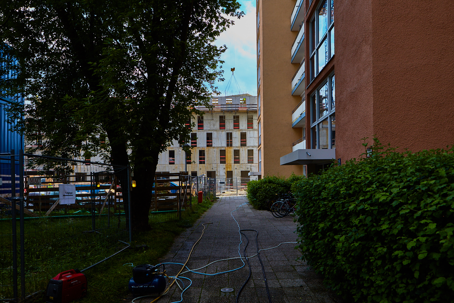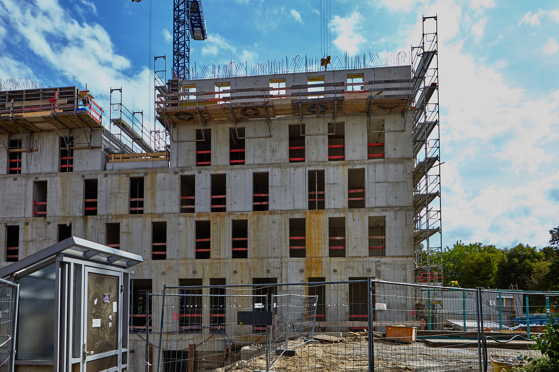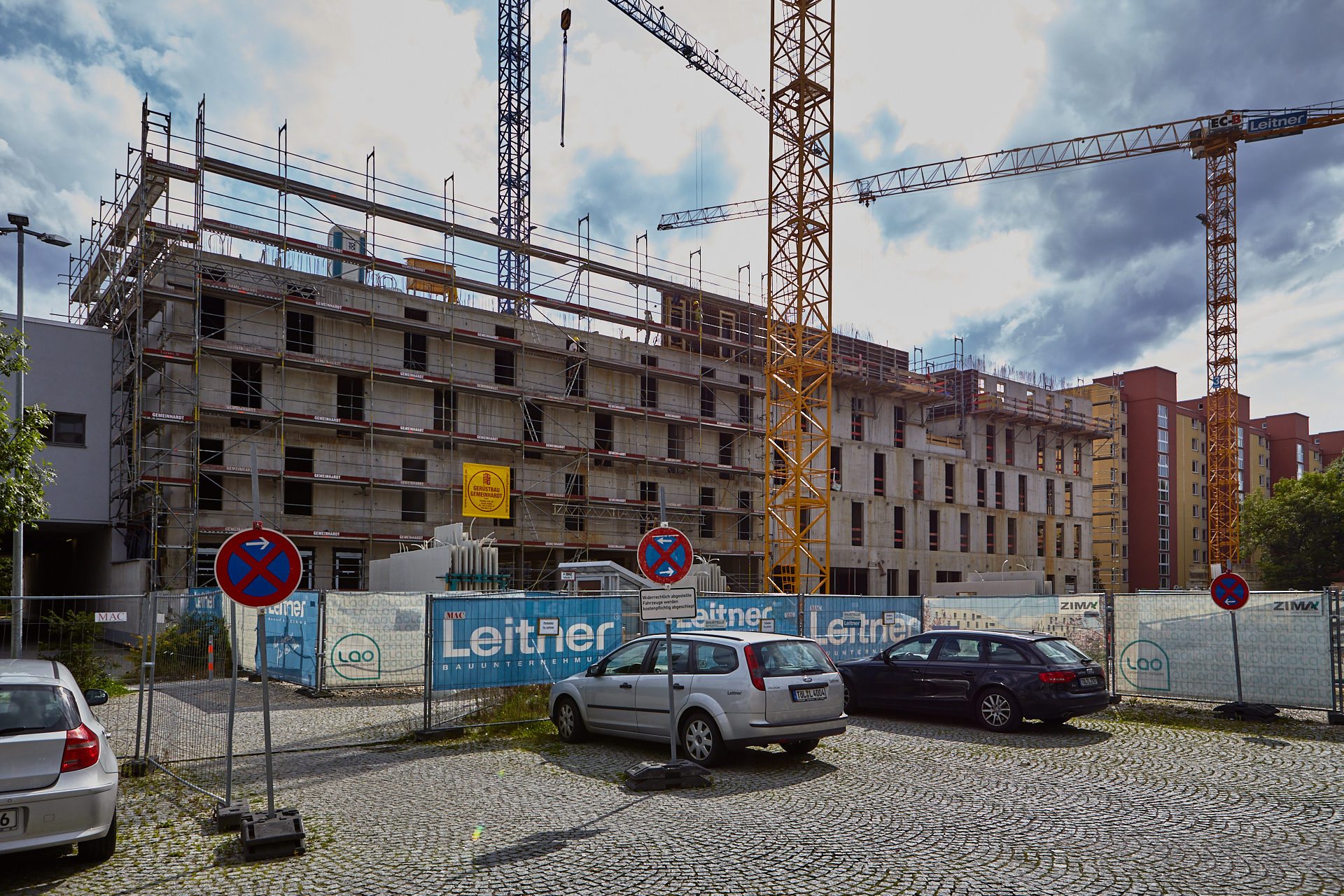 Die Baustelle zum neuen LAO-HAUS, Leben am Ostpark, mit moderner Architektur und urbaner Gestaltung. Die Bausetelle LAO-HAUS zeigt immer mehr, wie das fertige Gebäude aussehen wird.