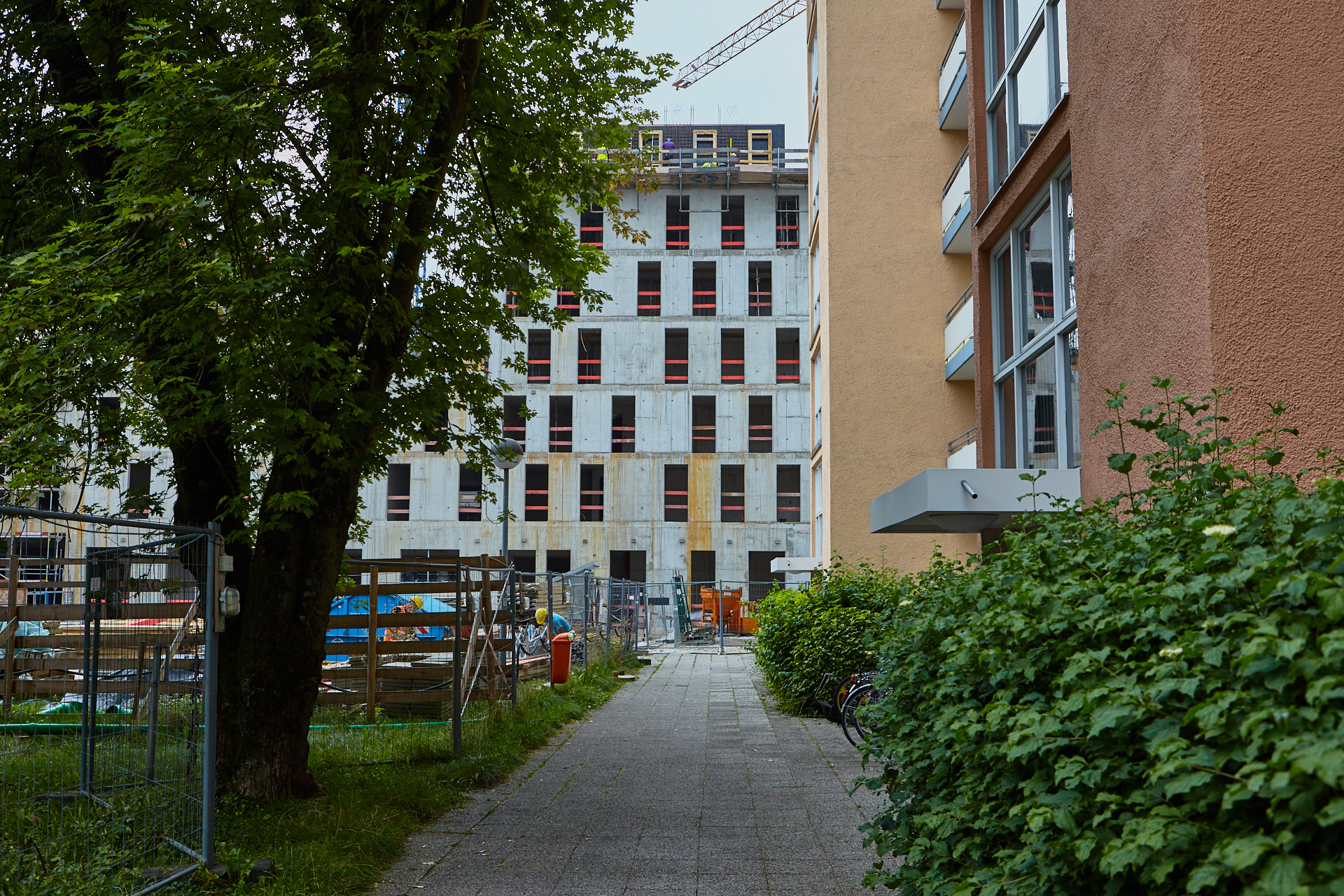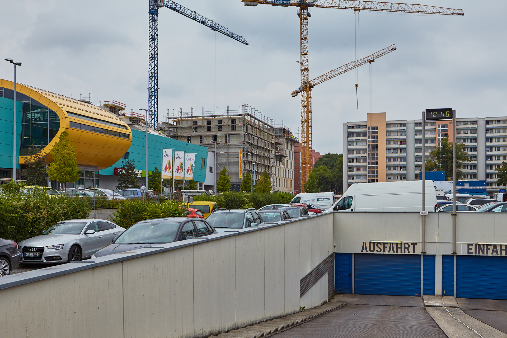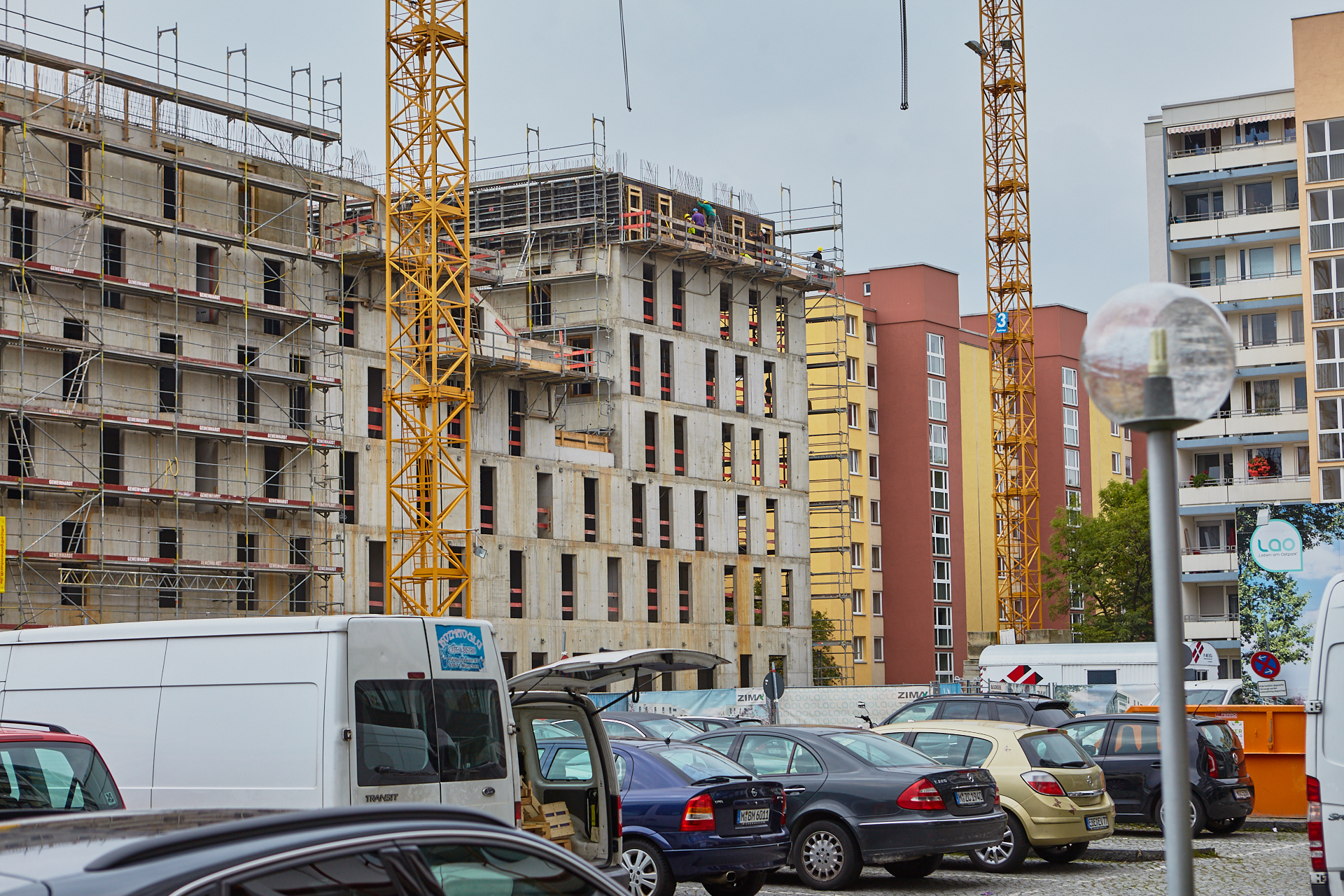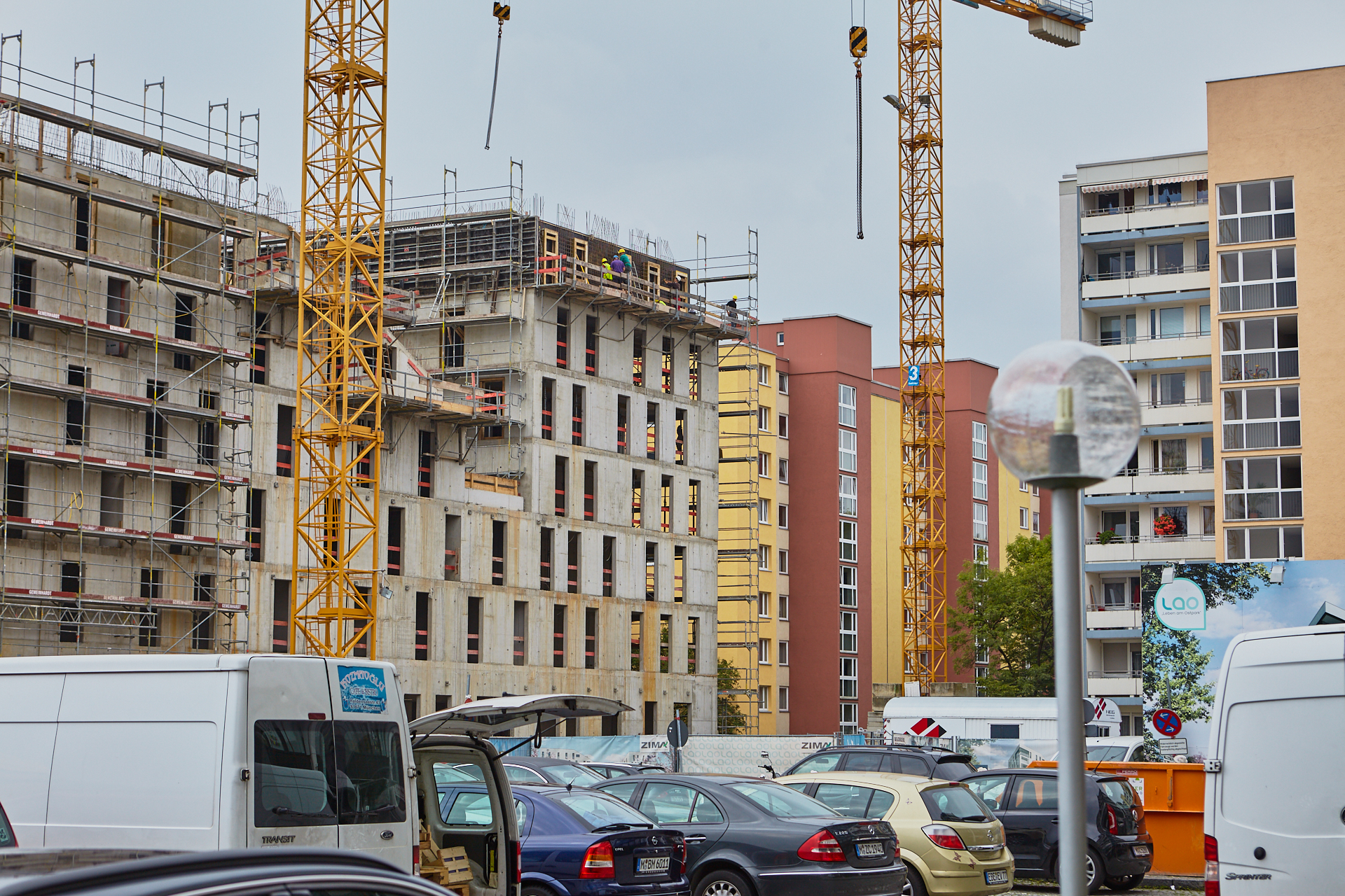 Der Rohbau an einigen der vier "Türmen" ist noch nicht abgeschlossen. Hier gehen die BAuarbeiten weiter. Die Bausetelle LAO-HAUS zeigt immer mehr, wie das fertige Gebäude aussehen wird.