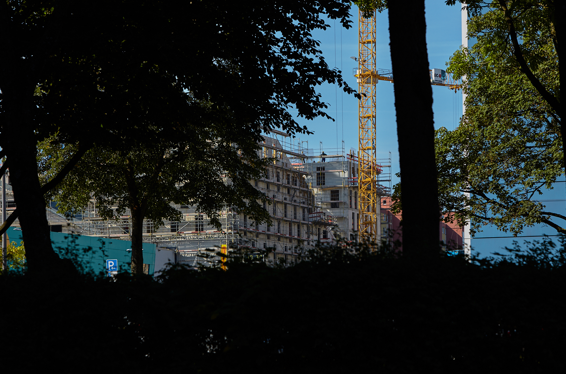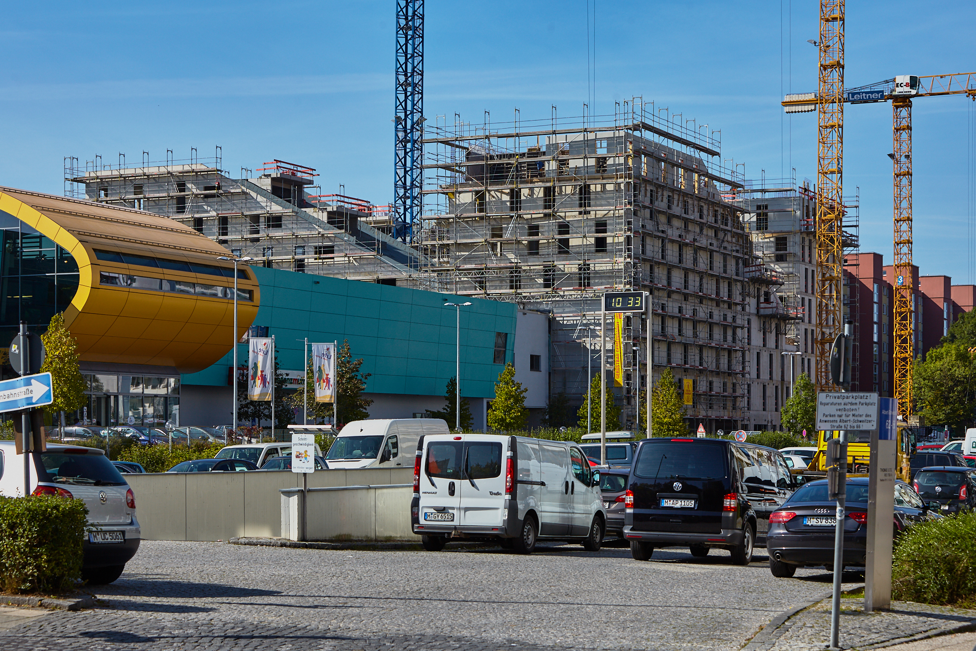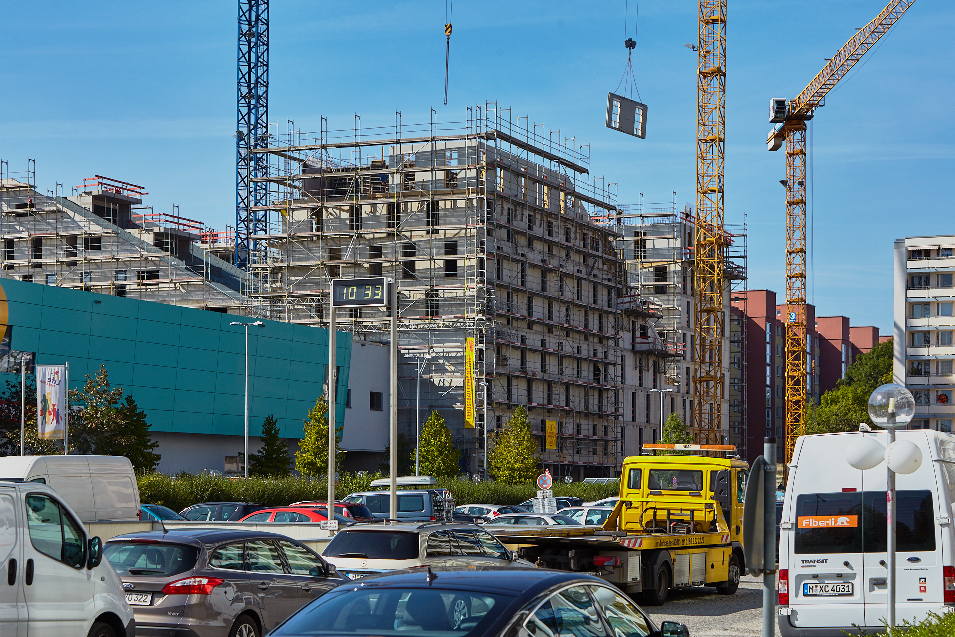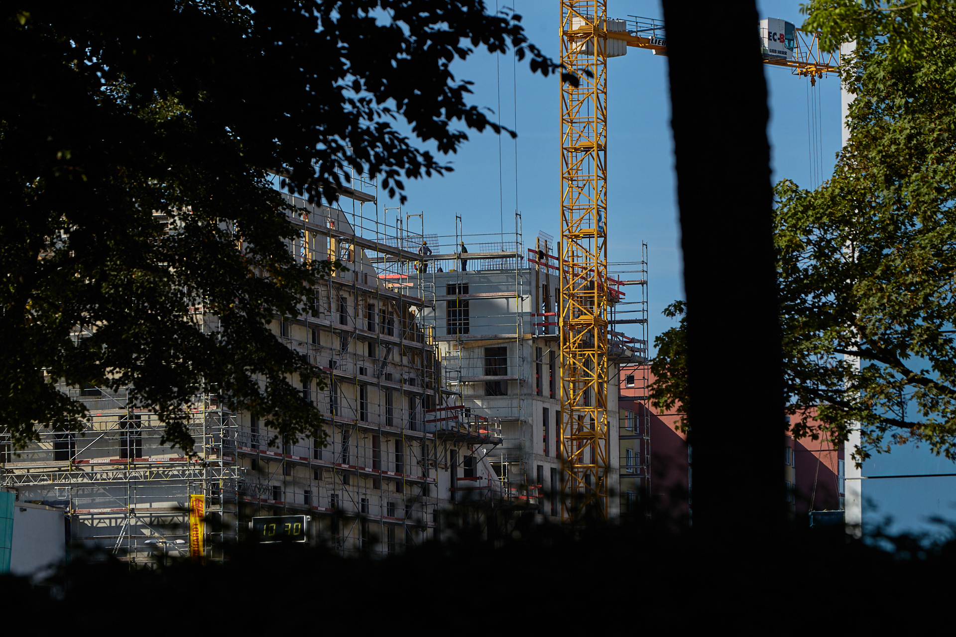 Der Rohbau an einigen der vier "Türmen" ist noch nicht abgeschlossen. Hier gehen die BAuarbeiten weiter. Die Bausetelle LAO-HAUS zeigt immer mehr, wie das fertige Gebäude aussehen wird.
