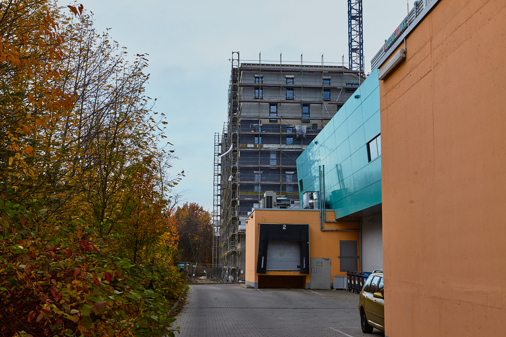Neuperlach - Baustelle LAO-Haus mit Gerüst 11.11.2014