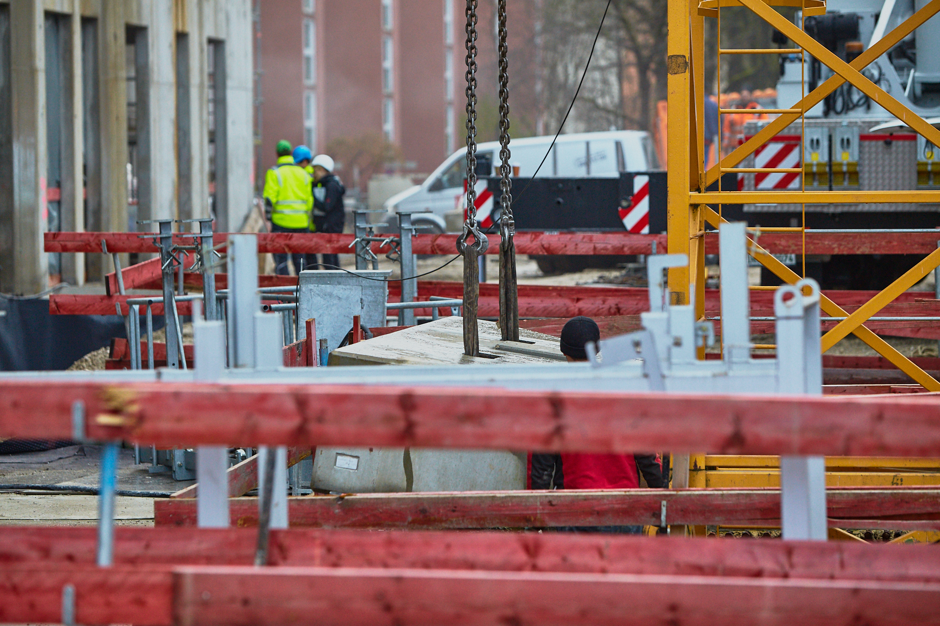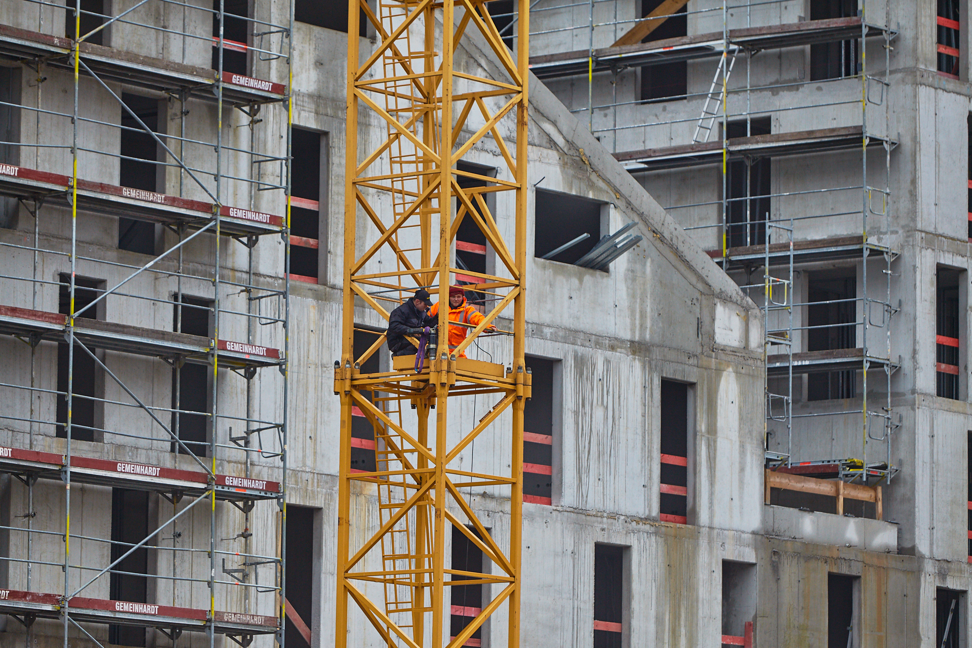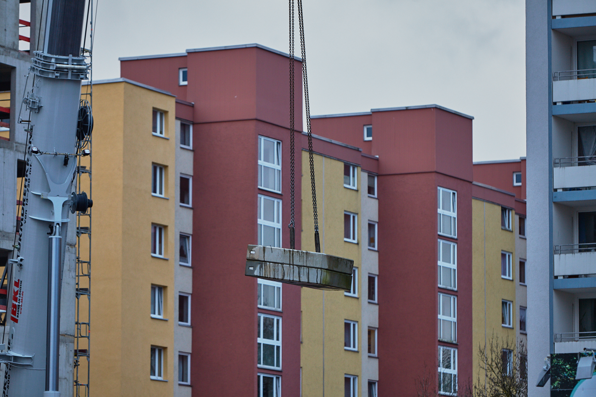 Heute wird der zweite Kran an der Baustelle LAO-HAUS abgebaut. Ein Zeichen, dass eine Bauphase zu Ende geht. Die Baustelle am LAO-Haus ist immer noch mit einem Gerüst ummantelt. Die Außenwände werden mit dicken Isoliermatten gegen Kälte gedämmt. Die Bauarbeiten gehen auf volle Touren weiter