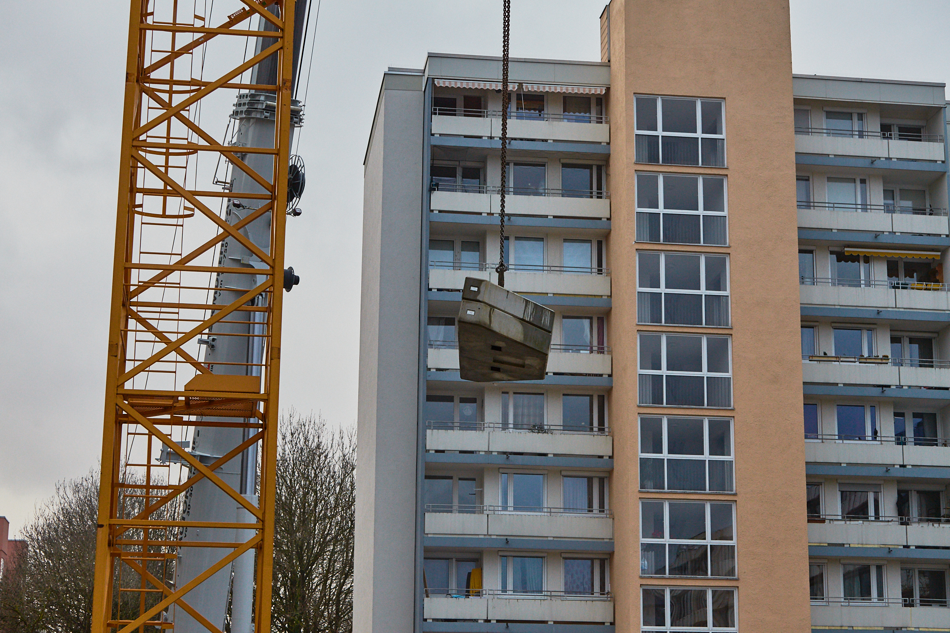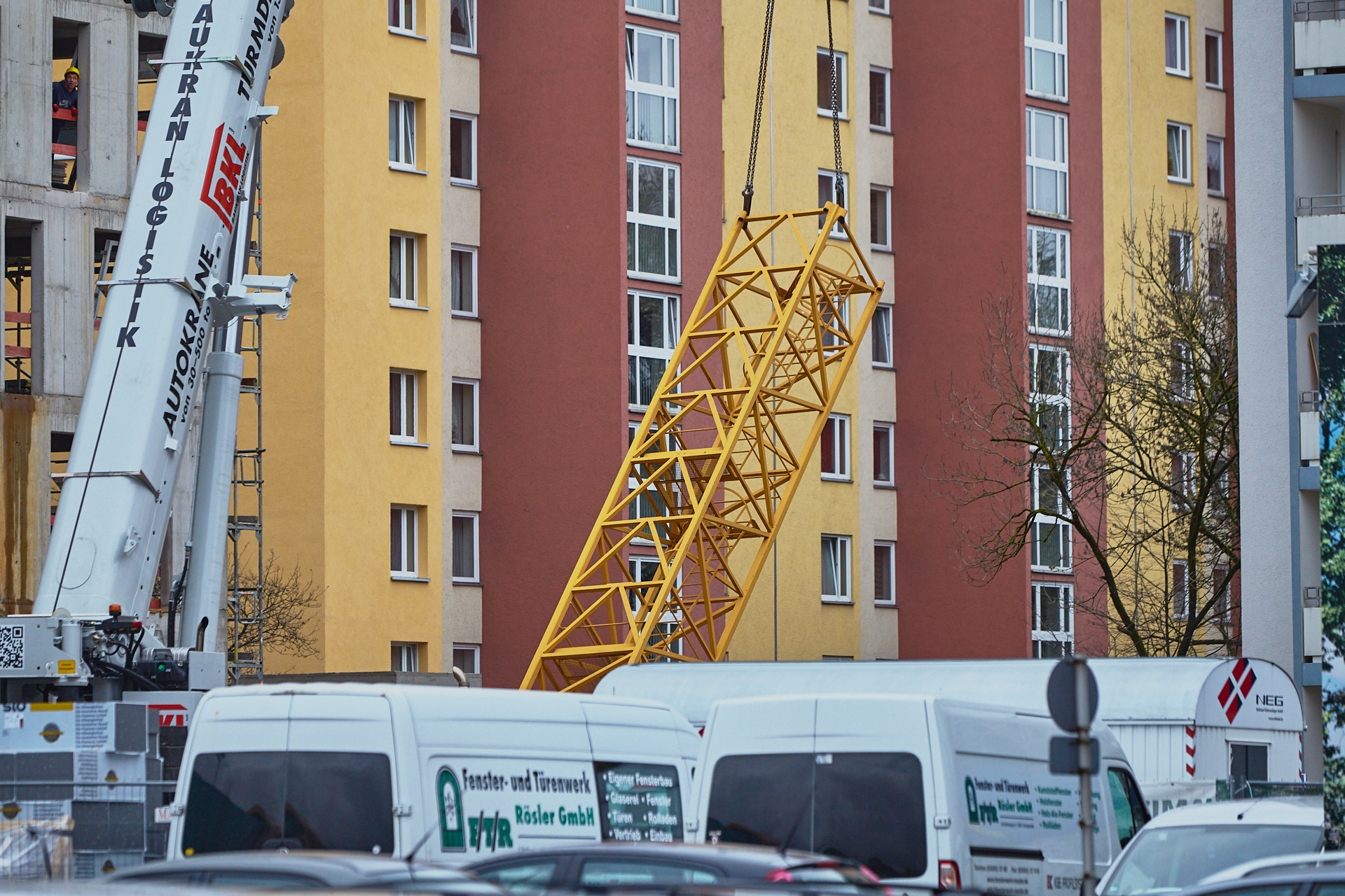 Der dritte Kran wird abgebaut