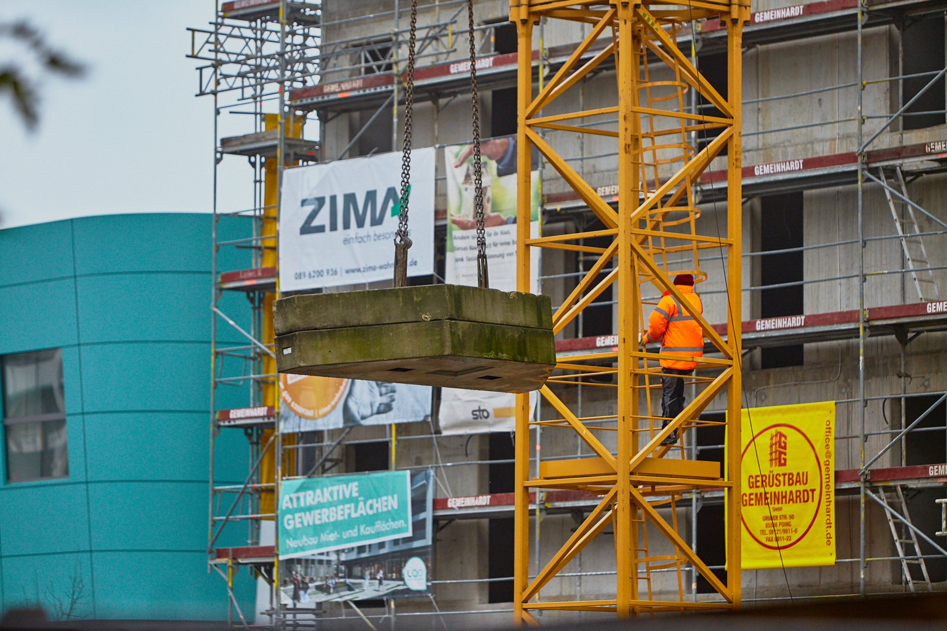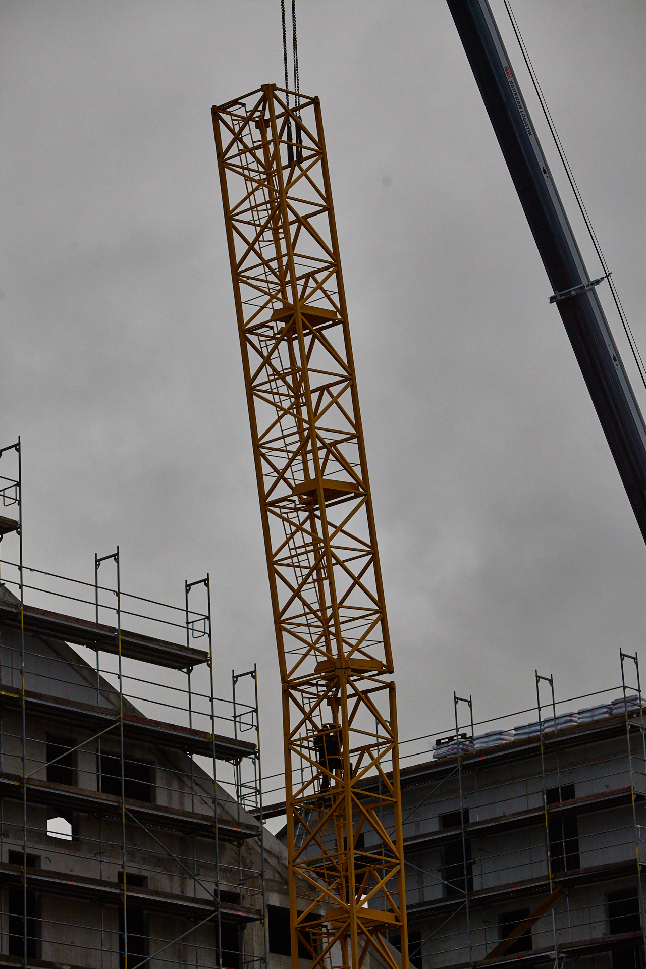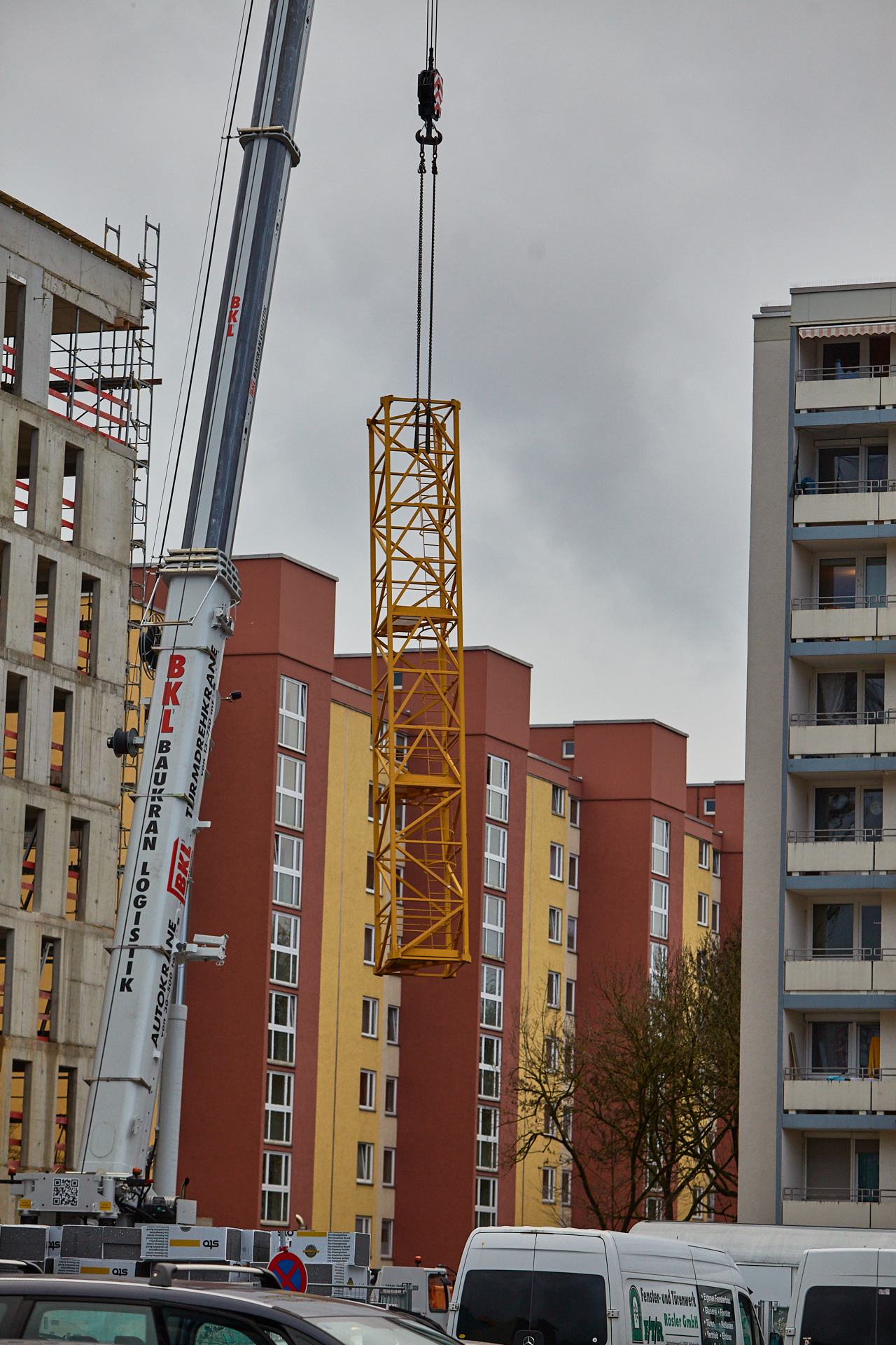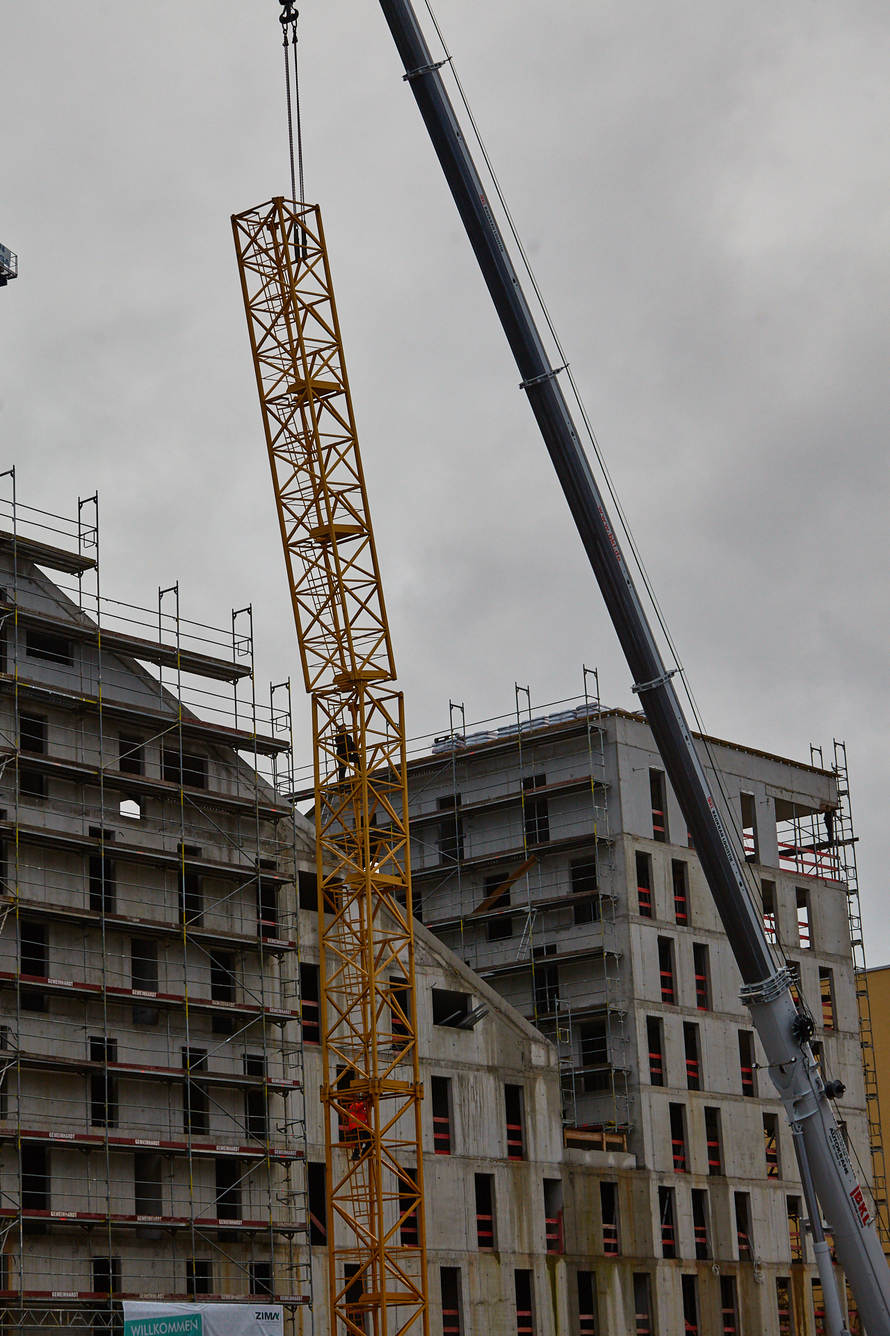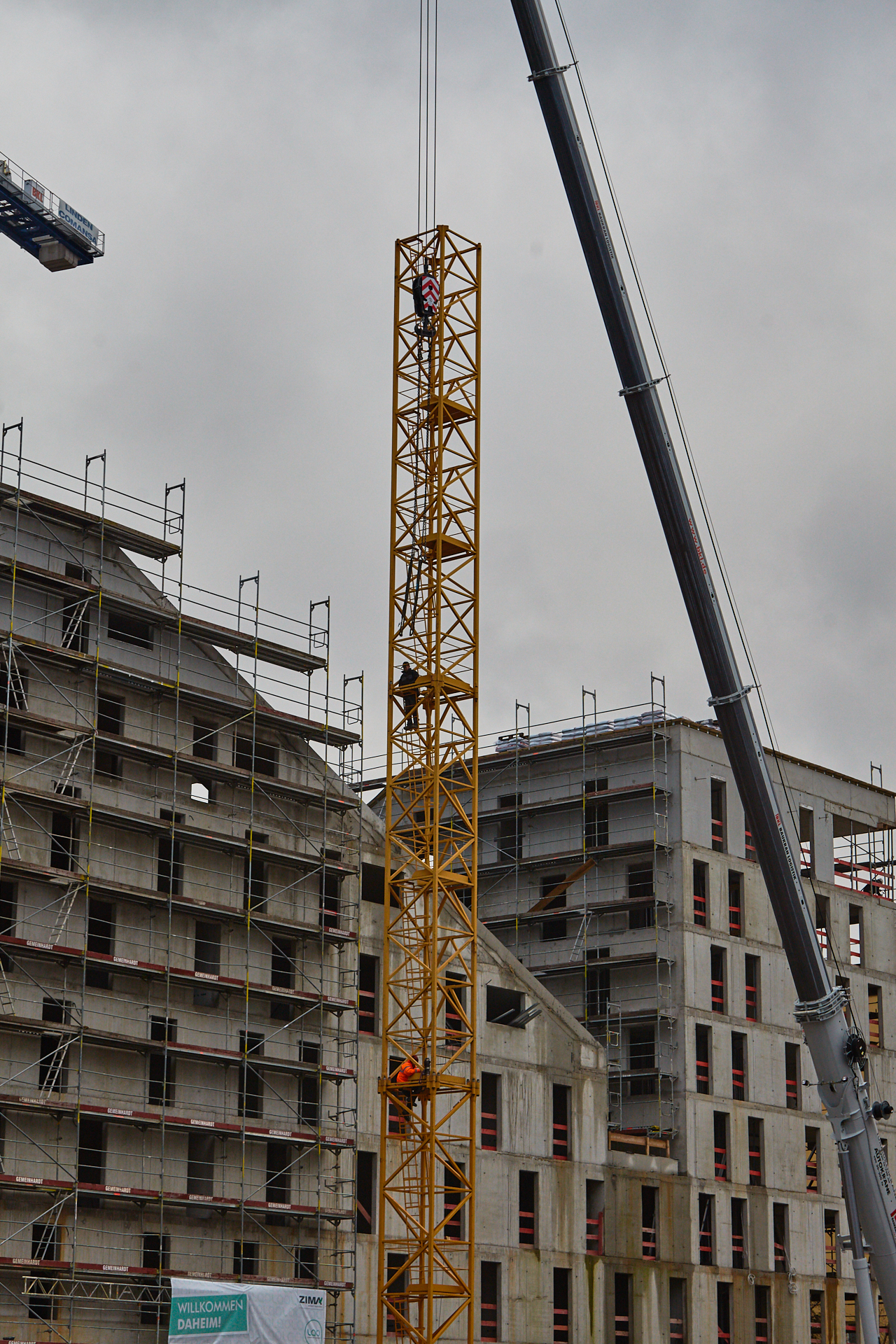 Heute wird der zweite Kran an der Baustelle LAO-HAUS abgebaut. Ein Zeichen, dass eine Bauphase zu Ende geht. Die Baustelle am LAO-Haus ist immer noch mit einem Gerüst ummantelt. Die Außenwände werden mit dicken Isoliermatten gegen Kälte gedämmt. Die Bauarbeiten gehen auf volle Touren weiter