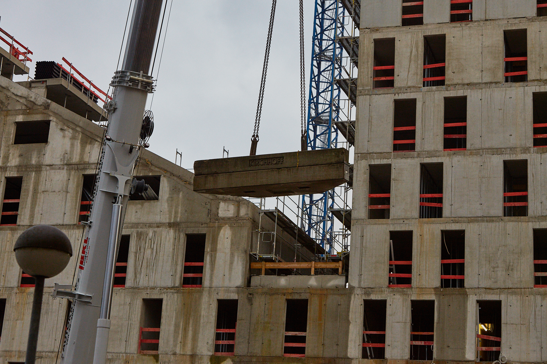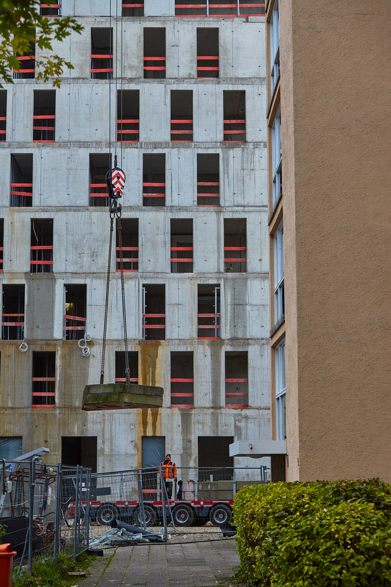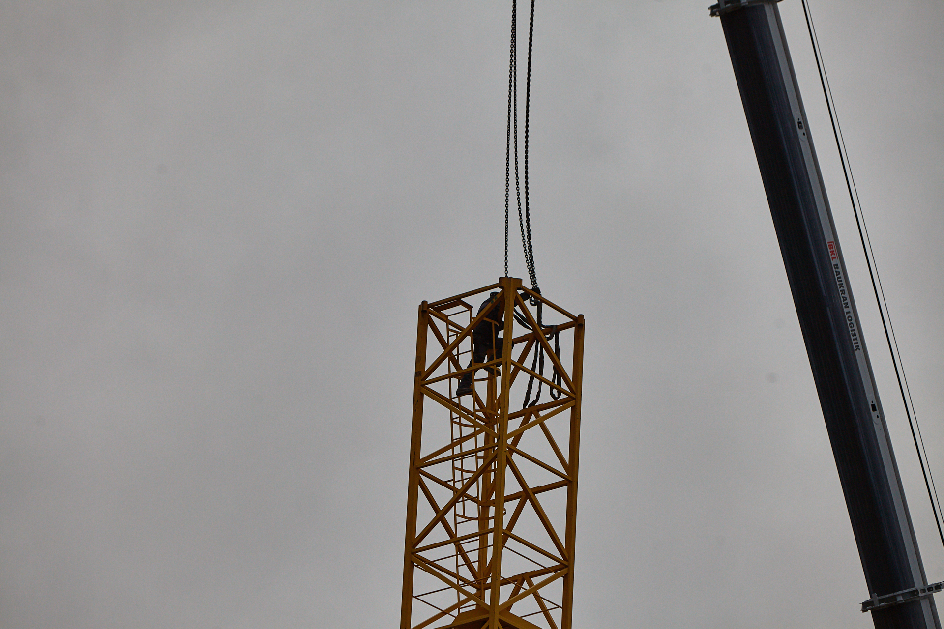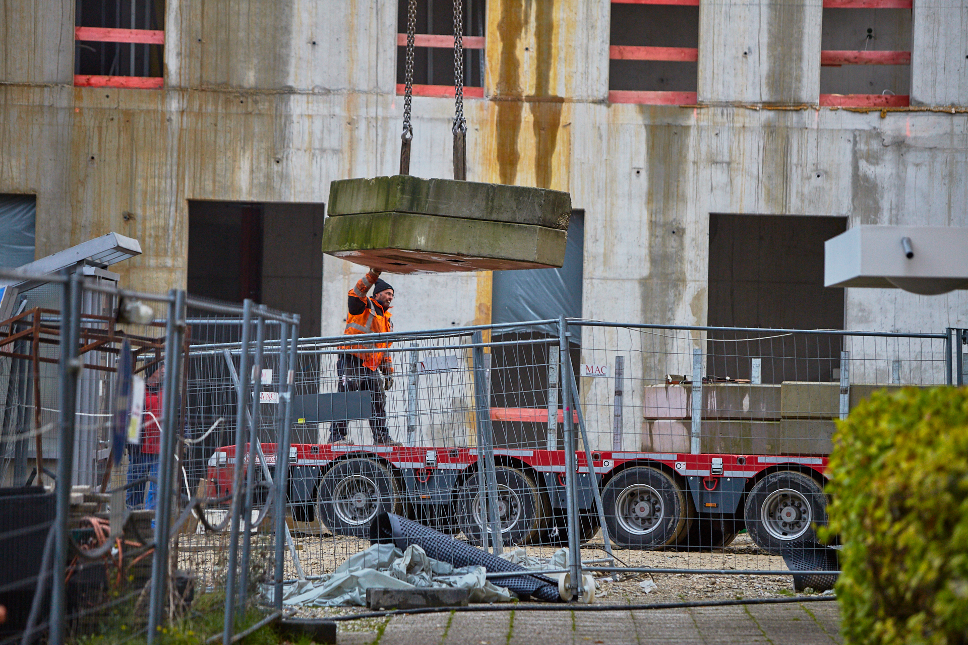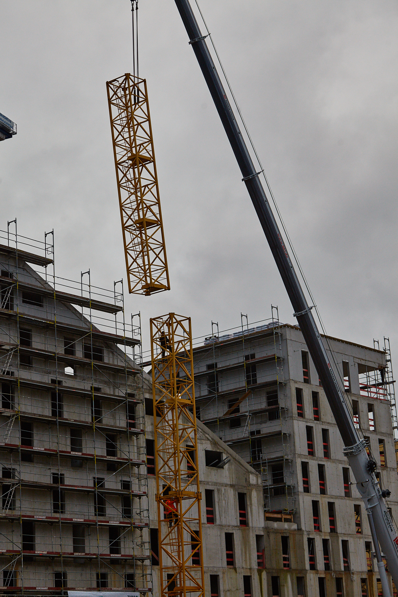 Heute wird der zweite Kran an der Baustelle LAO-HAUS abgebaut. Ein Zeichen, dass eine Bauphase zu Ende geht. Die Baustelle am LAO-Haus ist immer noch mit einem Gerüst ummantelt. Die Außenwände werden mit dicken Isoliermatten gegen Kälte gedämmt. Die Bauarbeiten gehen auf volle Touren weiter