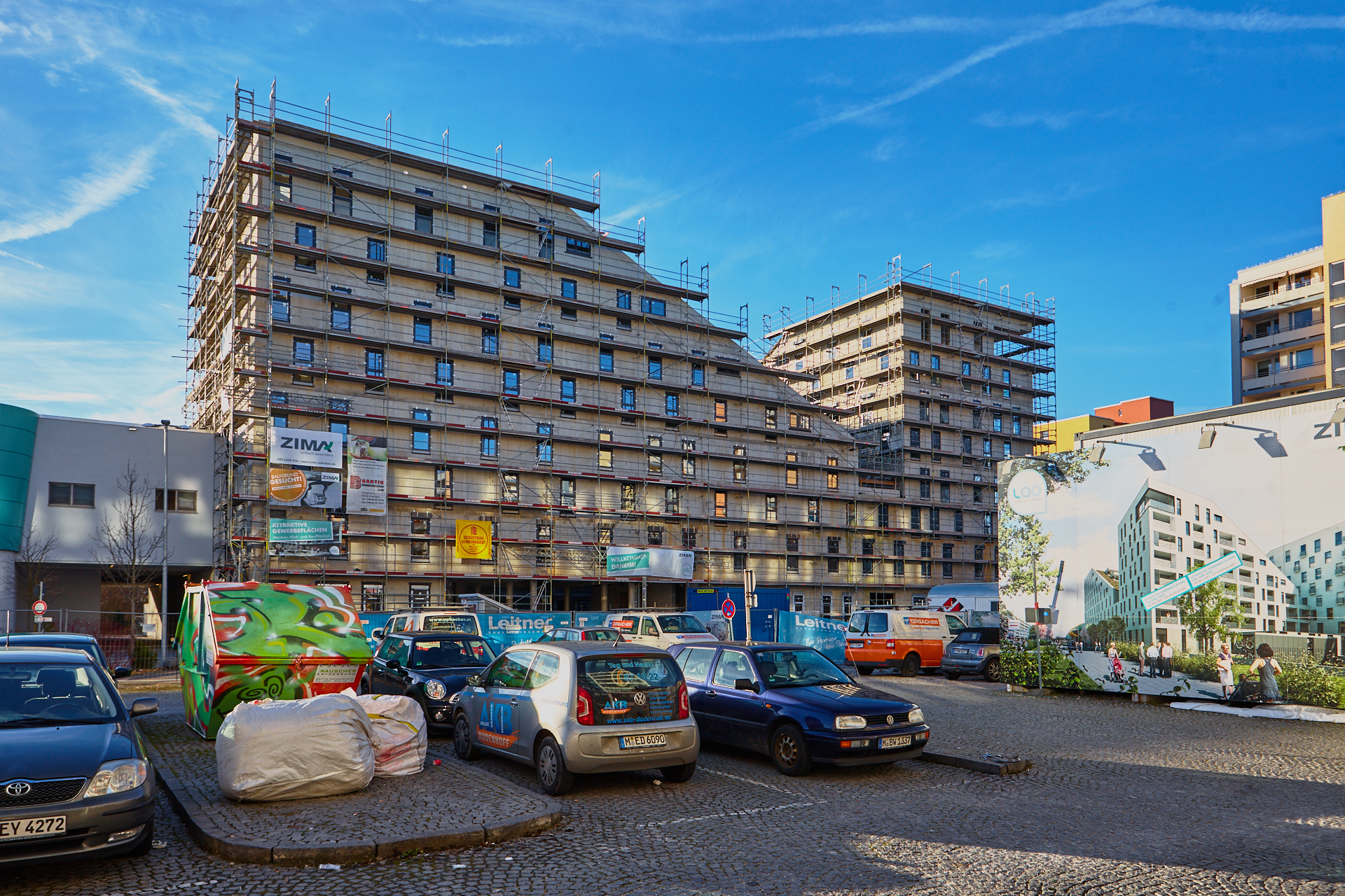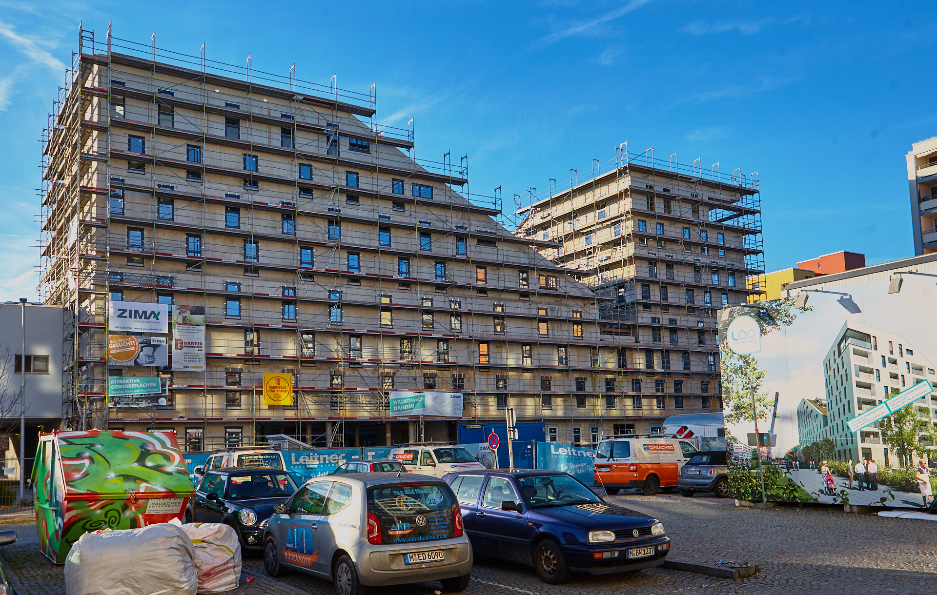 Die Baustelle am LAO-Haus ist immer noch mit Planen verhüllt. Hinter der Plan und im Inneren gehen die Arbeiten zugig voran.