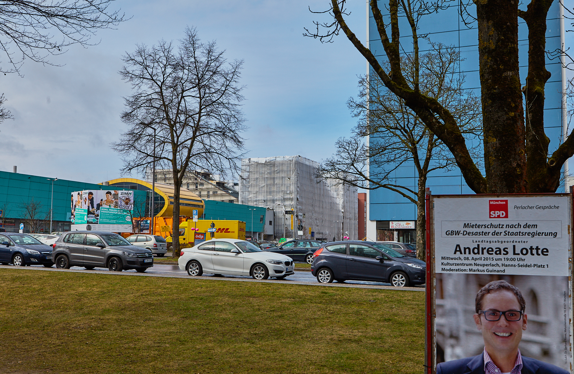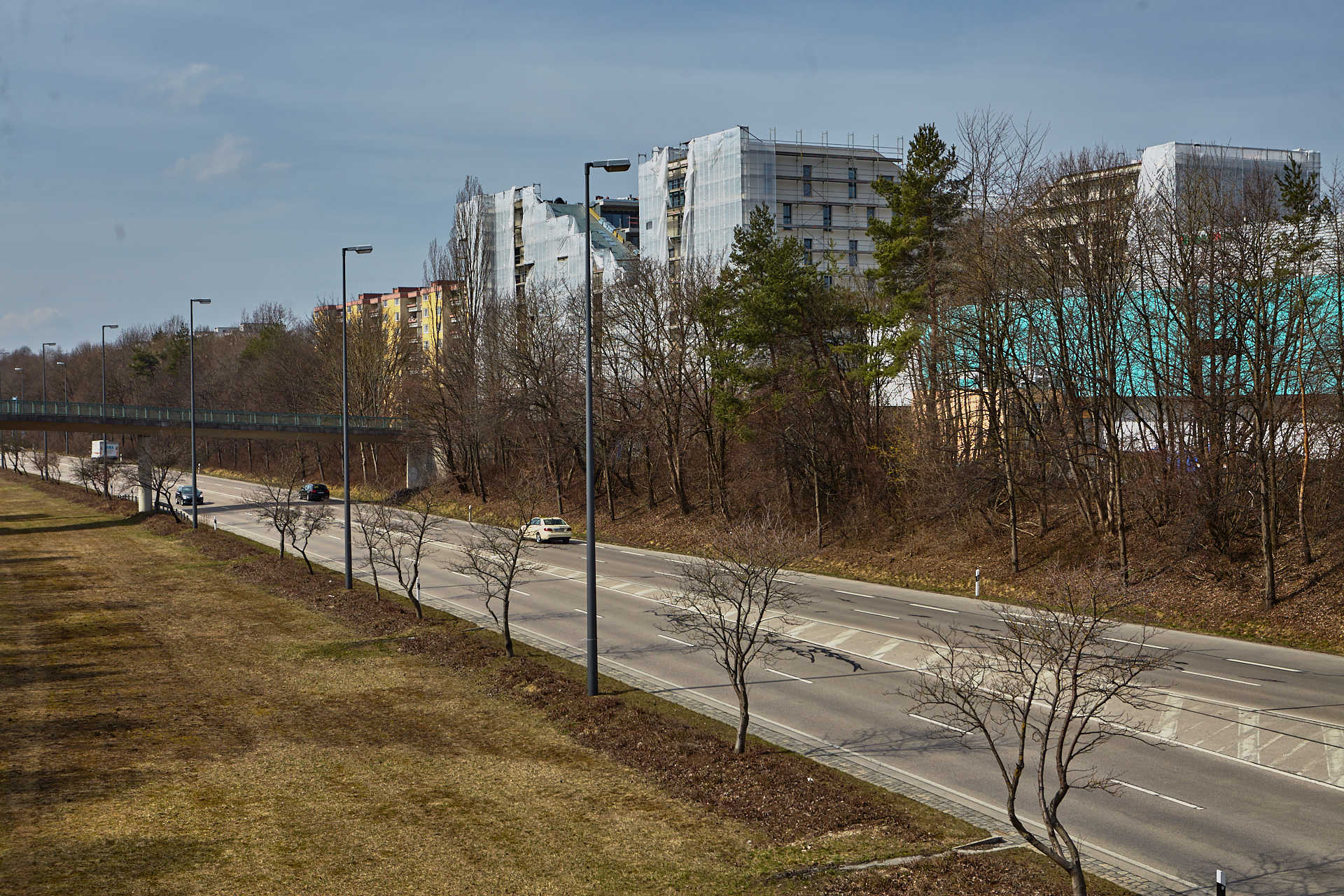 Das Neuperlacher LAO-HAUS von der Ständlerstraße aus gesehen. Ein gewaltiger und interessanter Bau.