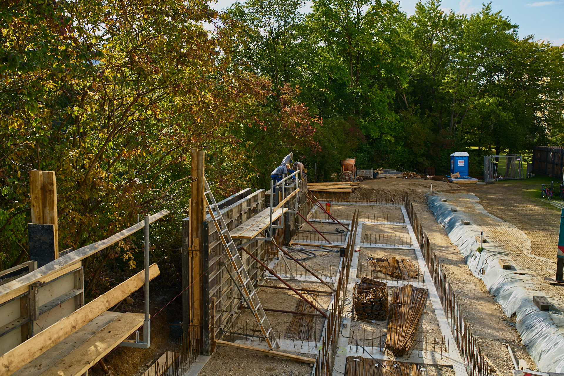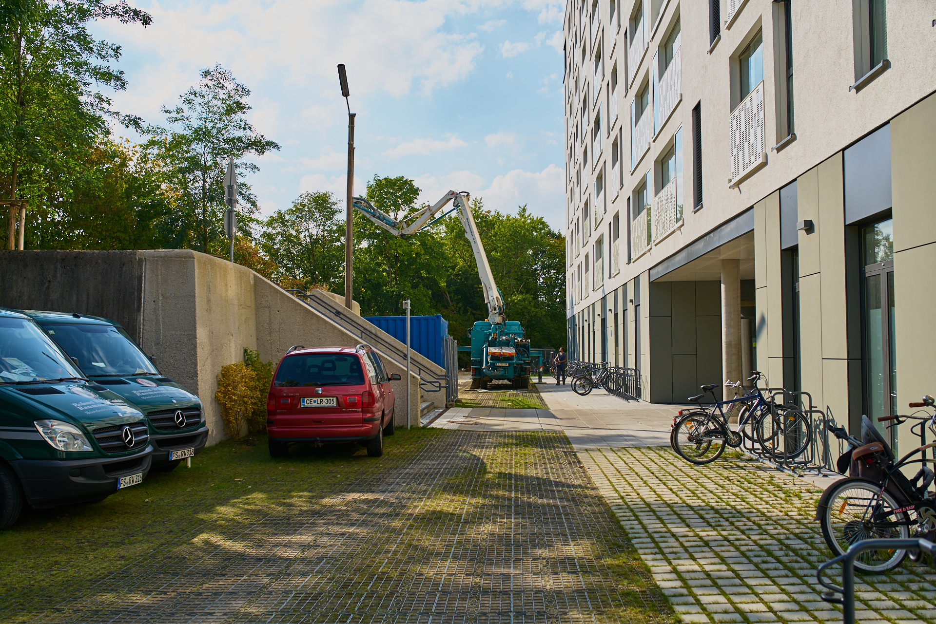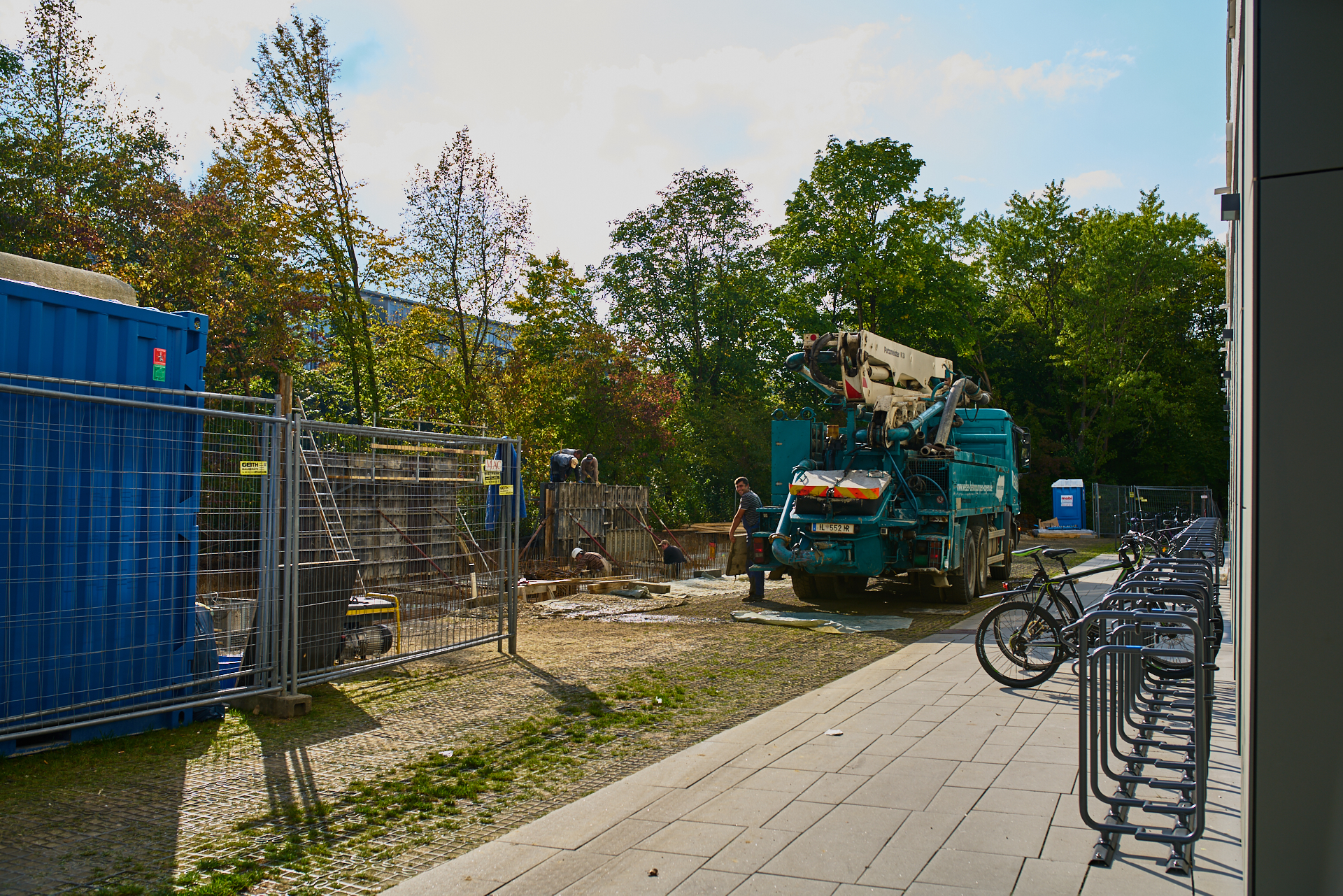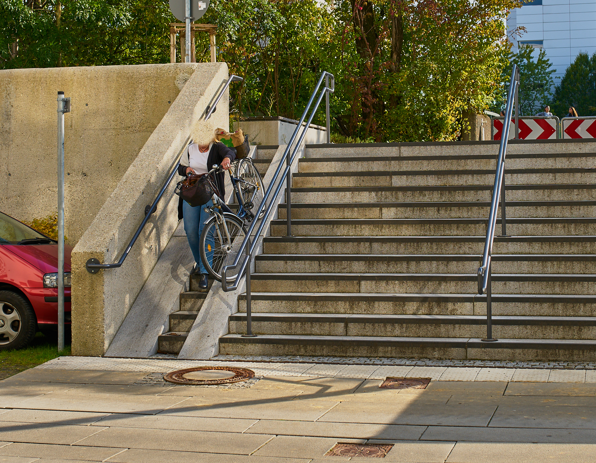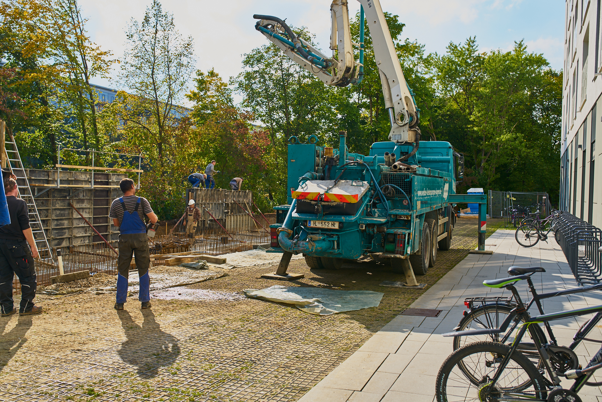 Heute am 26.09.2017 wurde mit einer Betonpumpe zwischen den Spundwänden, welche die Begrenzung der Rampe bilden, Beton gepumpt. Morgen kann die Verschalung entfernt werden. Dann stehen die ersten Wände. Das Ende der verpfuschten Treppe ist absehbar. Gerade als ich heute diese Aufnahmen machte, ist eine Frau mit Fahrrad von der Brücke gekommen und wollte das Fahrrad die Treppe hinter schieben. Es ist ihr aus der Hand gerutscht und krachend nach unten gefallen. Es ist zum Glück nichts passiert. Der Plan der Treppe ist zu sehen unter: http://marx-zentrum.com marx-zentrum