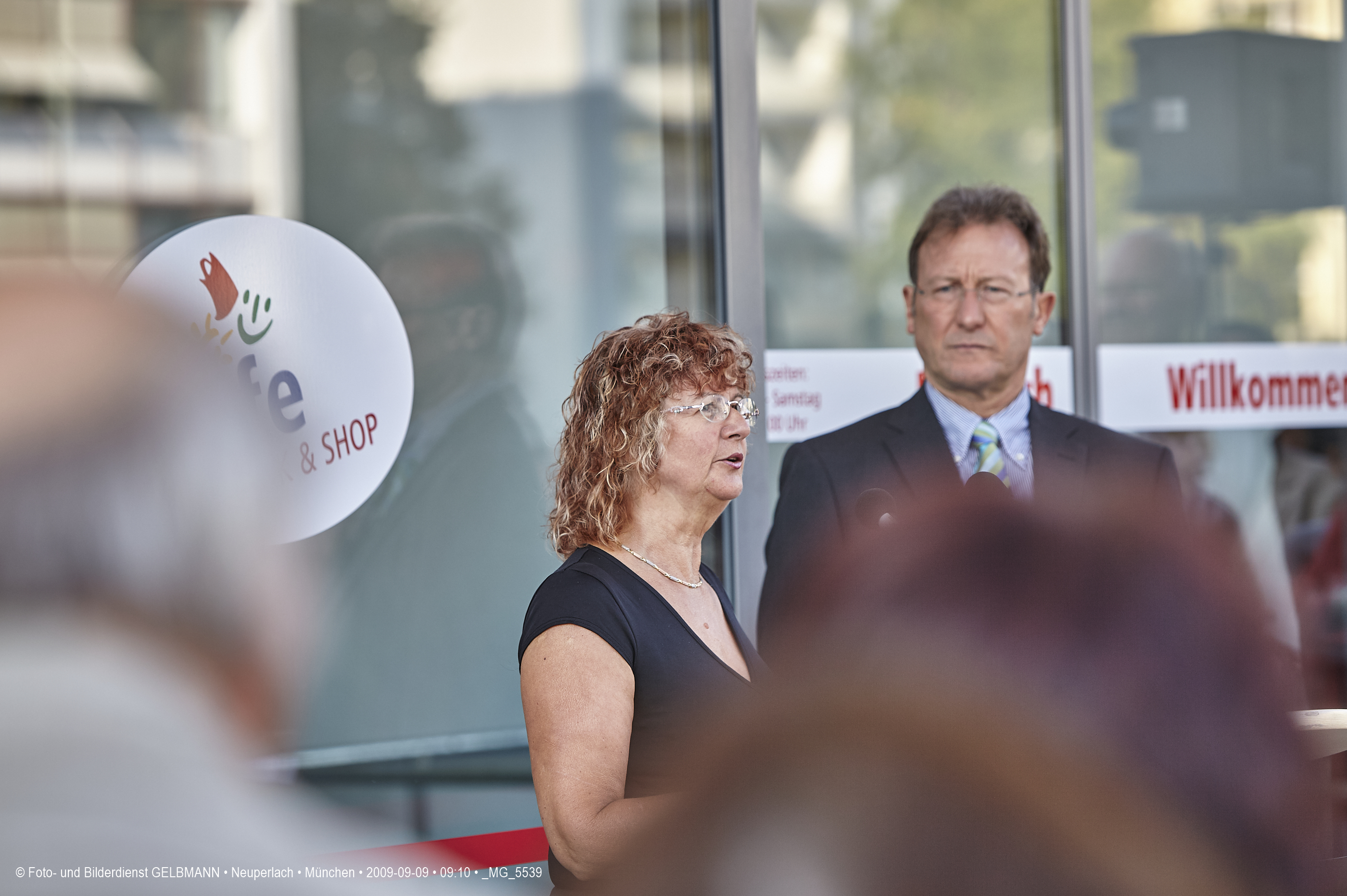Kurz vor 09:09h nahm Frau Achhammer die Schere in die Hand um vor dem wartenden Publikum das Band zu zerschneiden. Das Publikum strömte in das „life“, vorbei an den Politikern, die sich hinter dem Rednerpult in Sicherheit gebracht haben.