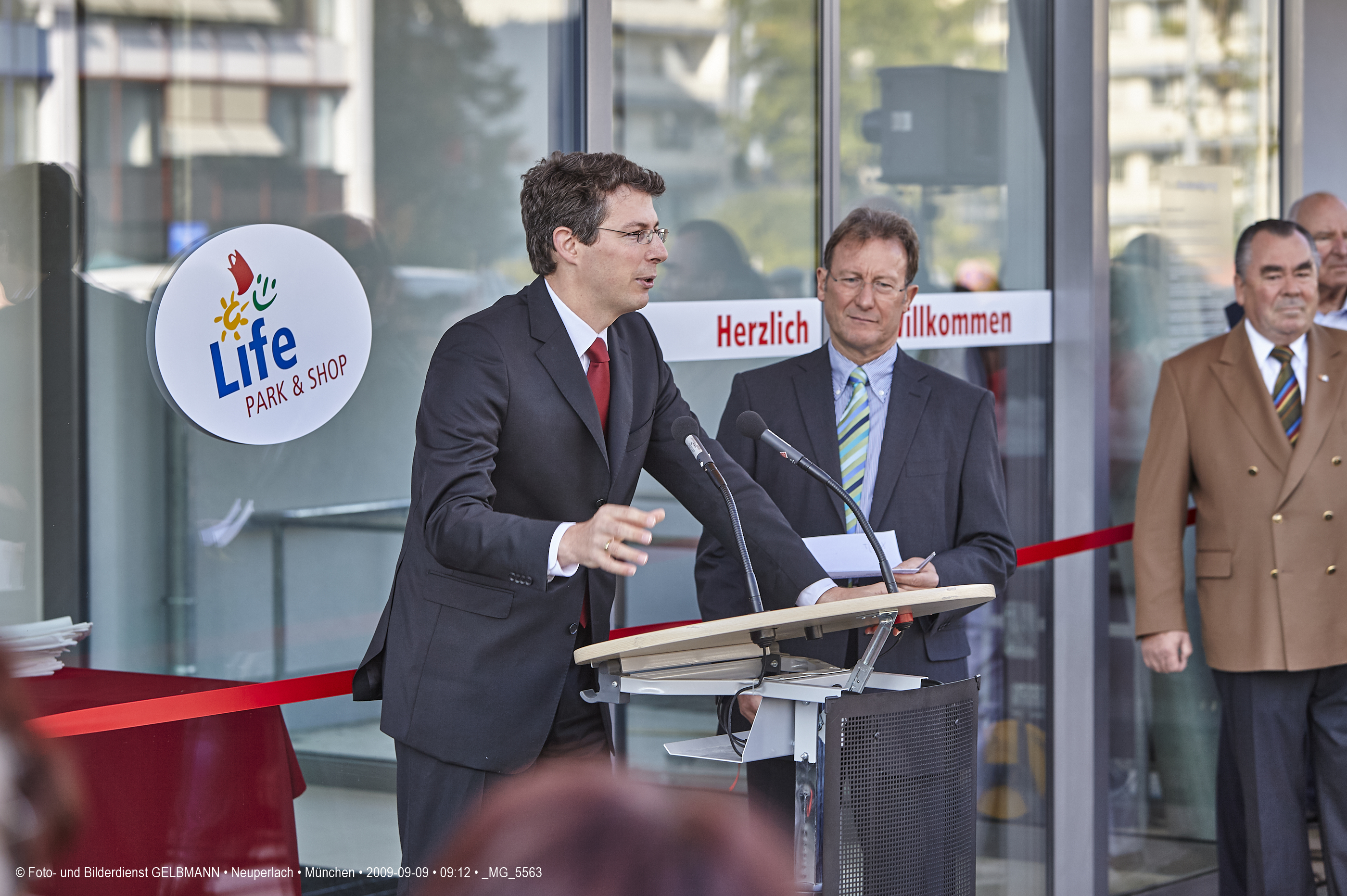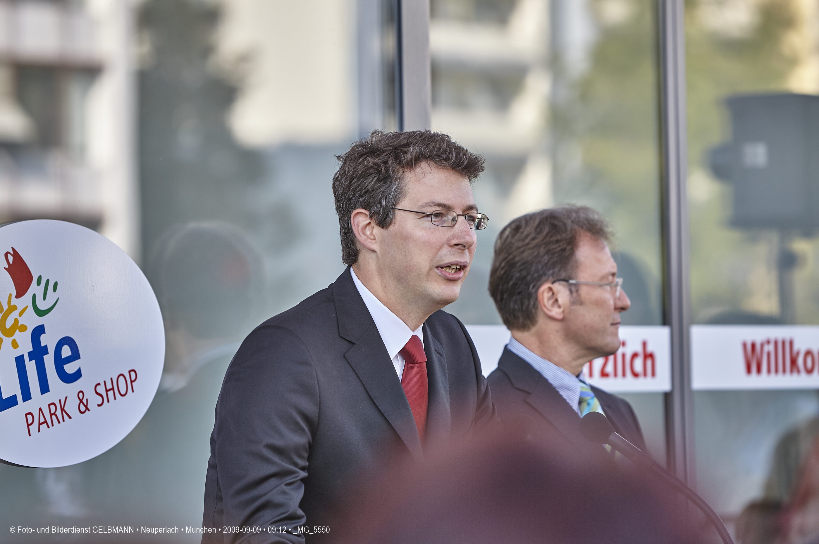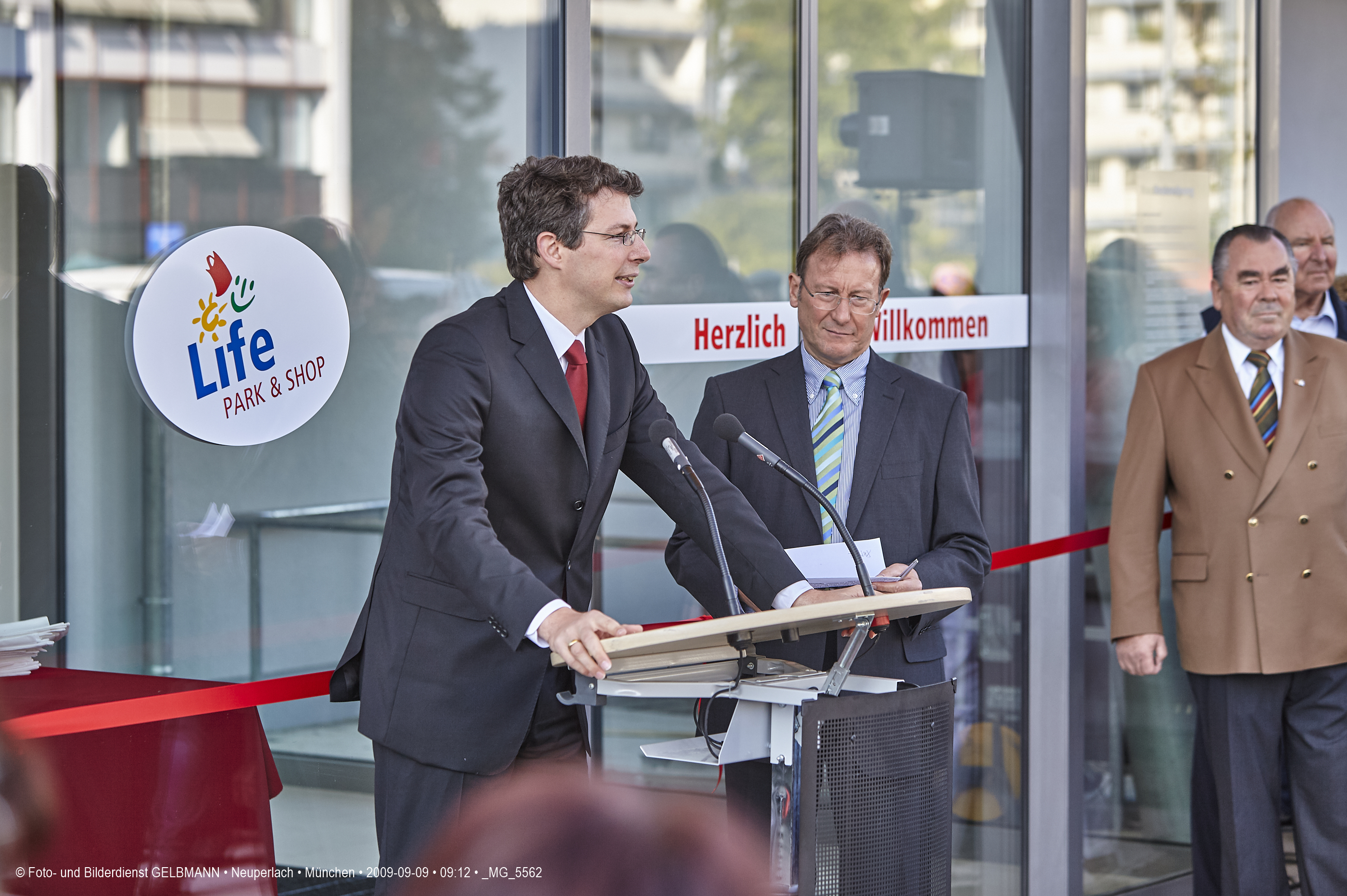 Gut zu sehen ist Markus Blume auch durch seine körperliche Größe auf der Eröffnung des Neuperlach Einkaufscenters „life“.