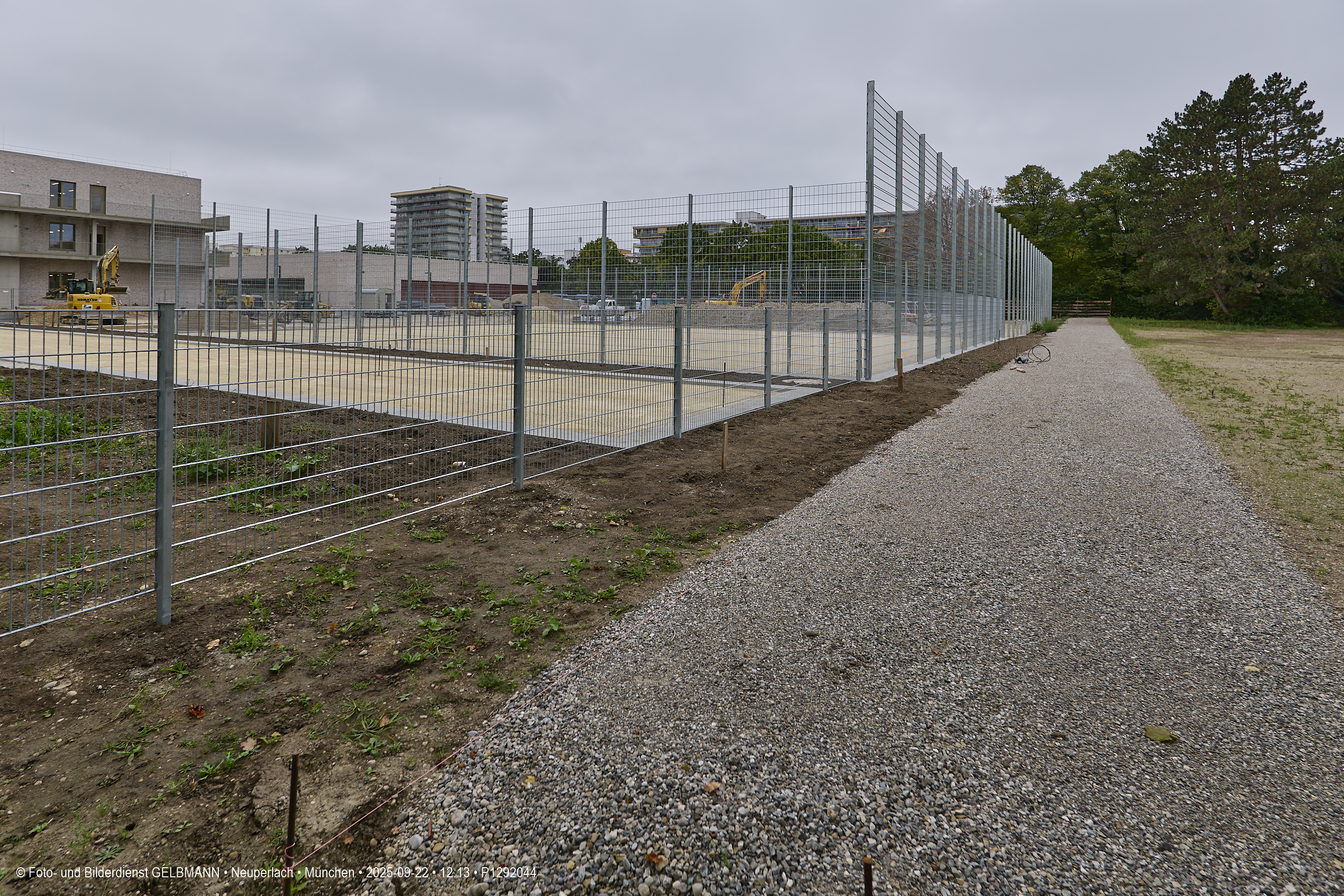Immer mehr Teile auf dem neuen Süortplatz an der Grundschule am Karl-Marx-Ring, dem neuen Campus Karl-Marx-Ring, bekommen ihr entgültiges Ausshehen. Im Augenblick ist die Laufstrecke fertiggestellt worden. Ein kleiner Teil des neuen Sportplatzes bekommt einen Zaun. Aus der Luft ist dies gut zu sehen. Ich vermute, es ist ein Basketball-Spielfeld.
