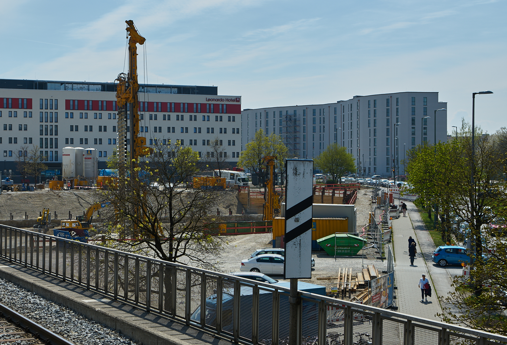 Seit Monaten, -siehe Historie auf diesen Seiten-, finden auf dem ehemaligen 'P&R-Parkplatz' an der Carl-Wery-Straße, direkt neben dem U-/S-Bahnhof Neuperlach Süd, gegenüber dem Leonardo Hotel, Bauarbeiten statt. Hier entsteht ein 17-geschossiges Hochhaus, das als Boardinghouse fungieren wird, in dem aber auch Einzelhandelsflächen und ein Parkhaus integriert sein wird.