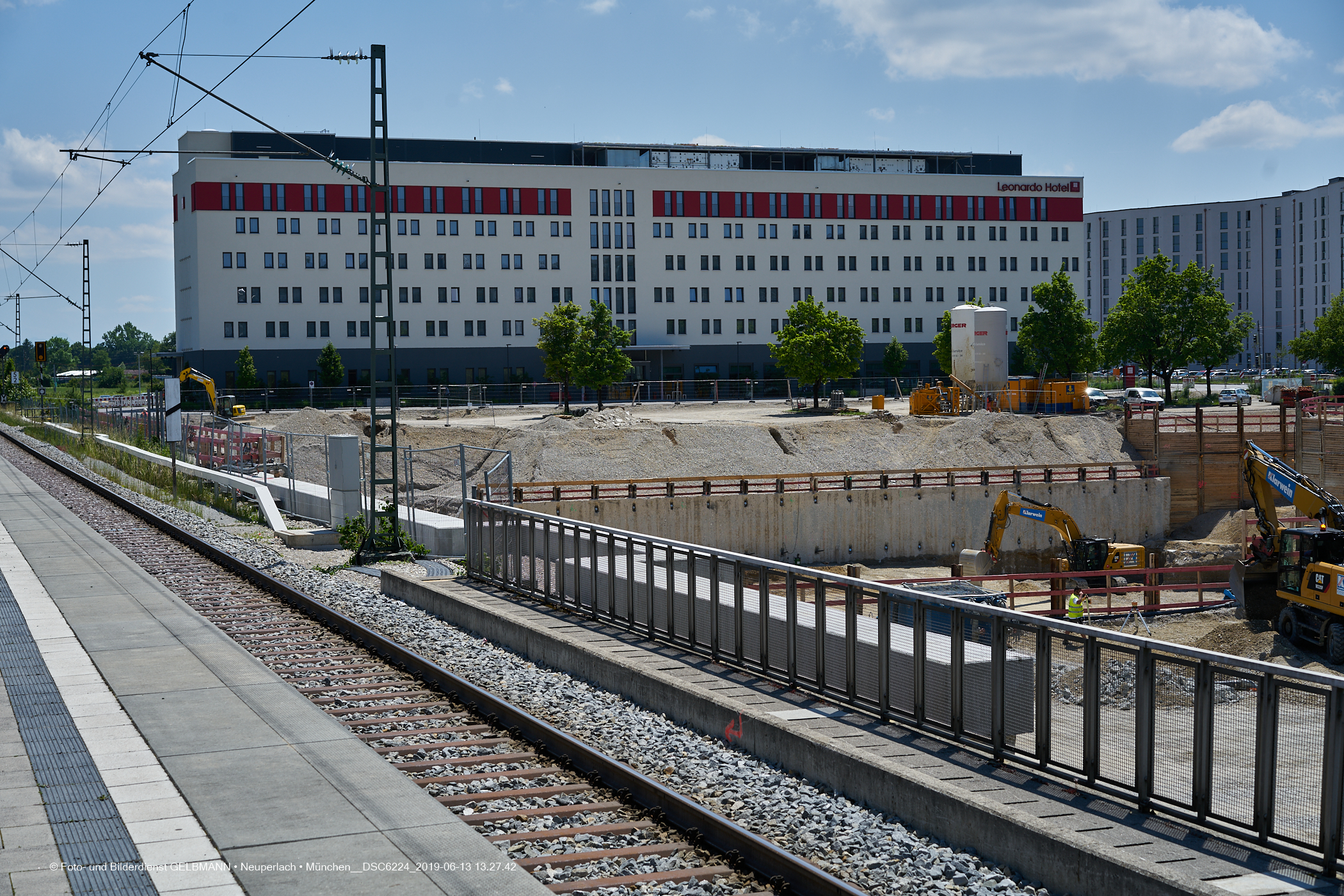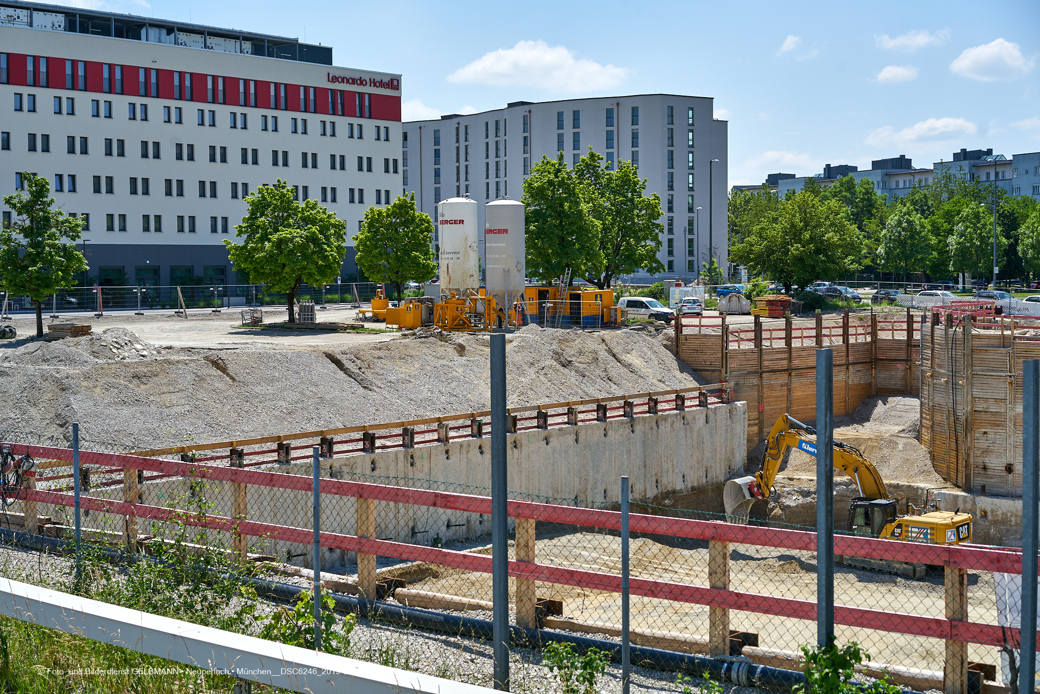 Boardinghouse in Neuperlach Süd: „Zuhause auf Zeit“ Auf dem ehemaligen P&R-Parkplatz an der Carl-Wery-Straße, im Hintergrund ist die Wohnanlage Cal-Wery-Straße zu sehen, direkt an der U- und S-Bahnstation Neuperlach Süd, entsteht ein 17-geschossiges, WOW, echtes(!) Hochhaus, das Boardinghouse. Die aktuelle Historie dieser Baustelle, seit Baubeginn im November 2018, ist hier zu sehen. Besonders eindrucksvoll sind sie Spundwände zur S-Bahn-Gleisanlage. Beindruckende Fotos von der Baugrube habe ich vom S-Bahnsteig Neuperlach- Süd geschossen. Allerdings ist dazu ein Fahrschein oder Bahnsteigkarte der MGV zwingend notwendig. Vielleicht war es ein Zufall oder man hat es auf Siemensmitarbeiter abgesehen, zweimal schon wurde ich beim Verlassen des Bahnsteges kontrolliert. Eine Strafzahlung von 60.- wären mir, trotz aller Liebe zu dieser Baustelle, zu hoch.