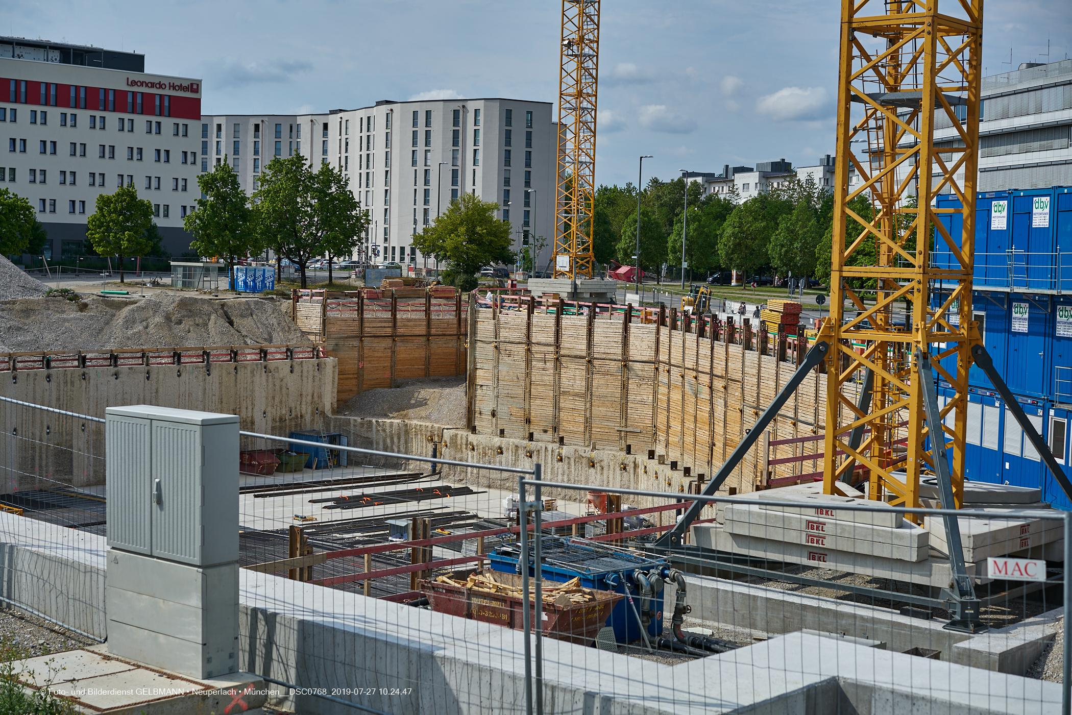 Auf dem ehemaligen P&R-Parkplatz an der Carl-Wery-Straße, im Hintergrund ist die Wohnanlage Cal-Wery-Straße zu sehen, direkt an der U- und S-Bahnstation Neuperlach Süd, entsteht ein 17-geschossiges, WOW, echtes(!) Hochhaus, das Boardinghouse. Die aktuelle Historie dieser Baustelle, seit Baubeginn im November 2018, ist hier zu sehen. Besonders eindrucksvoll sind sie Spundwände zur S-Bahn-Gleisanlage. Beindruckende Fotos von der Baugrube habe ich vom S-Bahnsteig Neuperlach- Süd geschossen. Allerdings ist dazu ein Fahrschein oder Bahnsteigkarte der MGV zwingend notwendig. Vielleicht war es ein Zufall oder man hat es auf Siemensmitarbeiter abgesehen, zweimal schon wurde ich beim Verlassen des Bahnsteges kontrolliert. Eine Strafzahlung von 60.- wären mir, trotz aller Liebe zu dieser Baustelle, zu hoch.