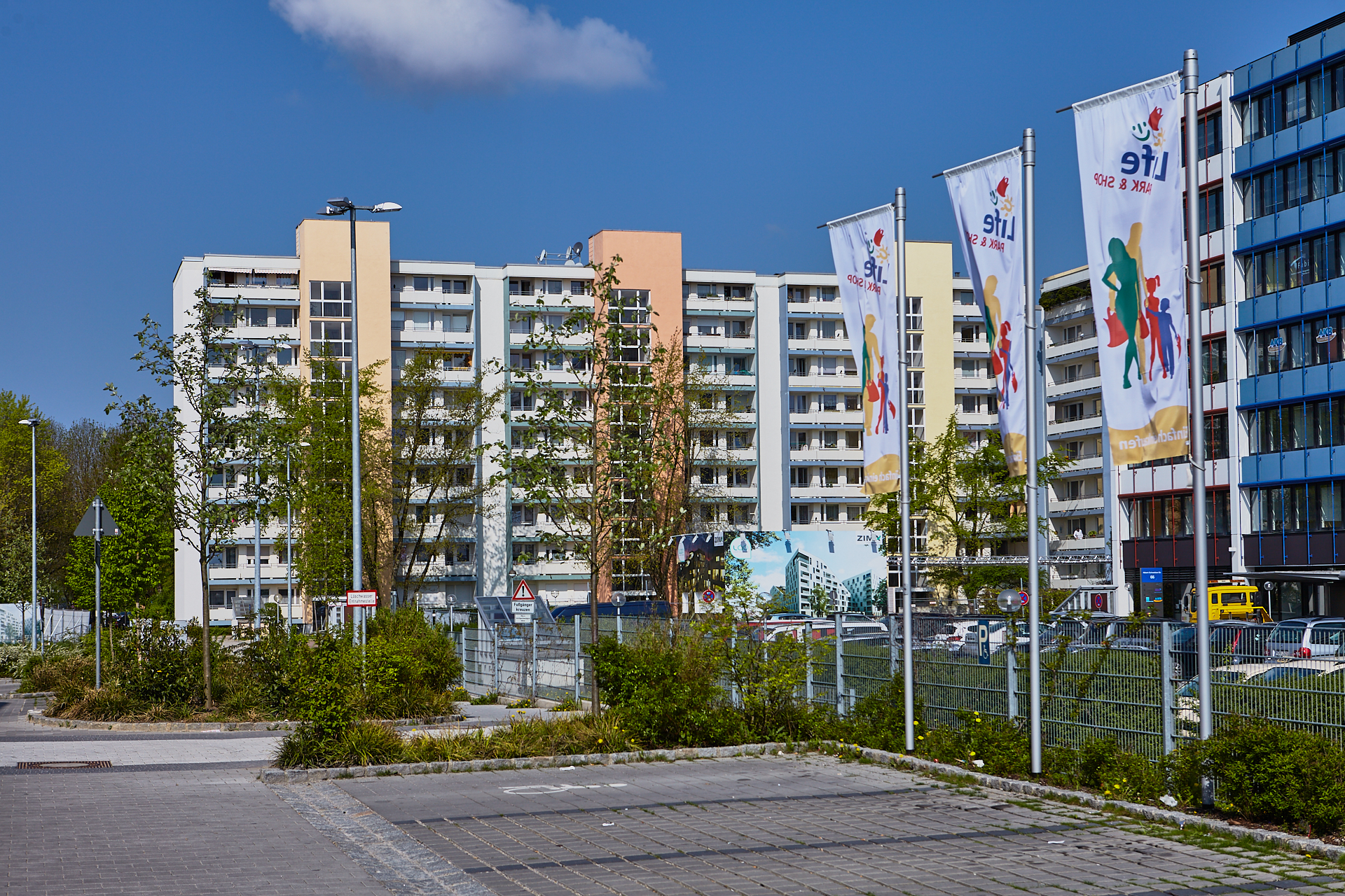 Der Platz vor der Baustelle ist noch im Originalzustand und die Sonnenuhr zeigt die Zeit an. Ihr Countdown läuft.