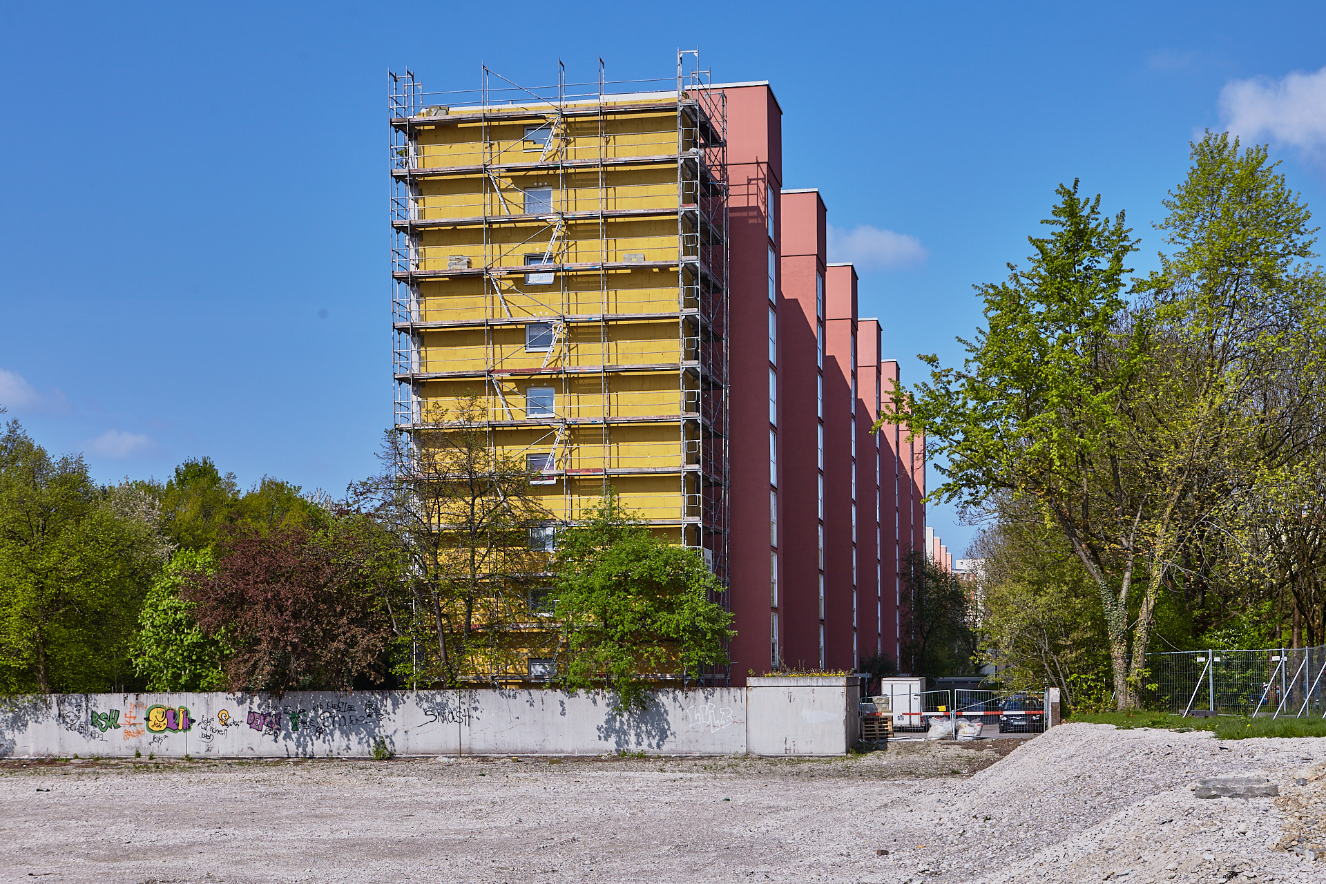 Eine Schotterweg führt über die Bausetelle zum LAO-Haus in unser schönes Plettzentrum.