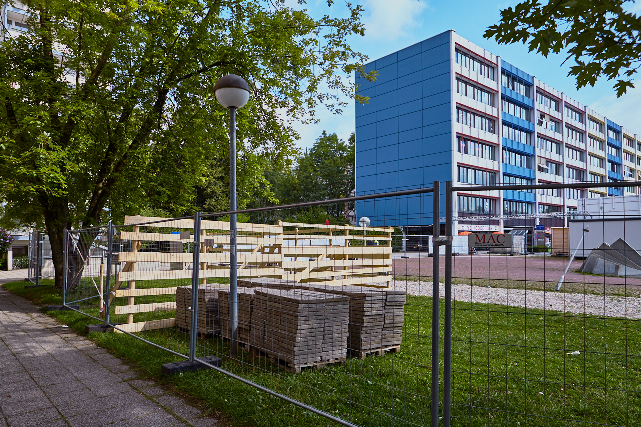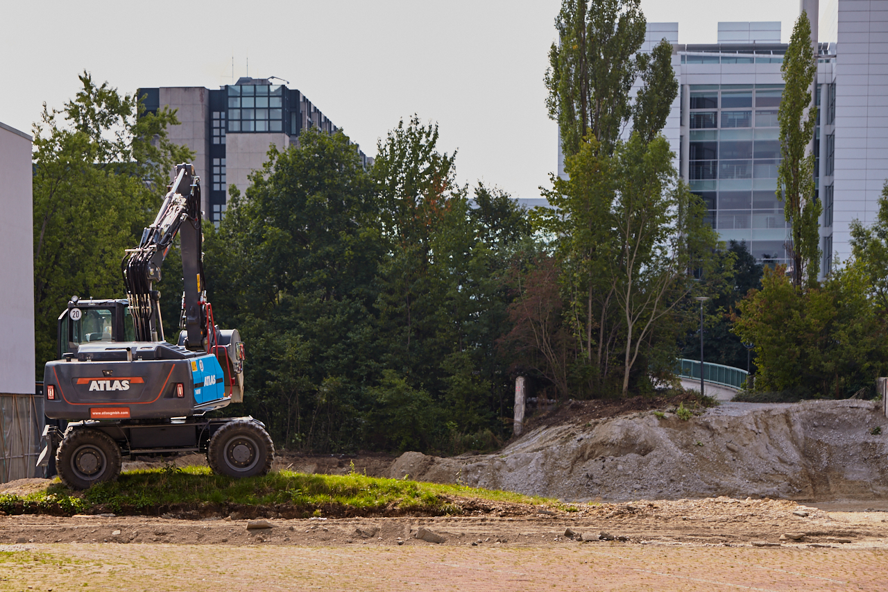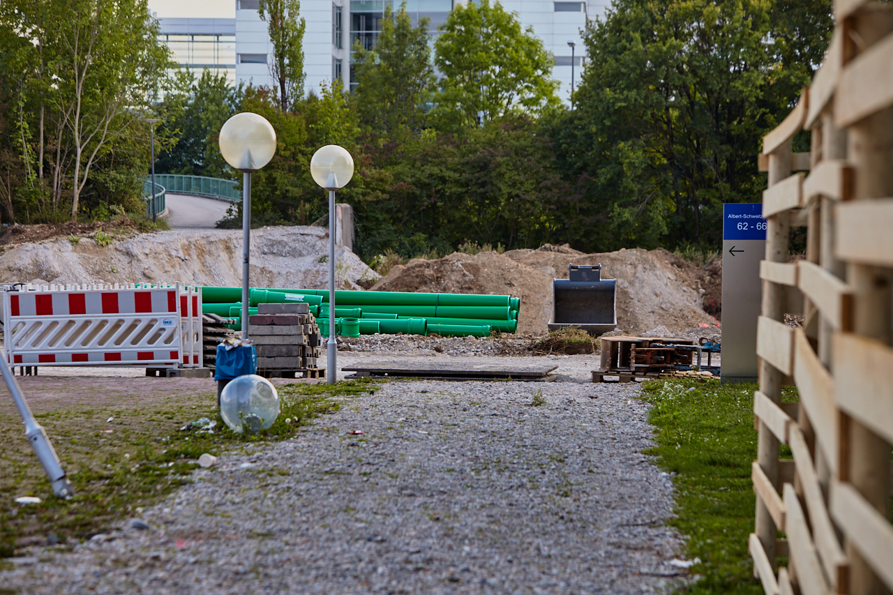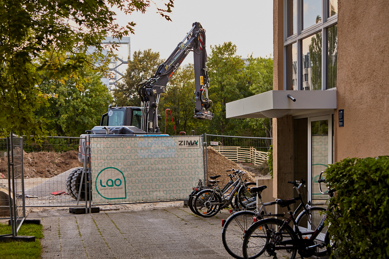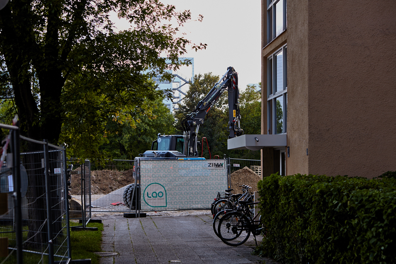 Langsam beginnen die Aushubarbeiten an dem zukünftigen Standort des LAO-Hauses. Der Weg über die Brücke an der Ständlerstraße ist seit einigen Tagen gesperrt. Der Platz vor der Baustelle ist noch im Originalzustand und die Sonnenuhr zeigt die Zeit an. Ihr Countdown läuft.