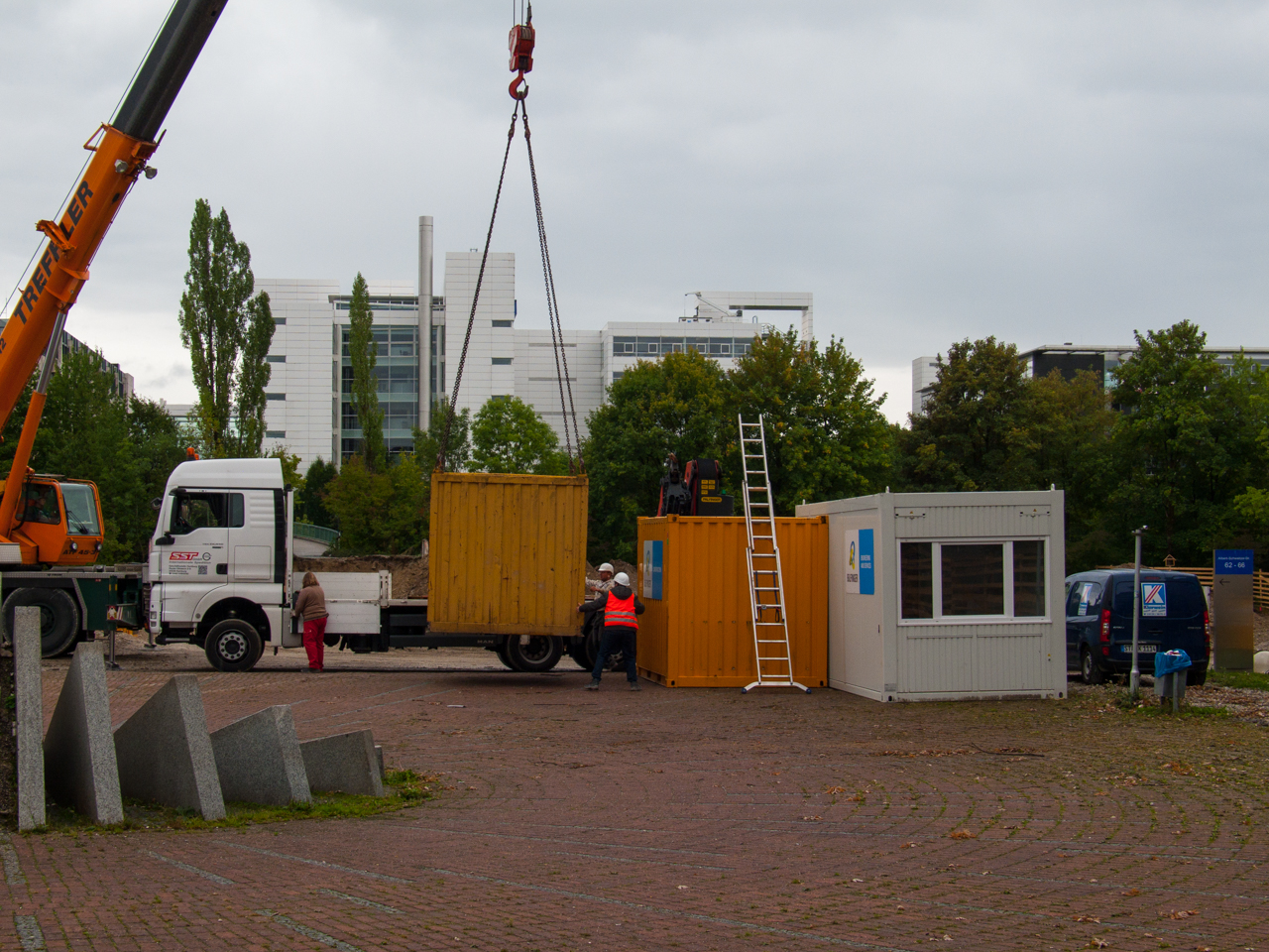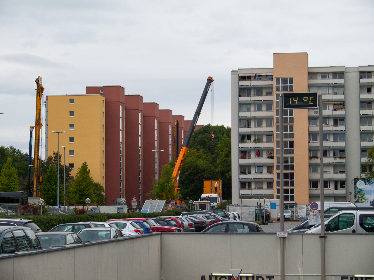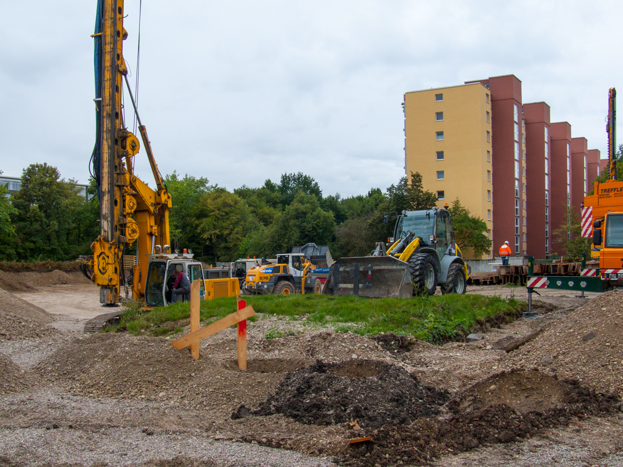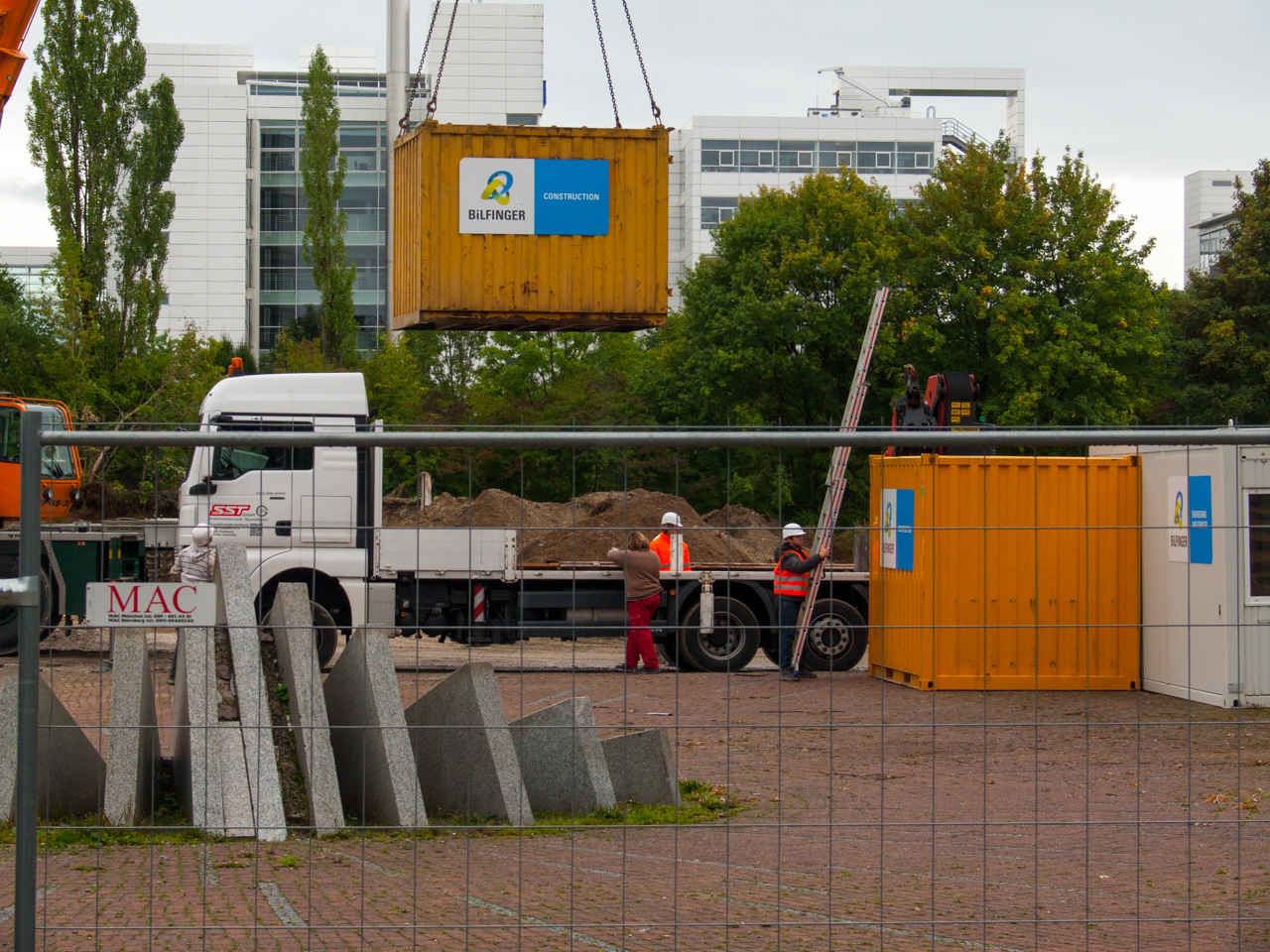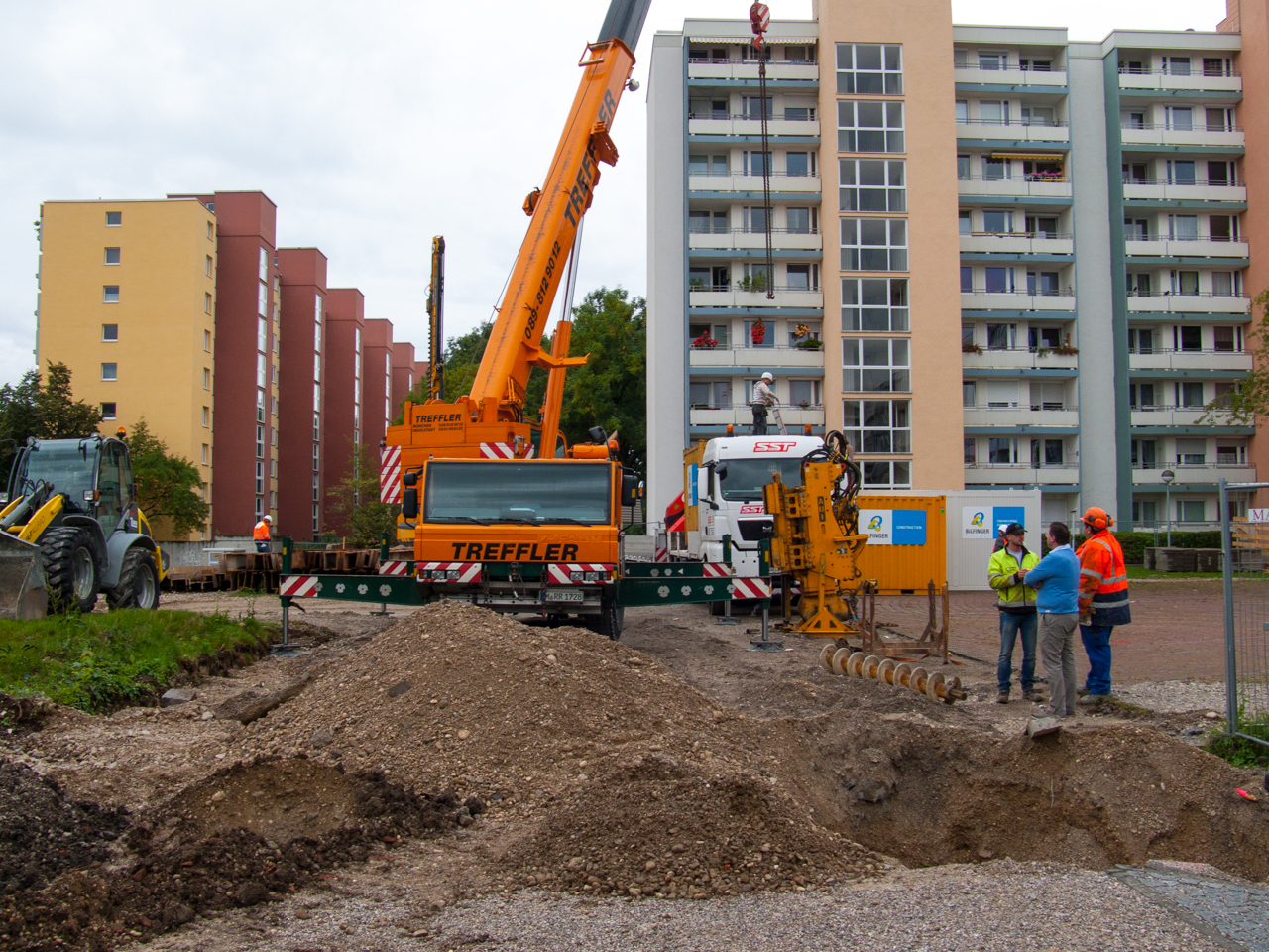 HIER AUF DEN FOTOS IST NOCH UNSERE SCHÖNE SONNENUHR ZUSEHEN, WELCHE KURZE ZEIT DANACH IN DER TIEFGARAGE DER FIRMA Z. VERSCHWANDT. KEINER WUSSTE ZU DIESEM ZEITPUNKT, DASS SIE, ENTGEGEN GEMACHTER ZU- UND AUSSAGEN, NICHT MEHR AUFGESTELLT WIRD. GUT EINGEPACKT KANN MAN DIE STEINE BEI Z. BESICHTIGEN. DIE VORBEREITUNGEN FÜR DEN AUSHUB DER BAUGRUBE BEGINNEN. MIT GROSSEN BOHRMASCHINEN WERDEN LÖCHER FÜR DIE SPUNDWÄNDE GEBOHRT.