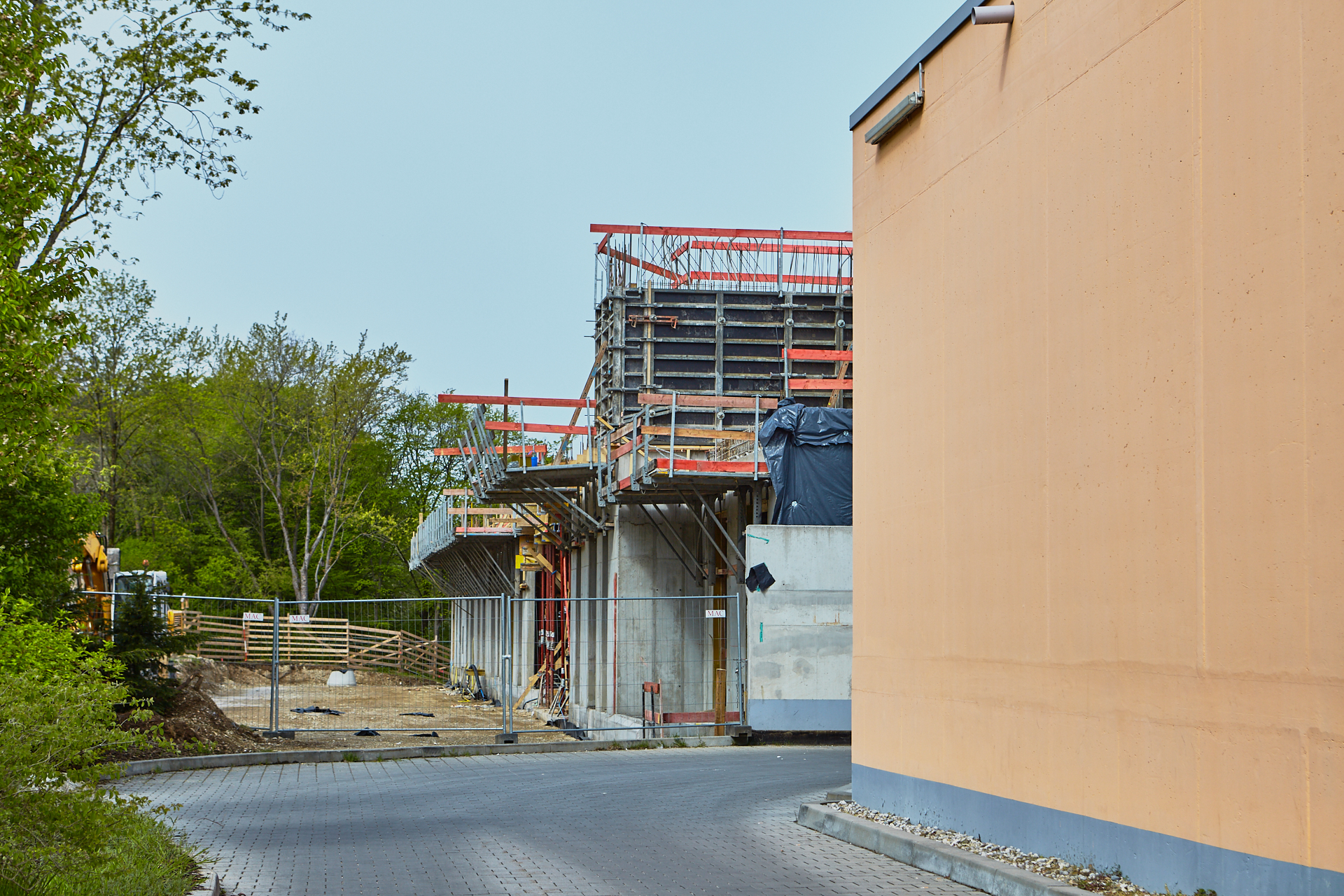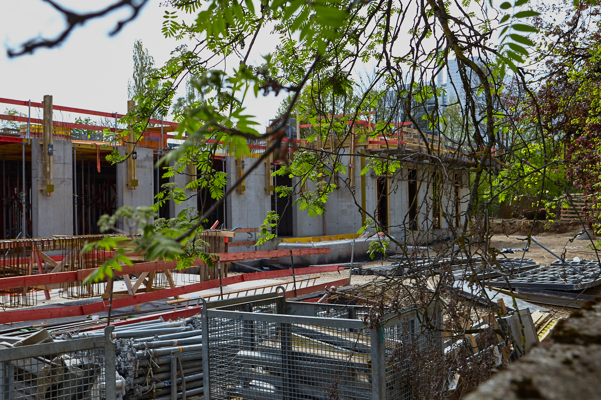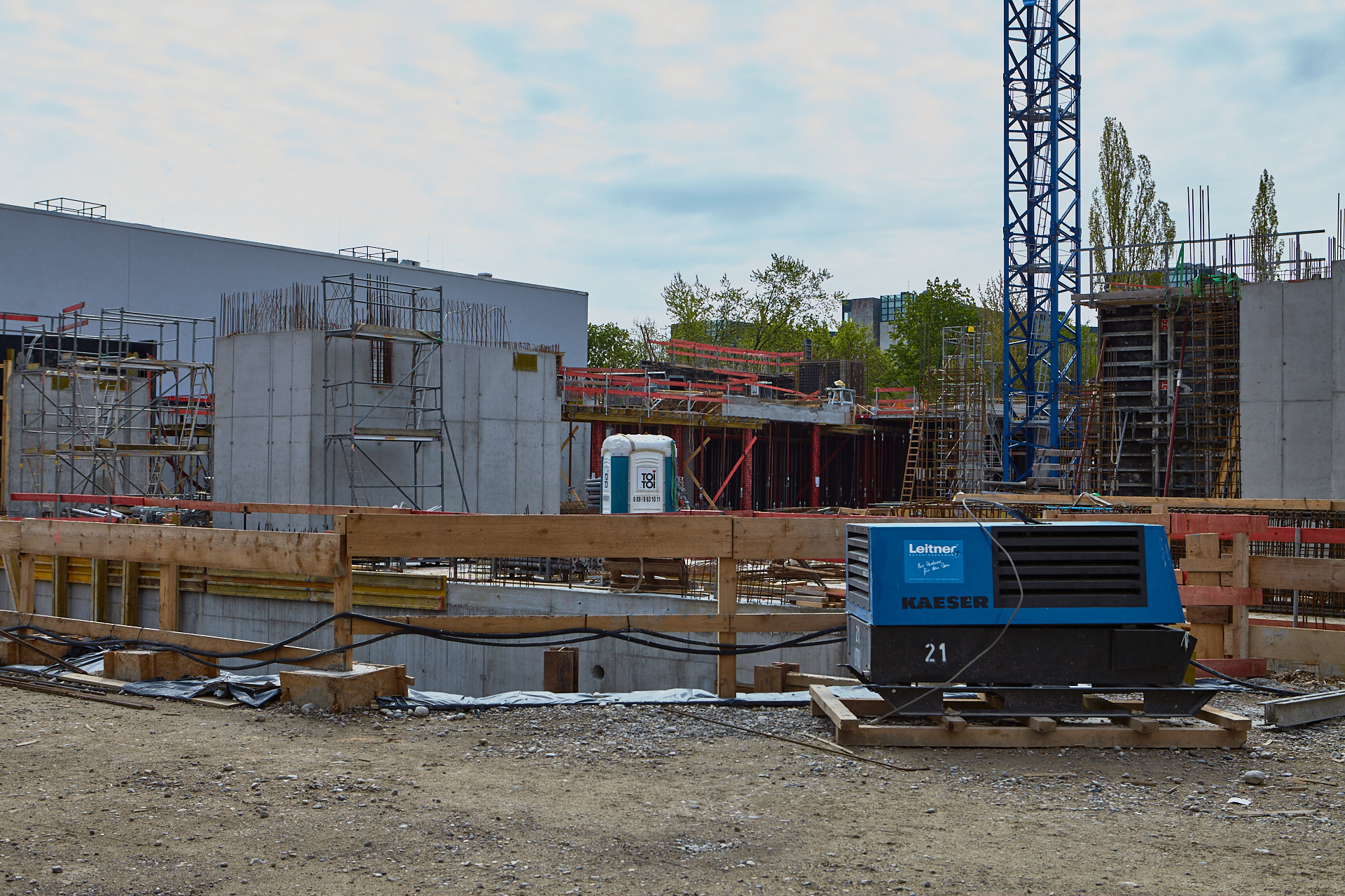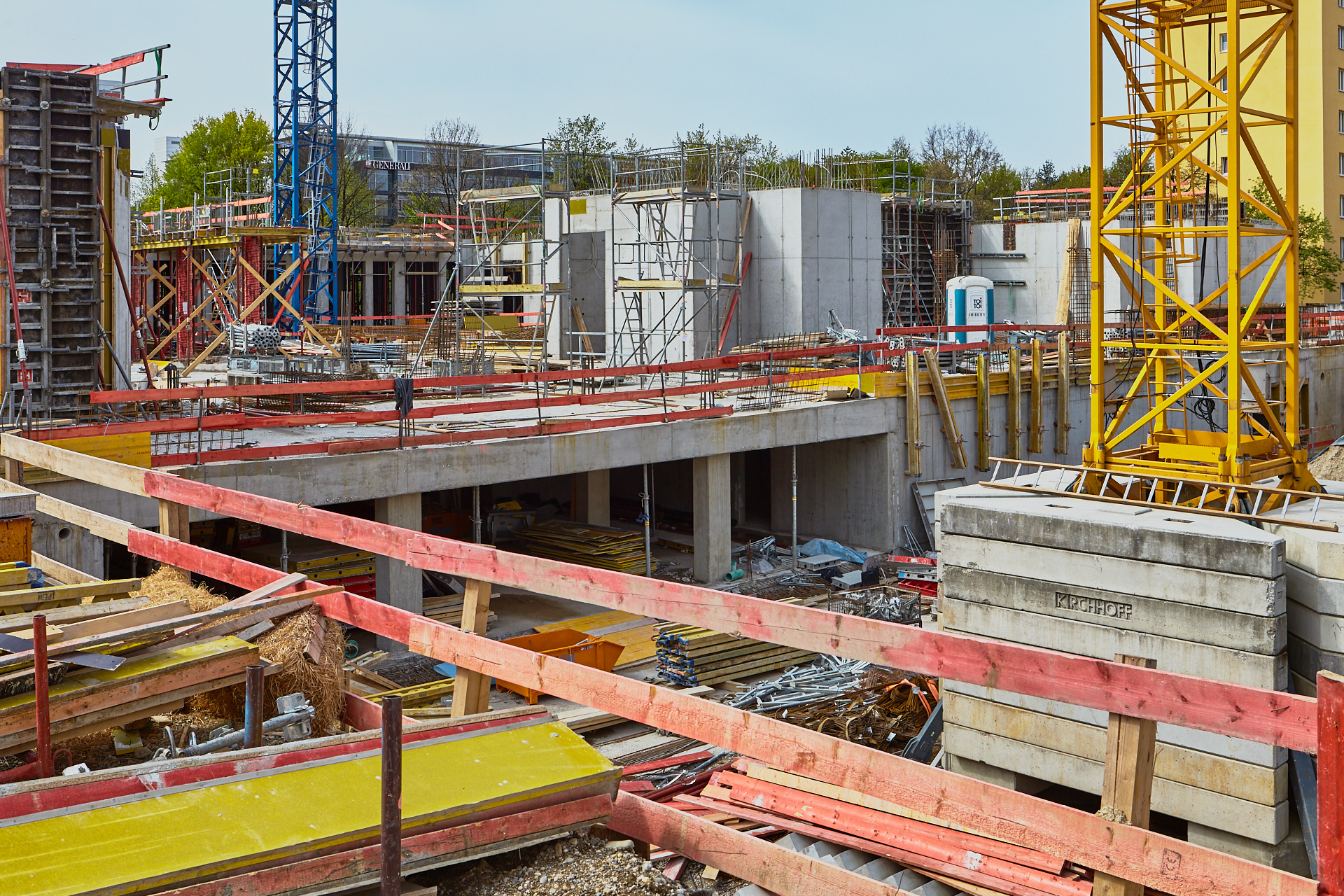Der Keller und das Erdgeschoß des neuen LAO-Hauses werden gerade bearbeitet. Die Baustelle zum neuen LAO-HAUS, Leben am Ostpark, mit moderner Architektur und urbaner Gestaltung. Langsam wachsen die Wände am zukünftigen Wohn- und Geschäftsgebäude LAO-HAUS.