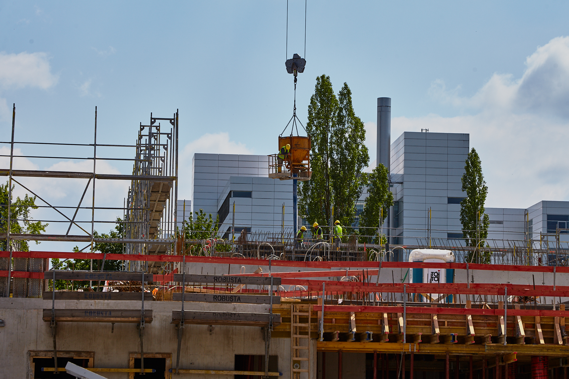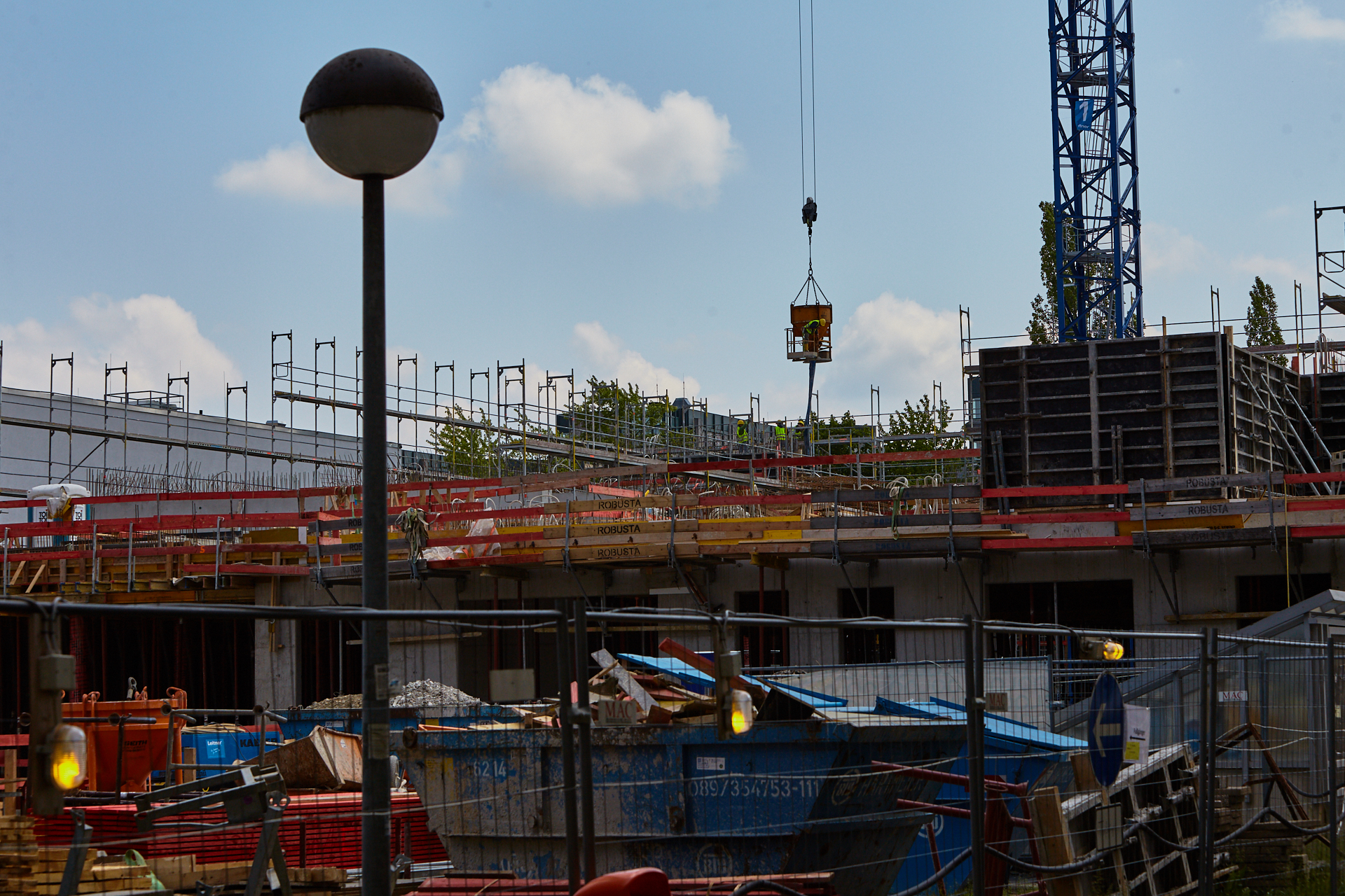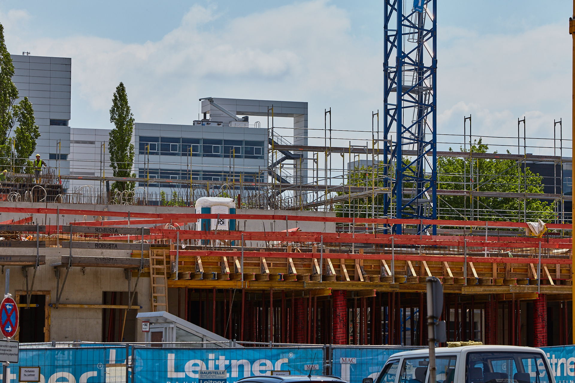 Die Baustelle zum neuen LAO-HAUS, Leben am Ostpark, mit moderner Architektur und urbaner Gestaltung. Die Bausetelle LAO-HAUS zeigt immer mehr, wie das fertige Gebäude aussehen wird.