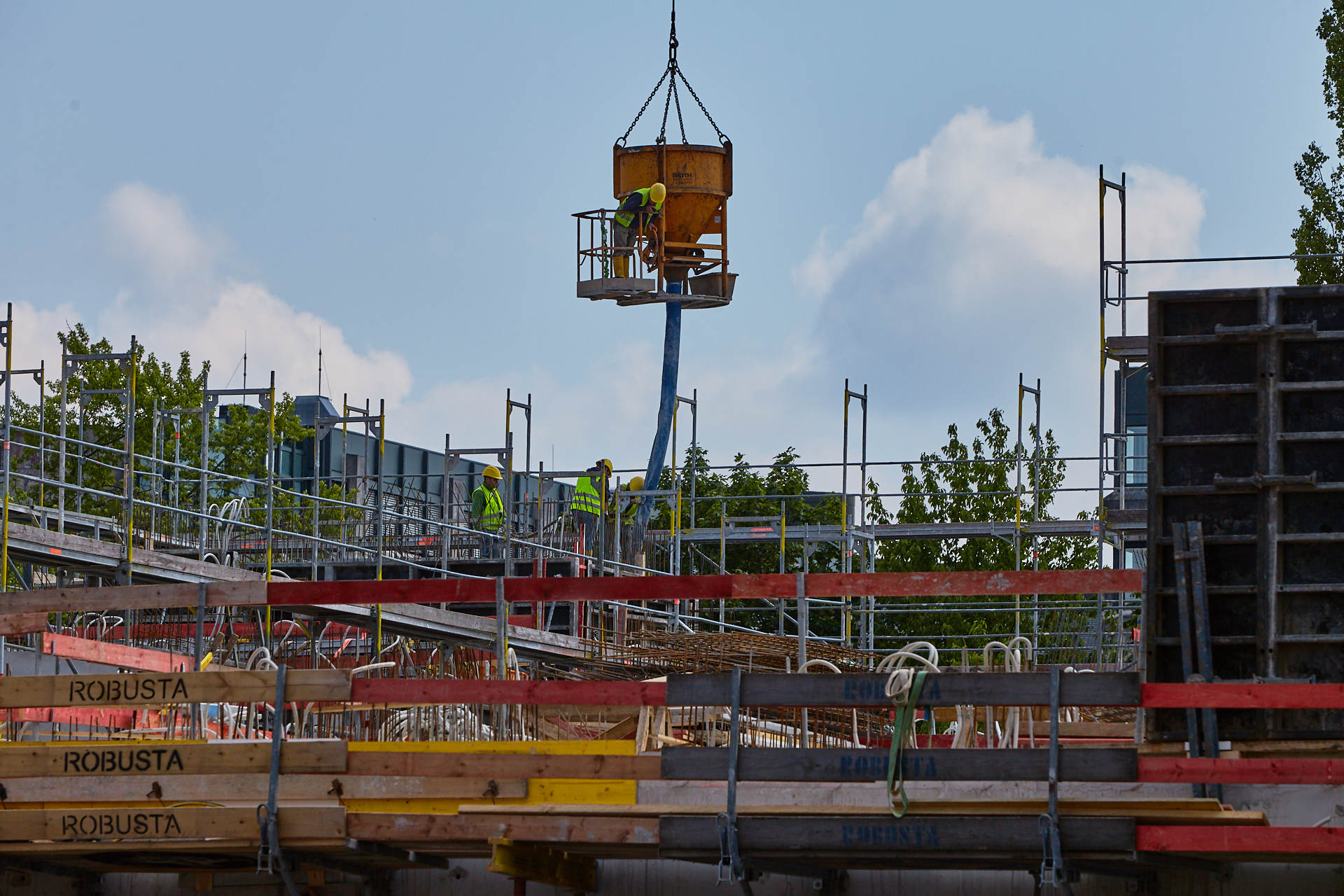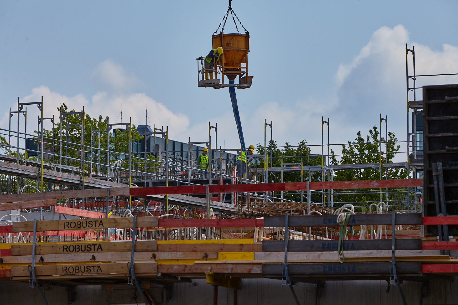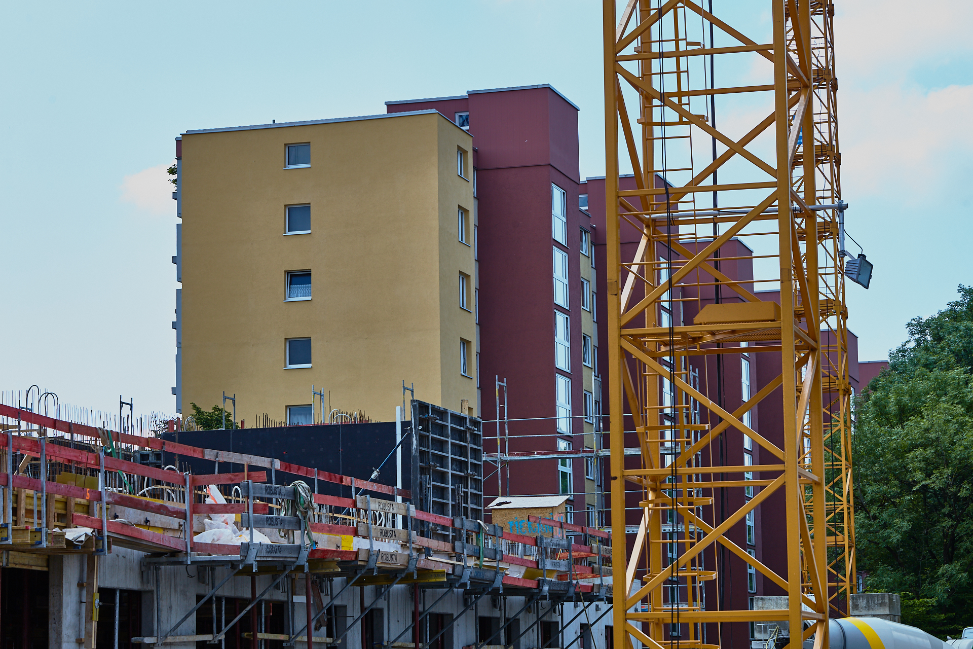 Die Baustelle zum neuen LAO-HAUS, Leben am Ostpark, mit moderner Architektur und urbaner Gestaltung. Die Bausetelle LAO-HAUS zeigt immer mehr, wie das fertige Gebäude aussehen wird.