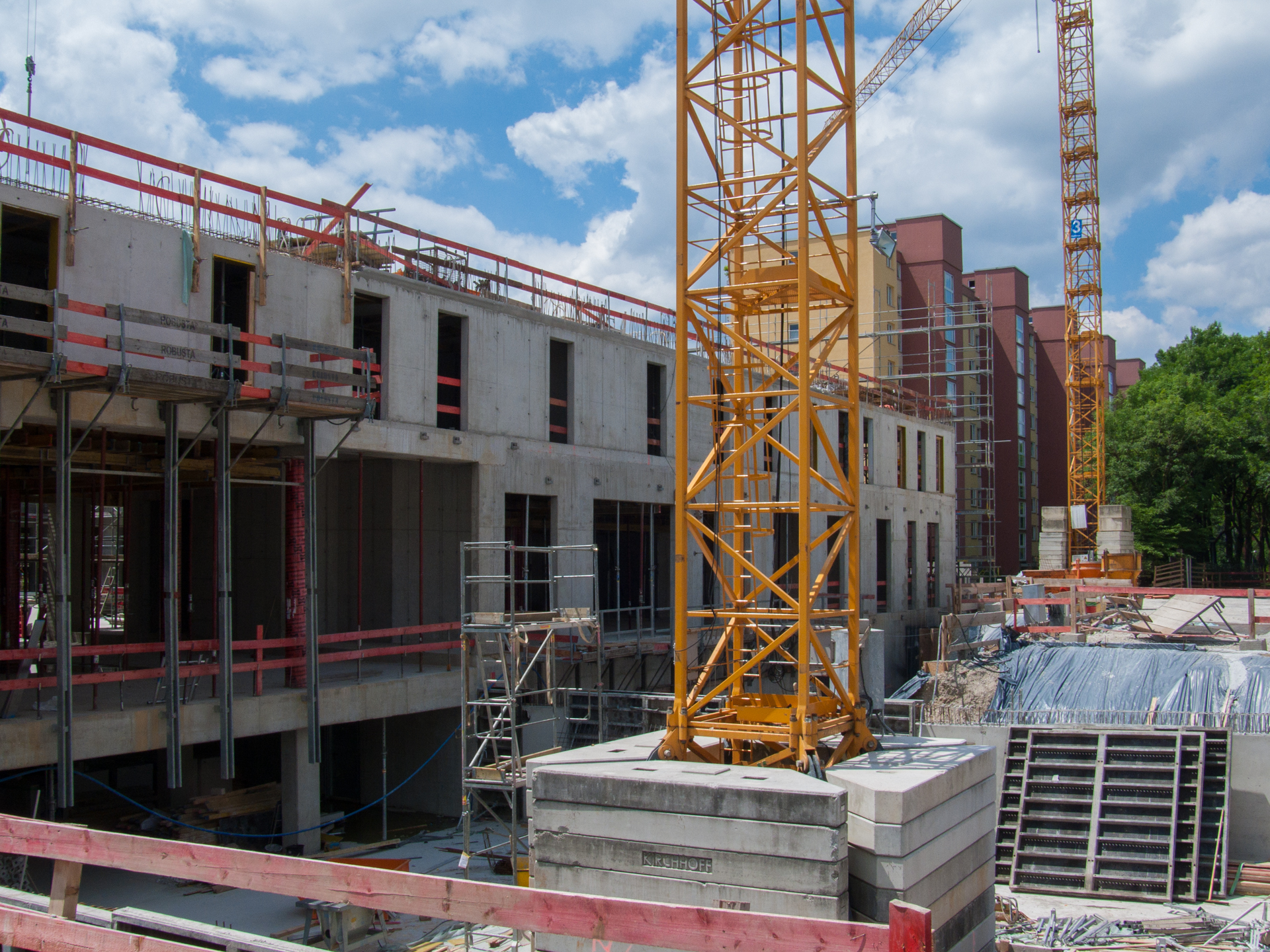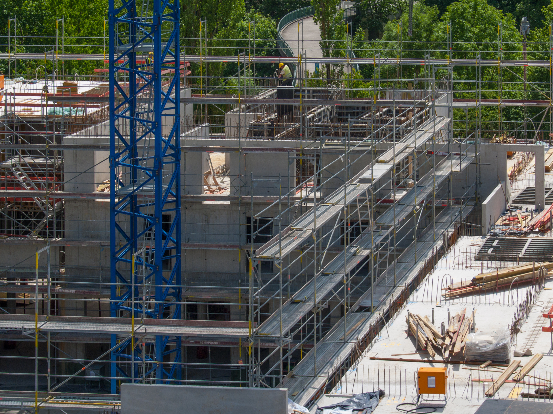 Die Baustelle zum neuen LAO-HAUS, Leben am Ostpark, mit moderner Architektur und urbaner Gestaltung. Die Bausetelle LAO-HAUS zeigt immer mehr, wie das fertige Gebäude aussehen wird.