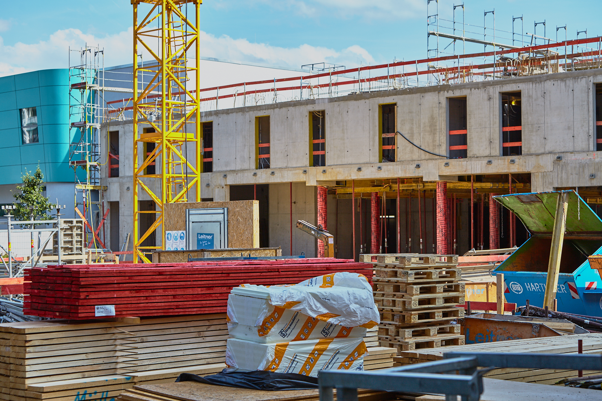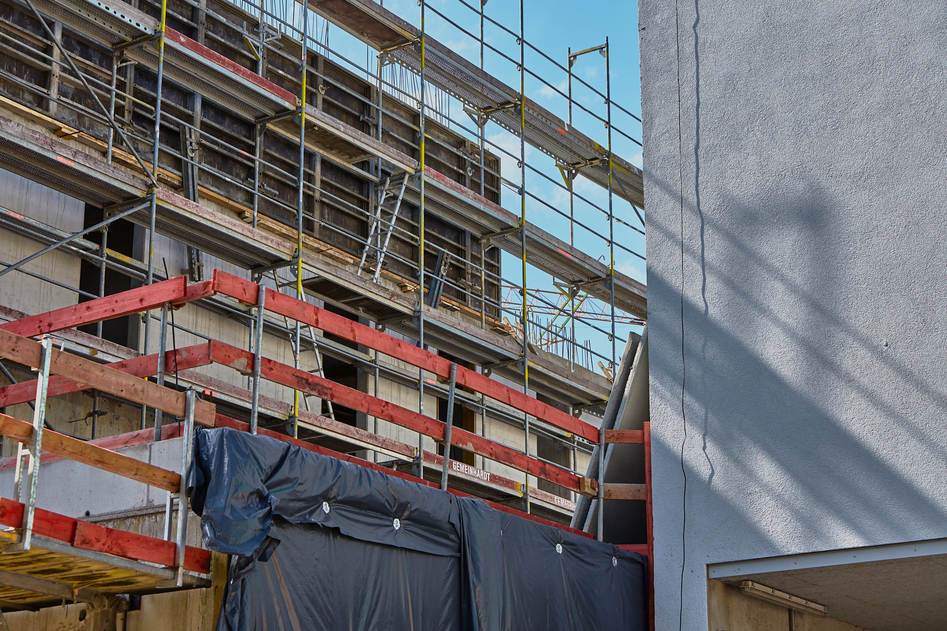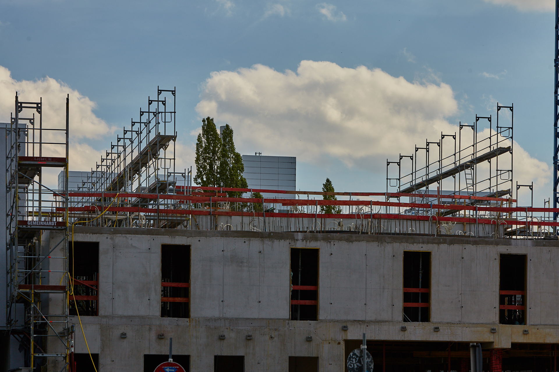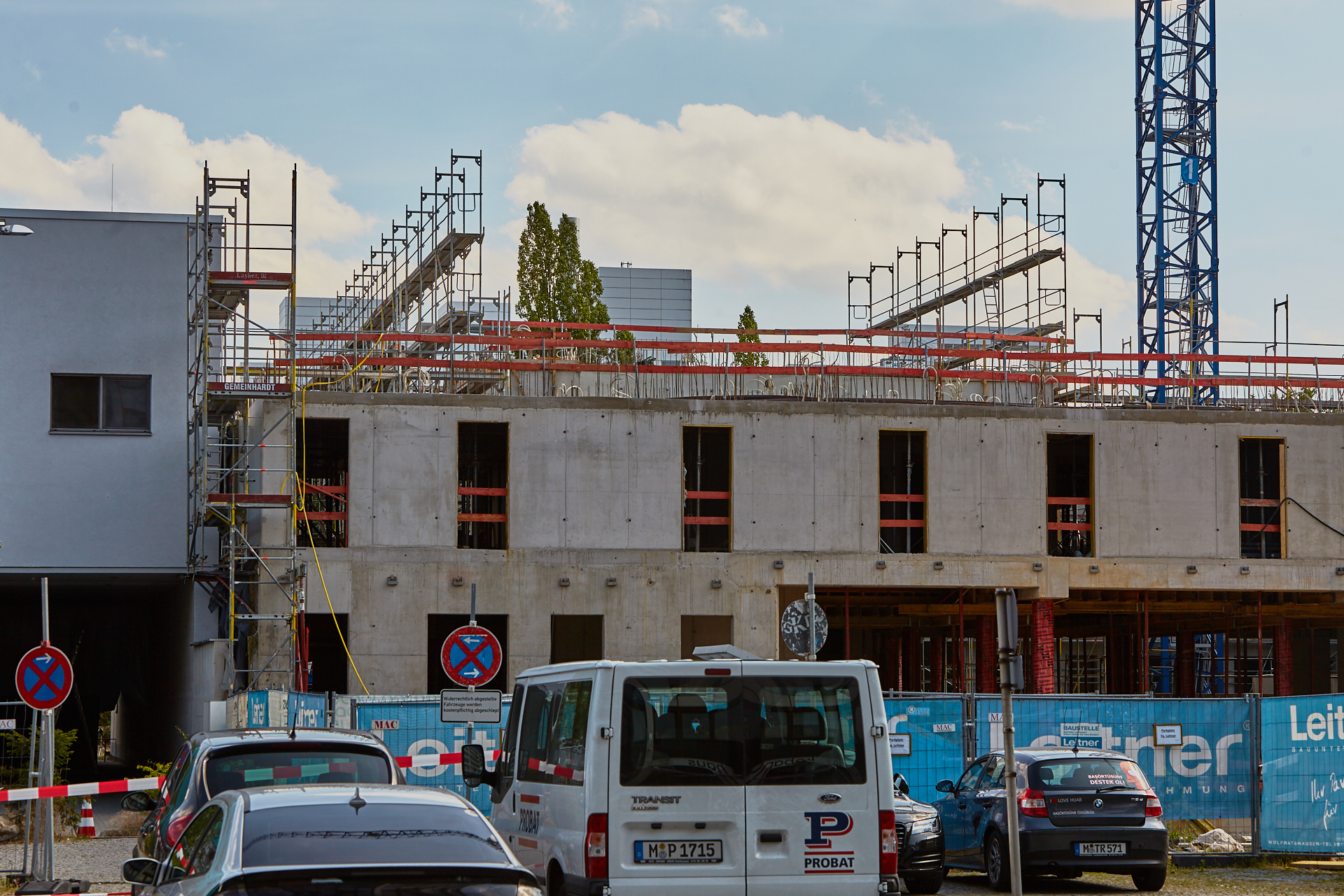 Die Baustelle zum neuen LAO-HAUS, Leben am Ostpark, mit moderner Architektur und urbaner Gestaltung. Die Bausetelle LAO-HAUS zeigt immer mehr, wie das fertige Gebäude aussehen wird.