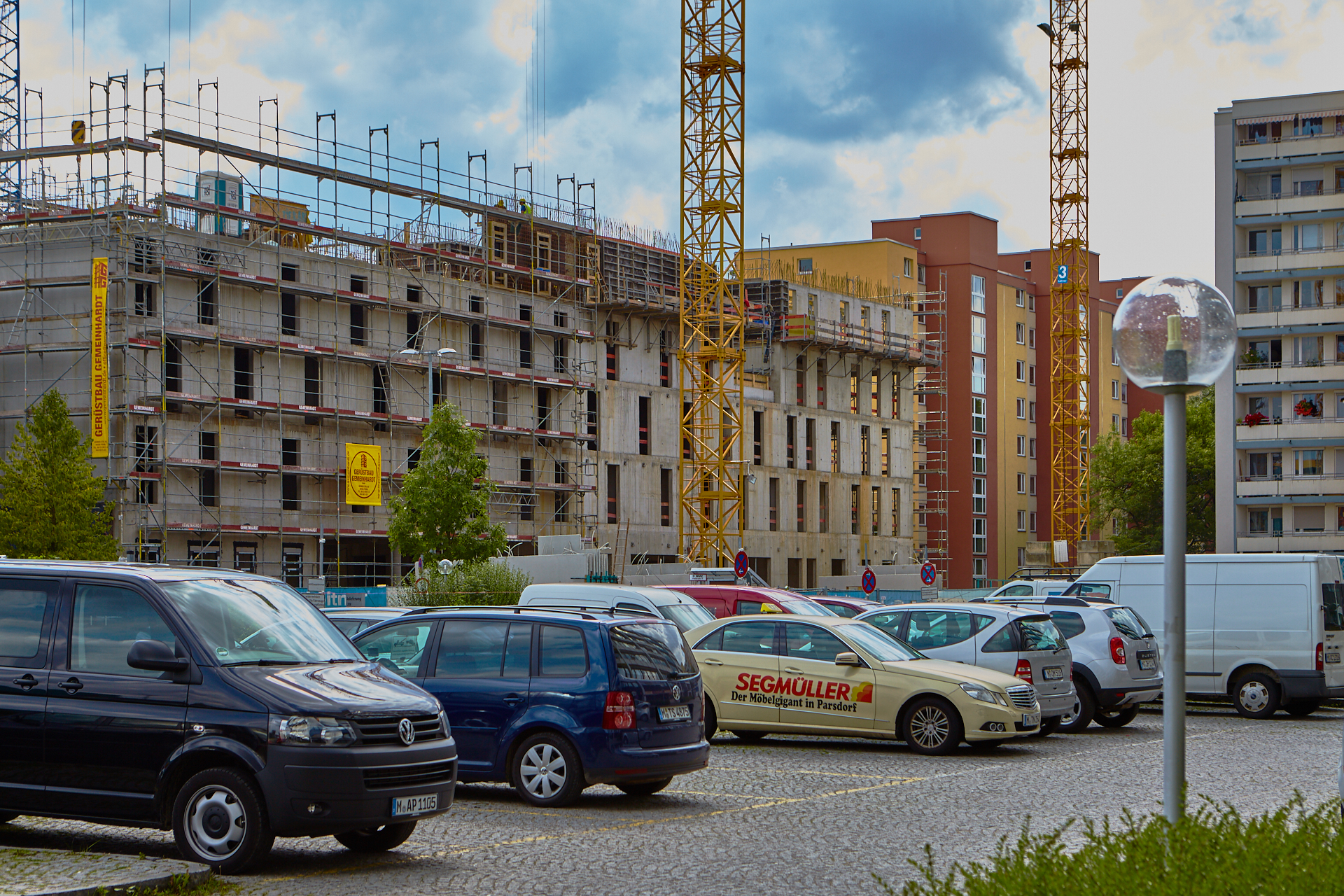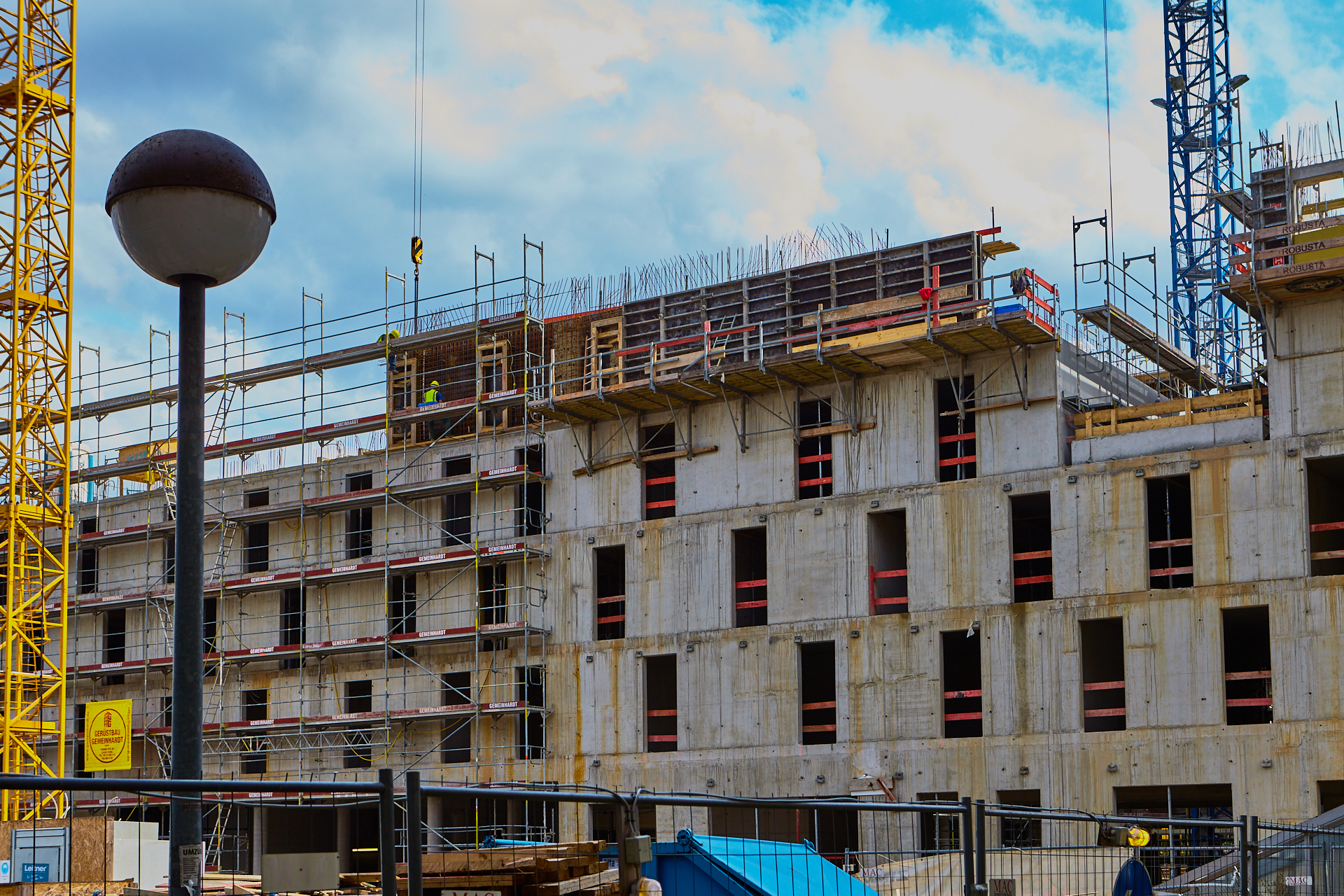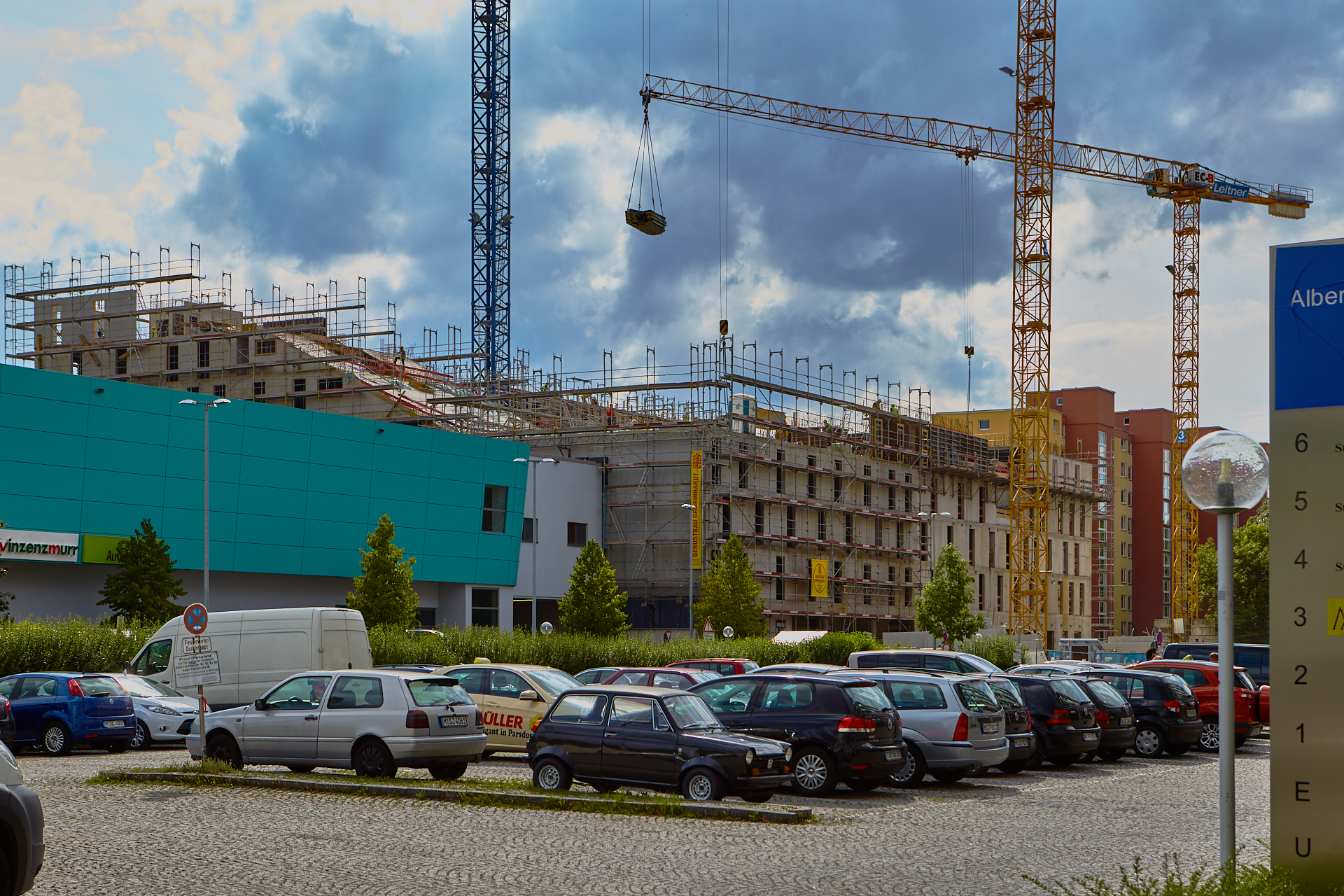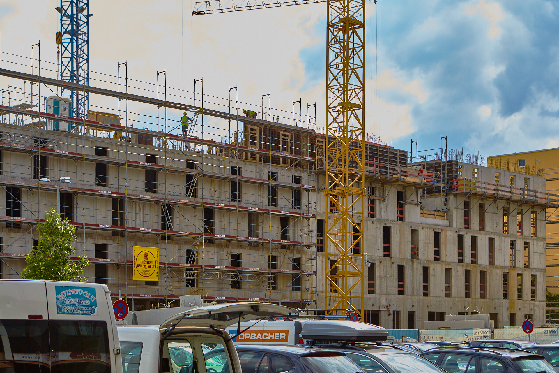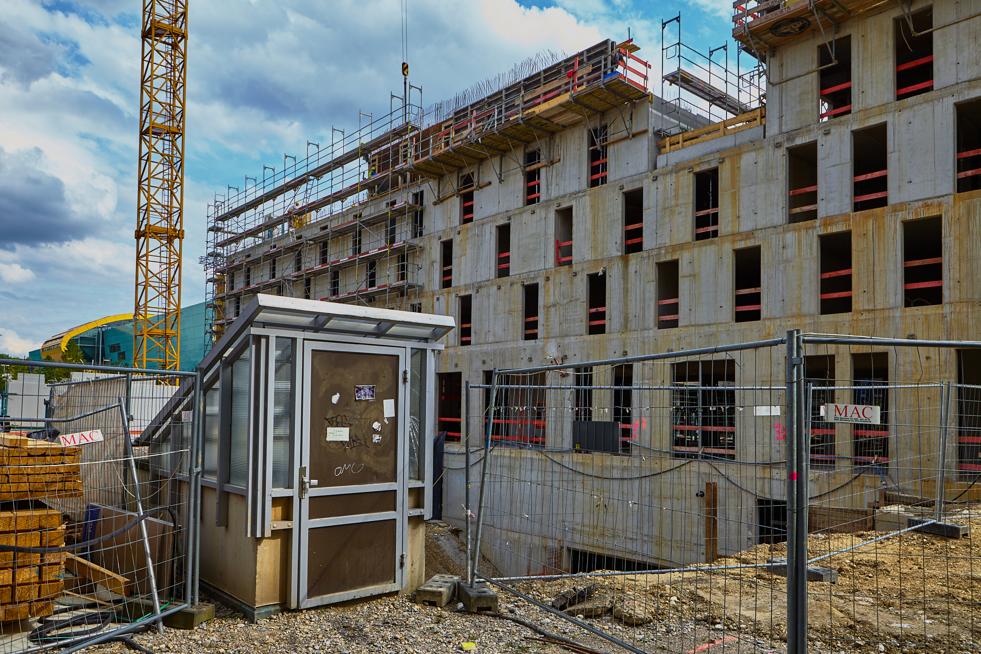 Die Baustelle zum neuen LAO-HAUS, Leben am Ostpark, mit moderner Architektur und urbaner Gestaltung. Die Bausetelle LAO-HAUS zeigt immer mehr, wie das fertige Gebäude aussehen wird.