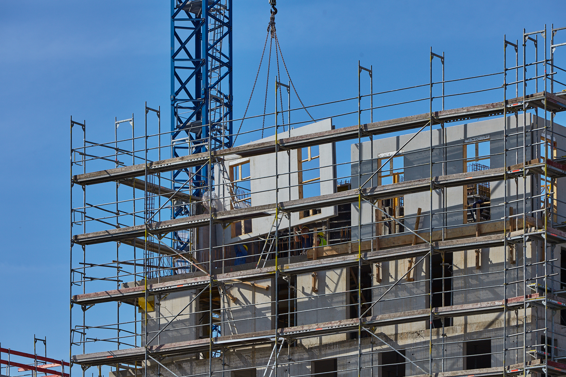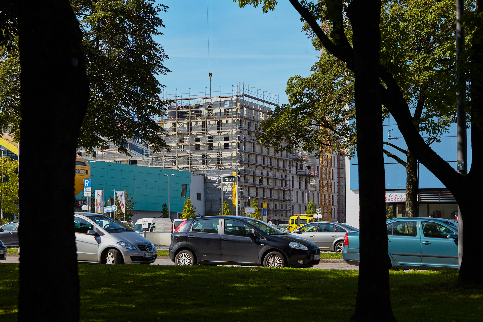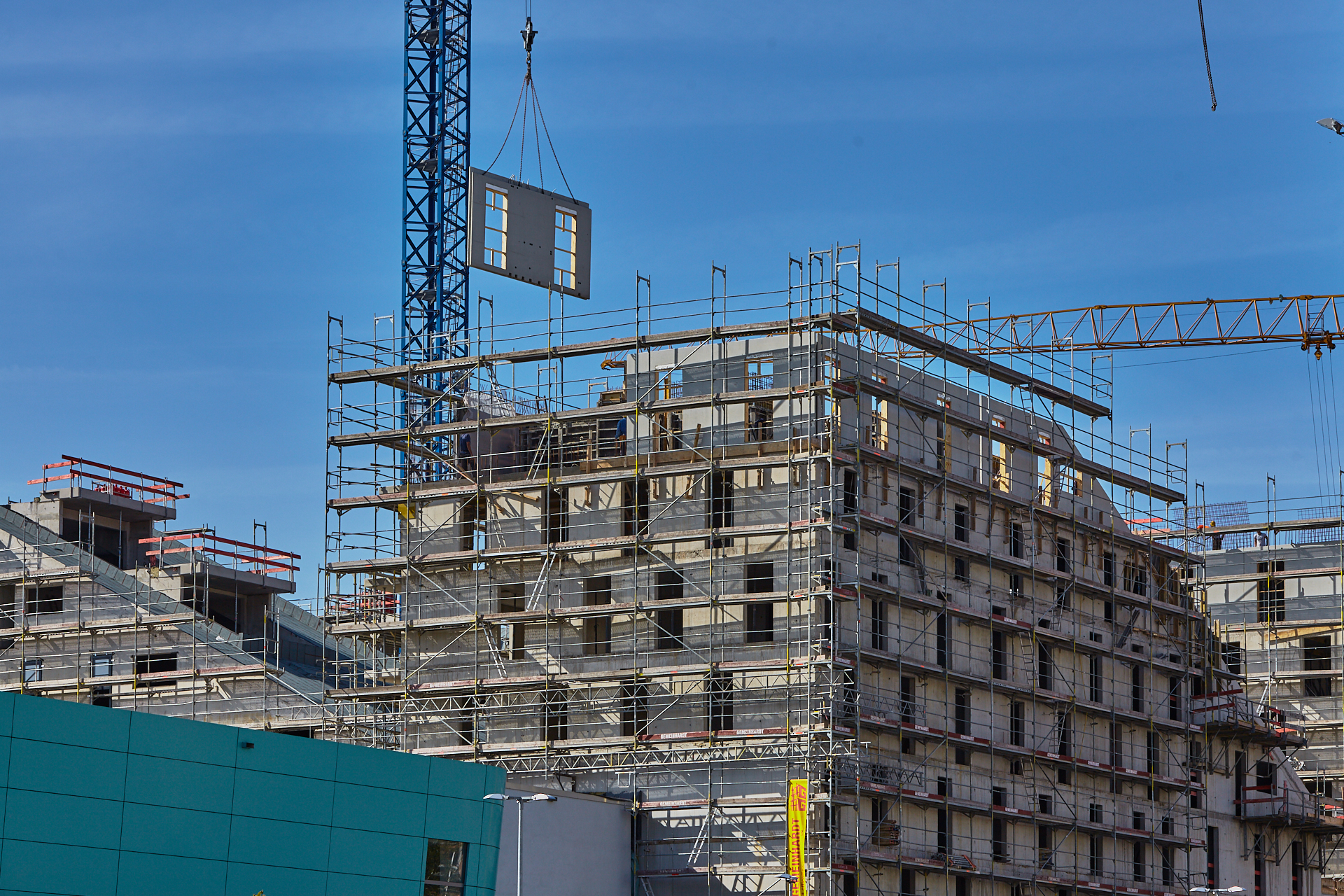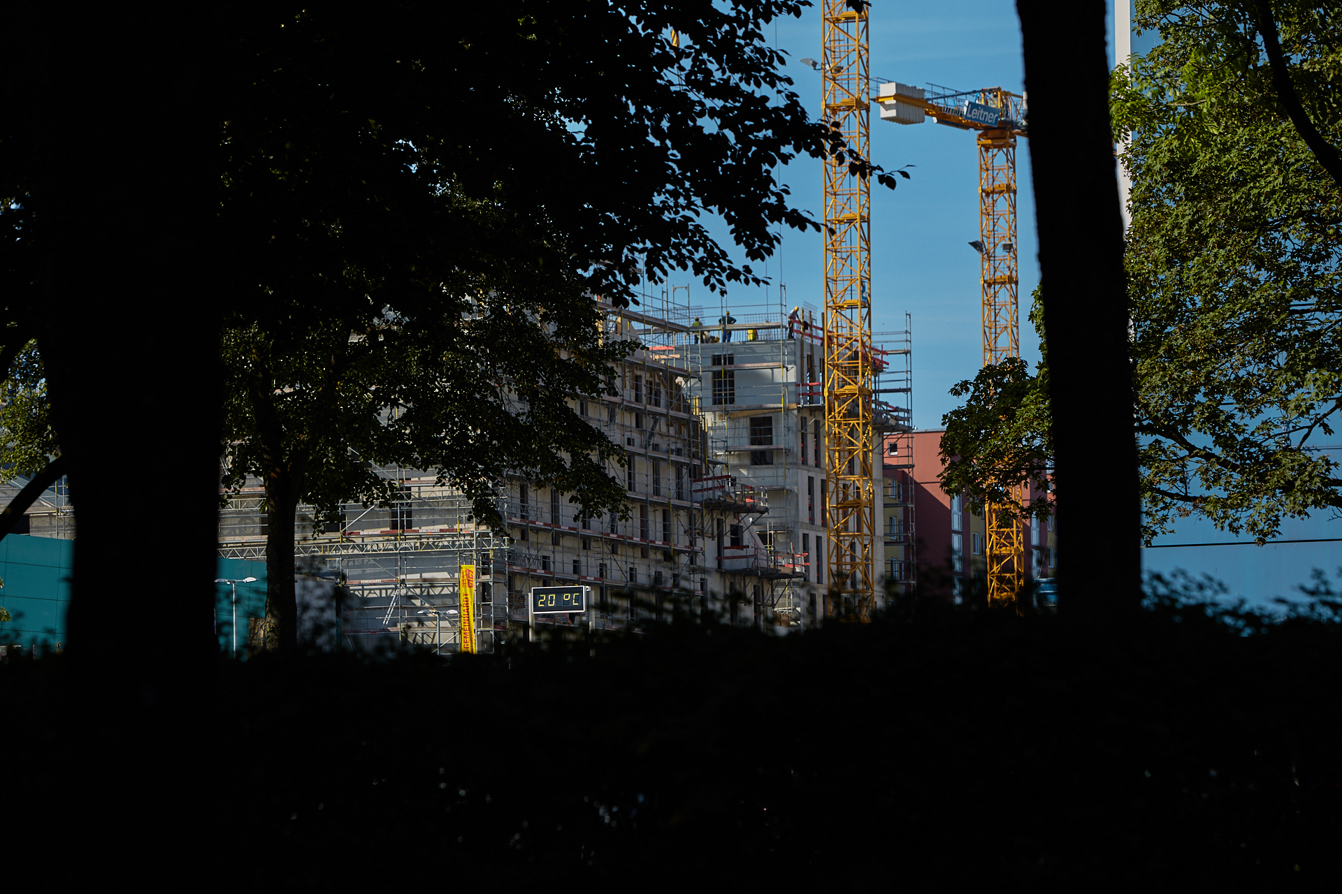 Der Rohbau an einigen der vier "Türmen" ist noch nicht abgeschlossen. Hier gehen die BAuarbeiten weiter. Die Bausetelle LAO-HAUS zeigt immer mehr, wie das fertige Gebäude aussehen wird.