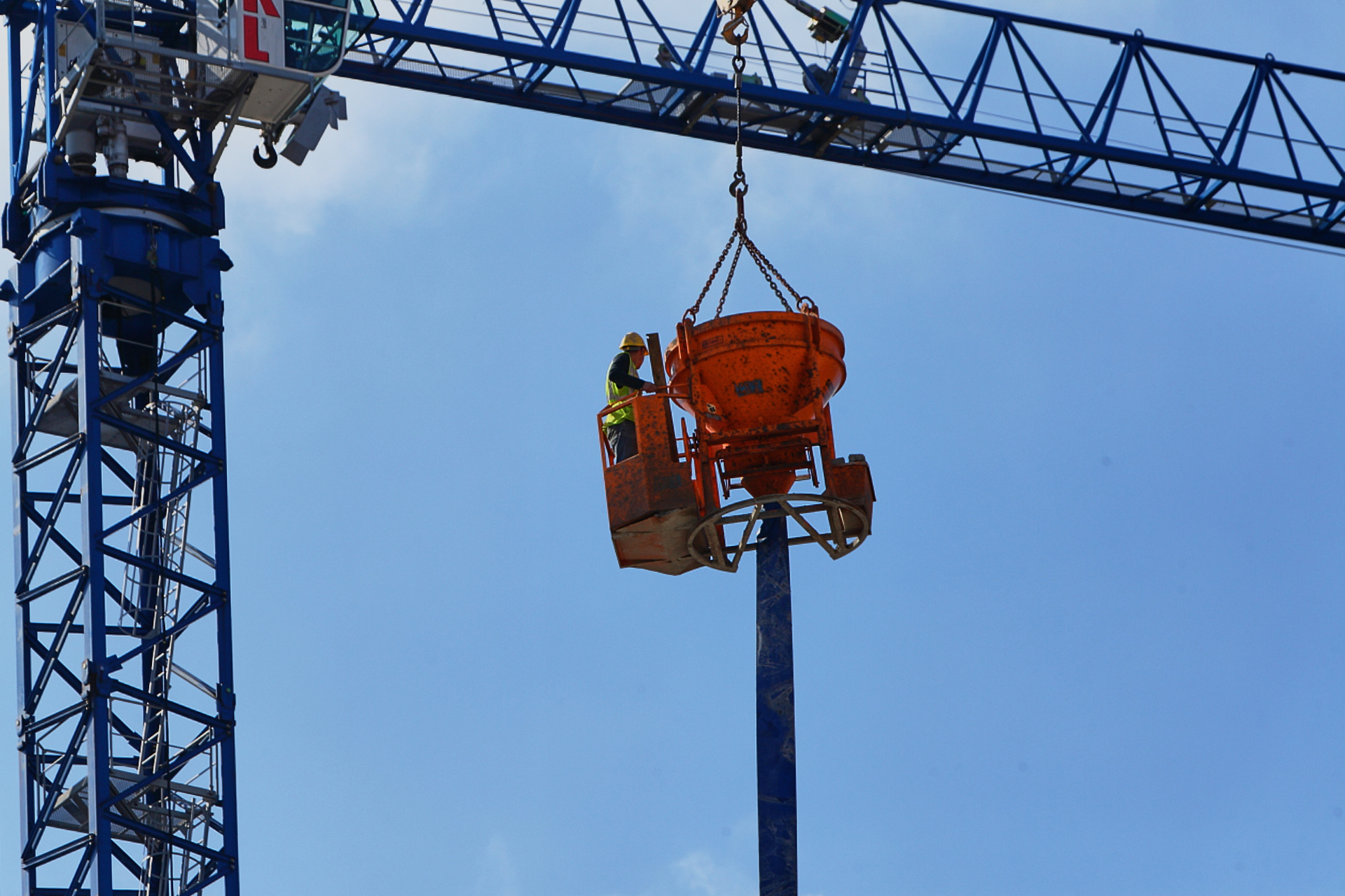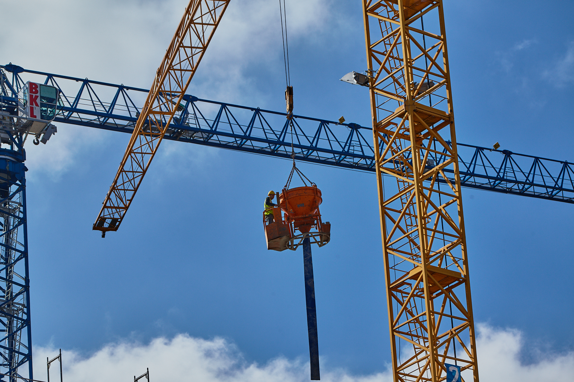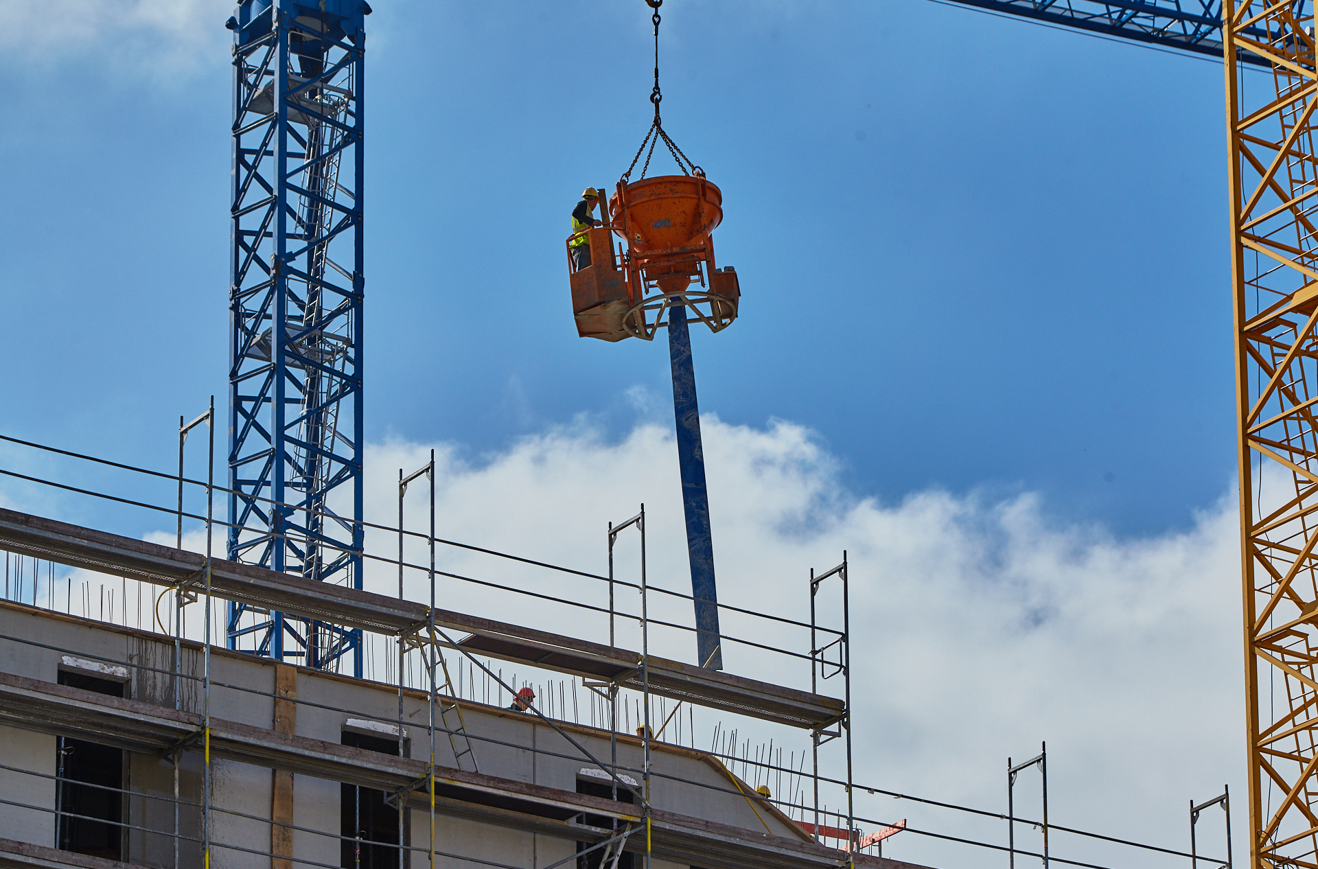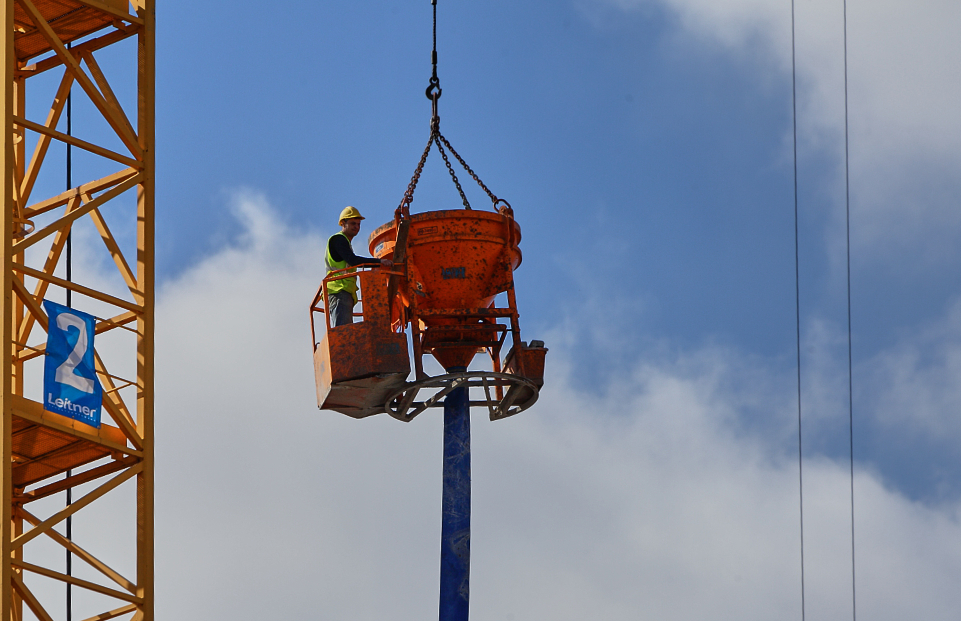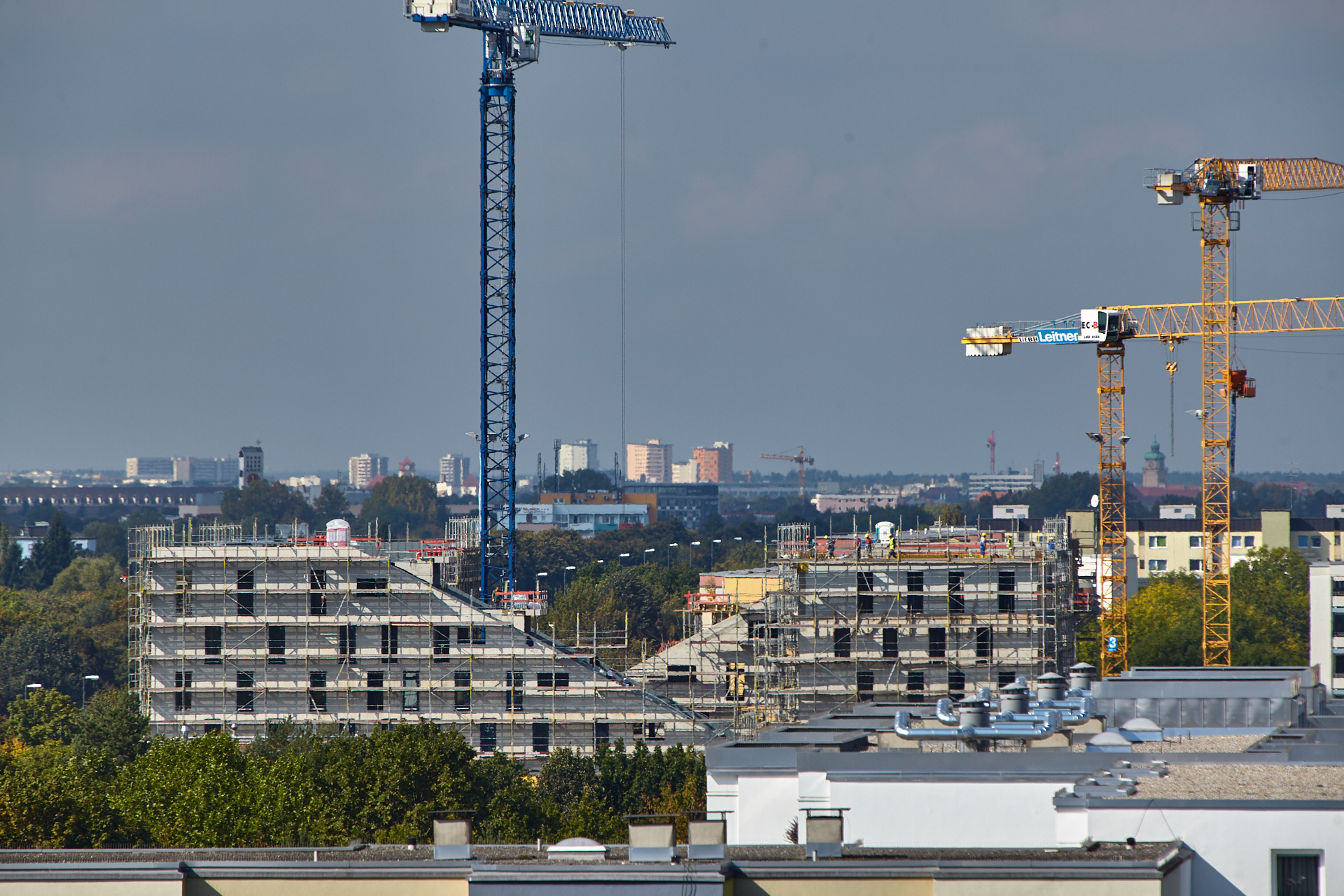 Teilweise ist die Baustelle am LAO-Haus mit einem Gerüst ummantelt. Die anderen Teile sind noch im Rohbau.