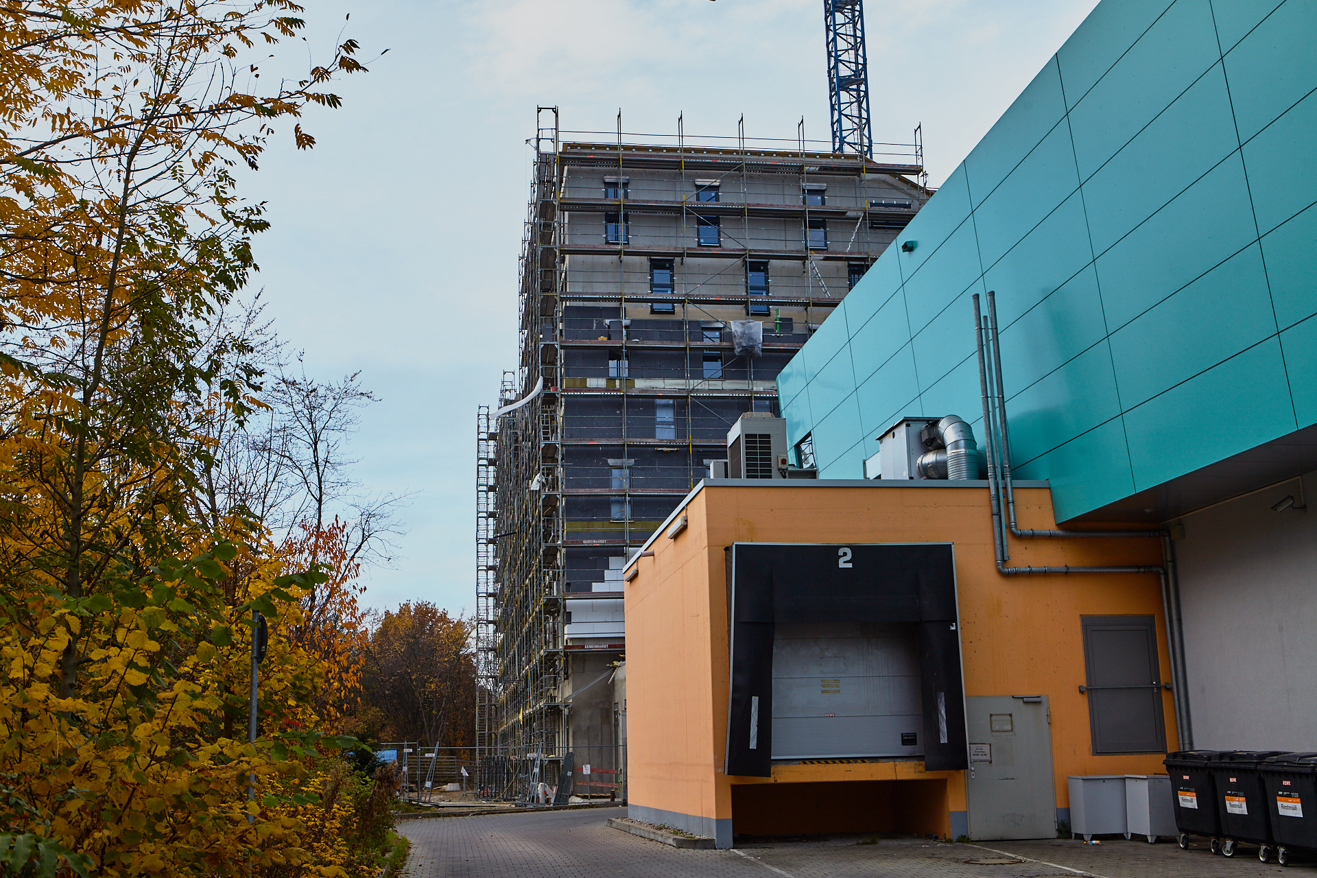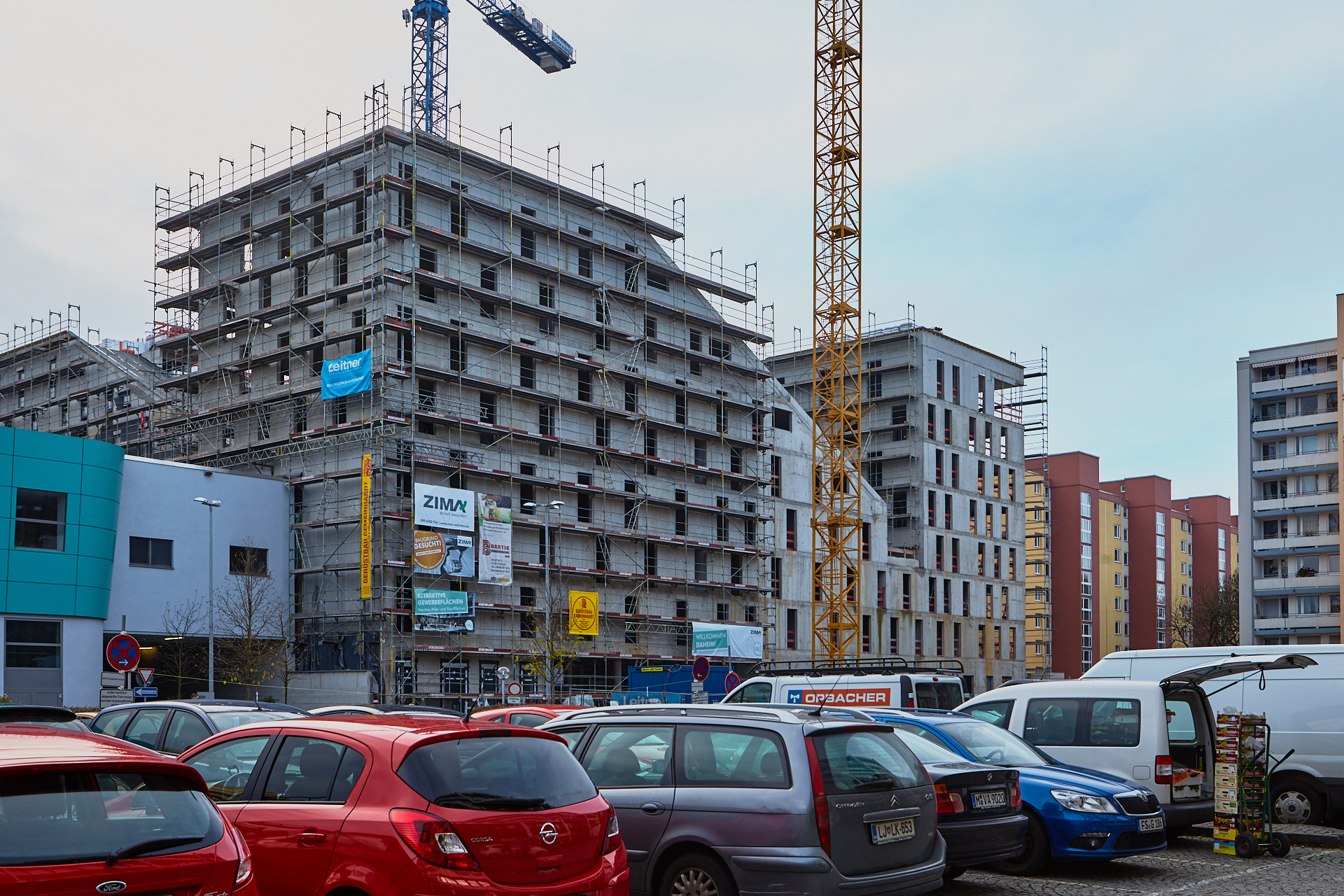 Neuperlach - Baustelle LAO-Haus mit Gerüst 11.11.2014
