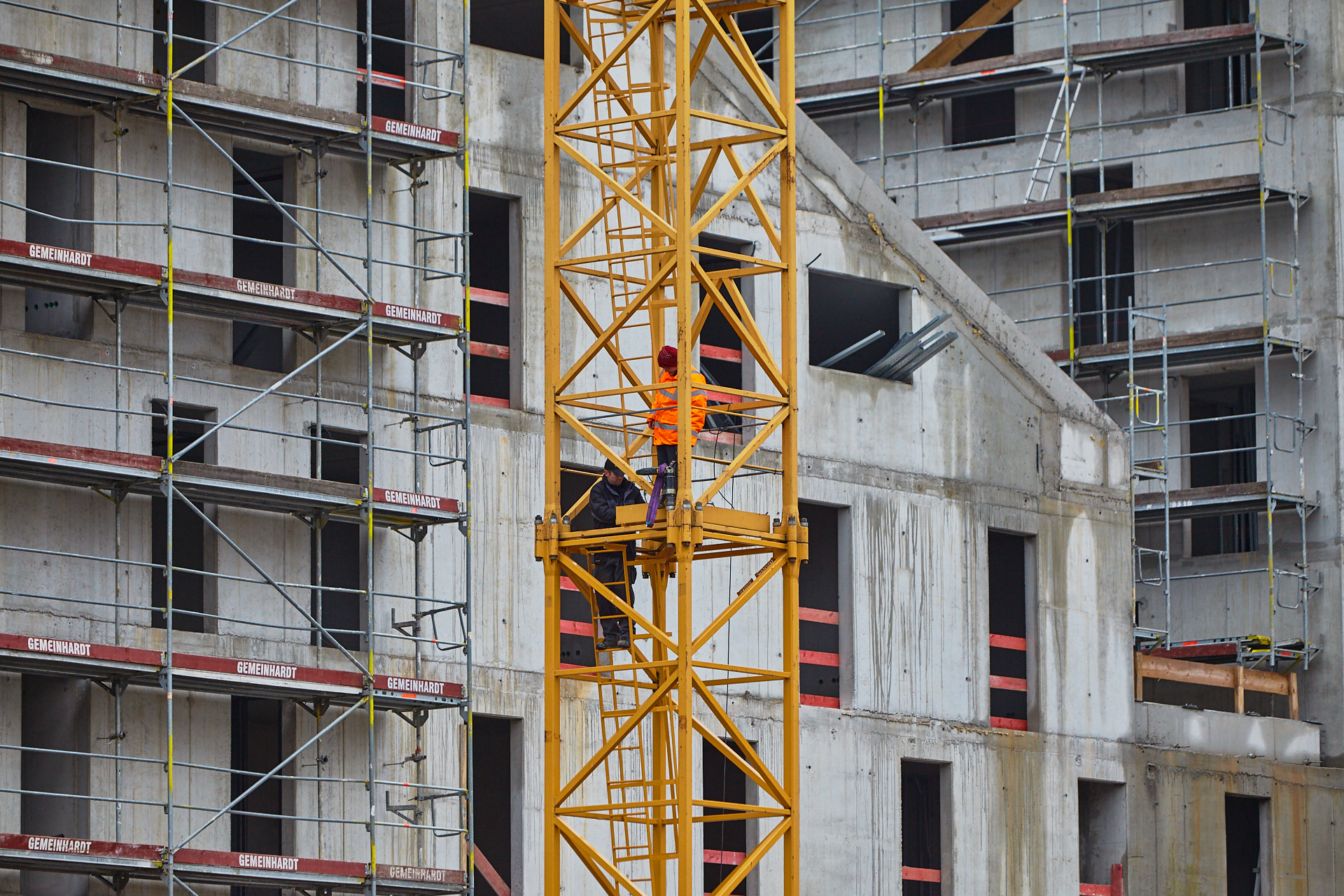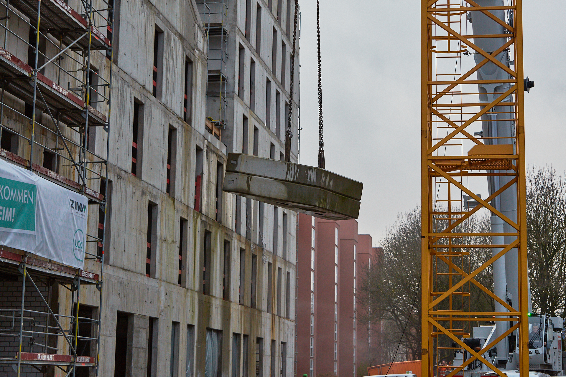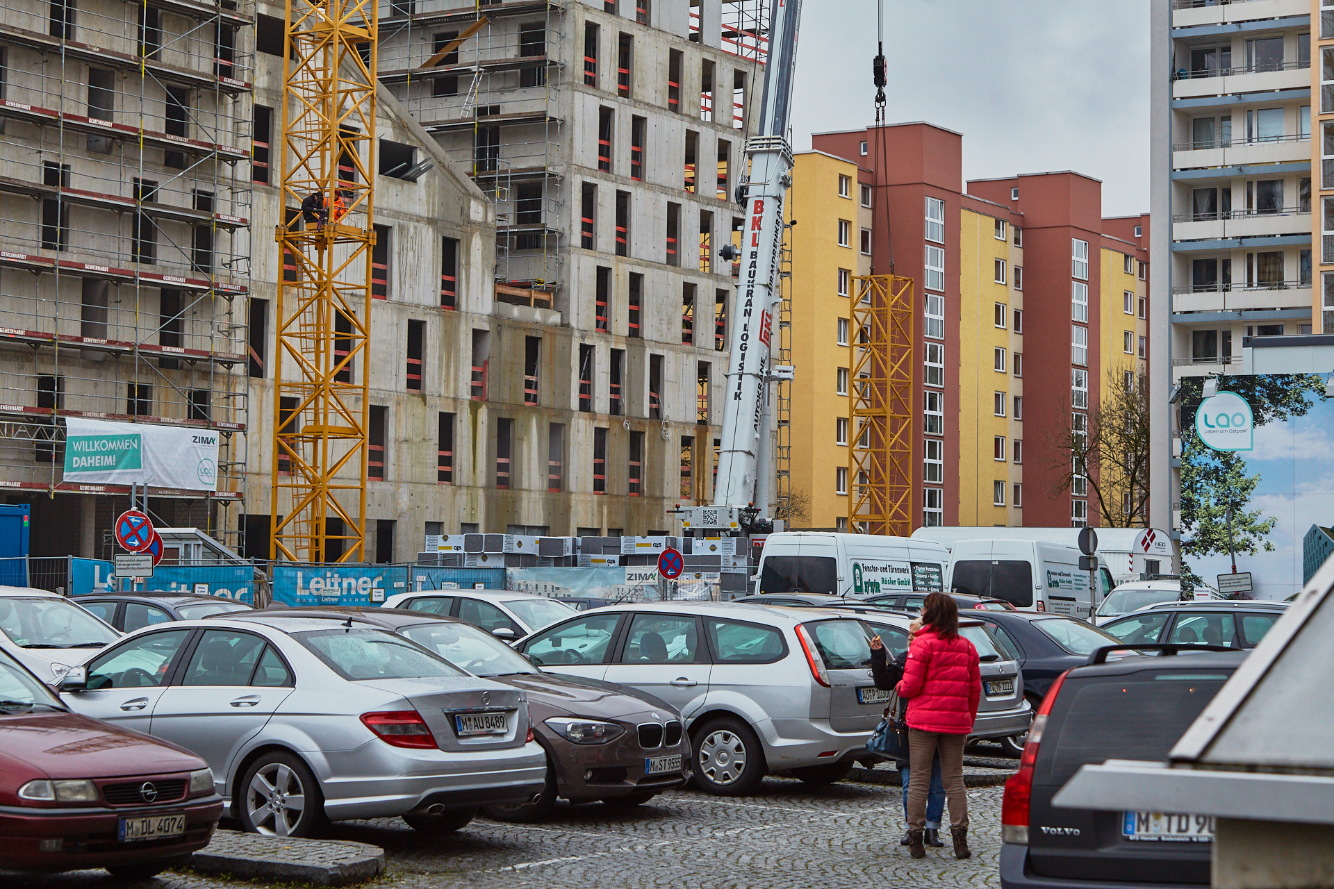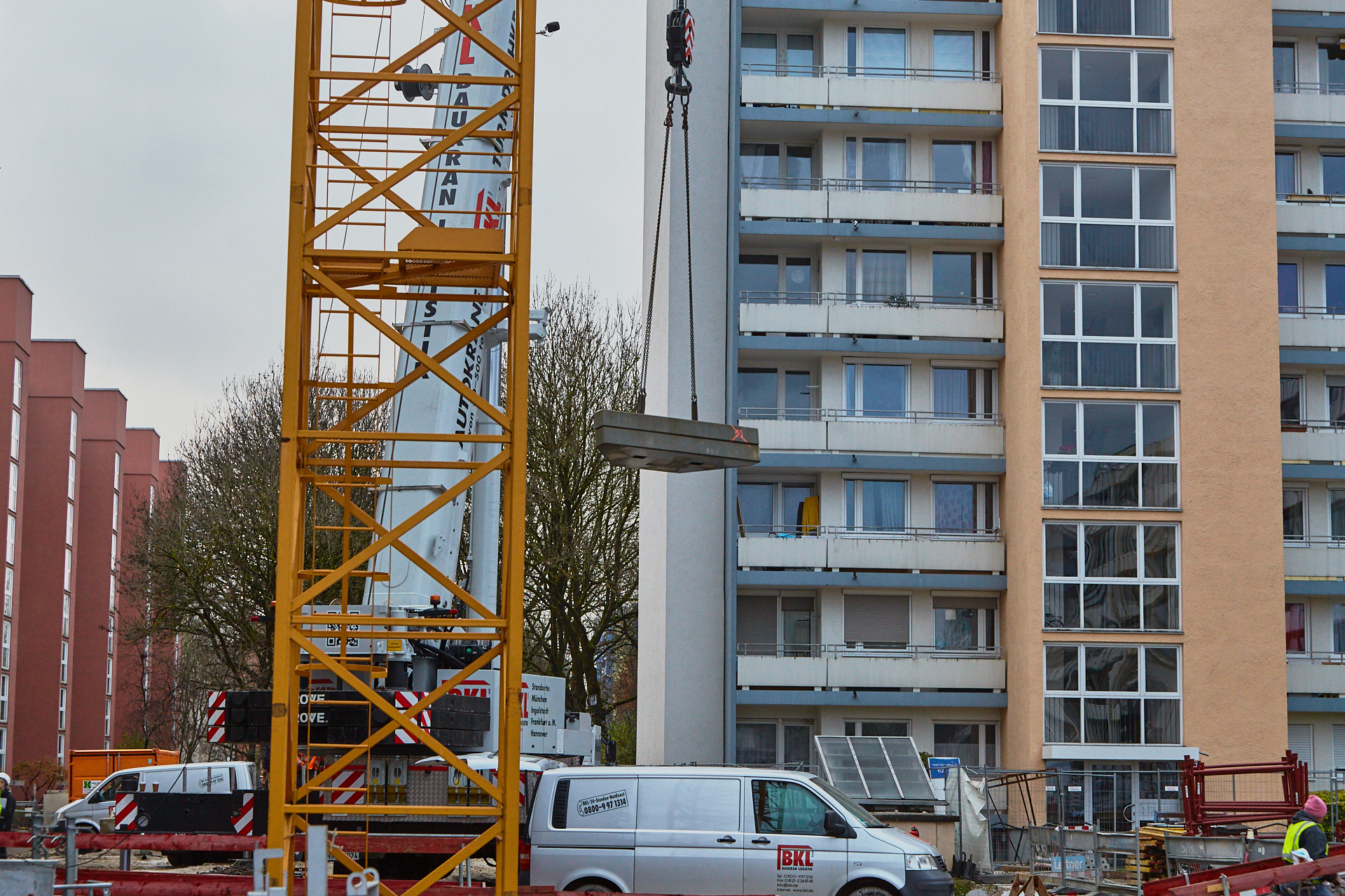 Heute wird der zweite Kran an der Baustelle LAO-HAUS abgebaut. Ein Zeichen, dass eine Bauphase zu Ende geht. Die Baustelle am LAO-Haus ist immer noch mit einem Gerüst ummantelt. Die Außenwände werden mit dicken Isoliermatten gegen Kälte gedämmt. Die Bauarbeiten gehen auf volle Touren weiter