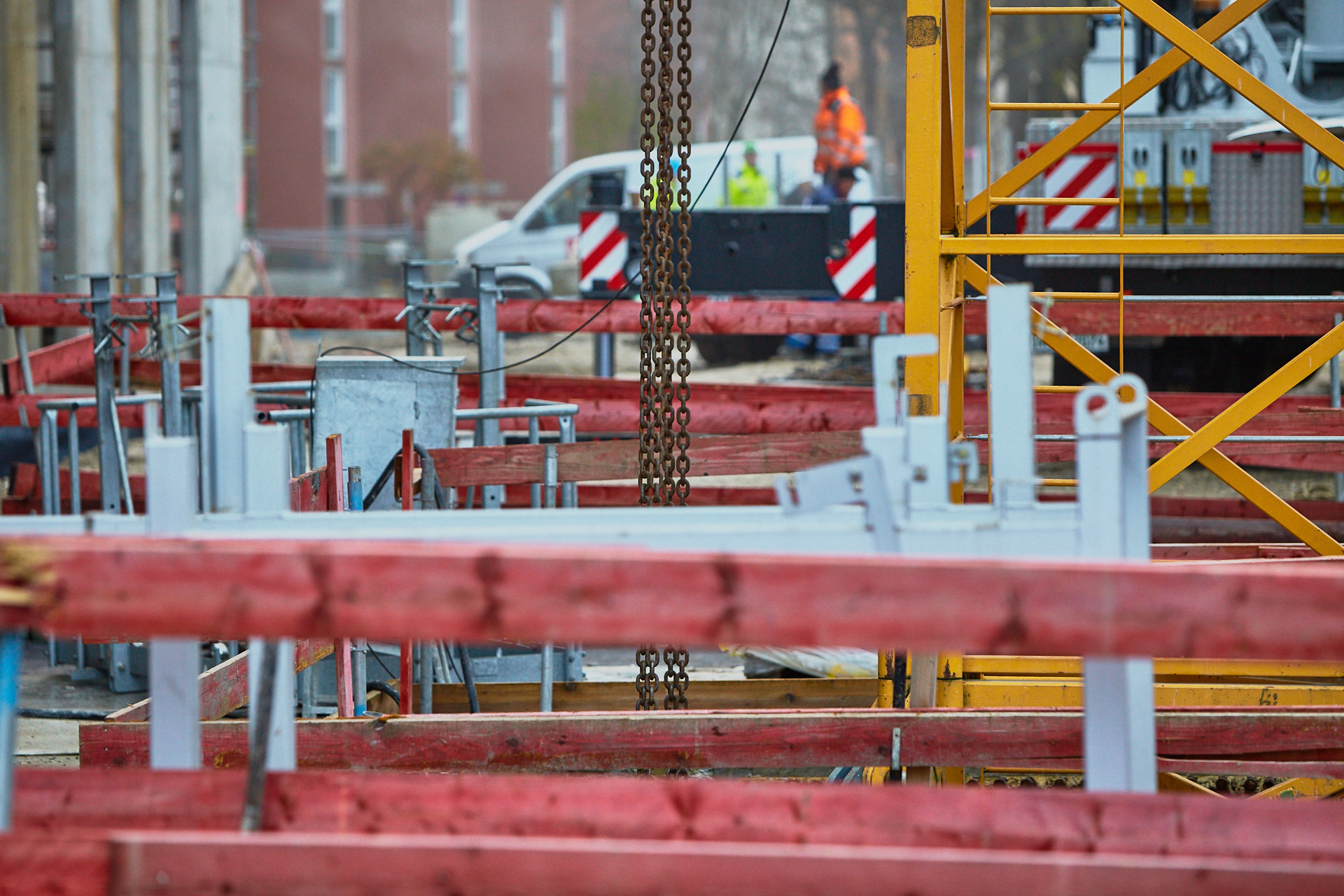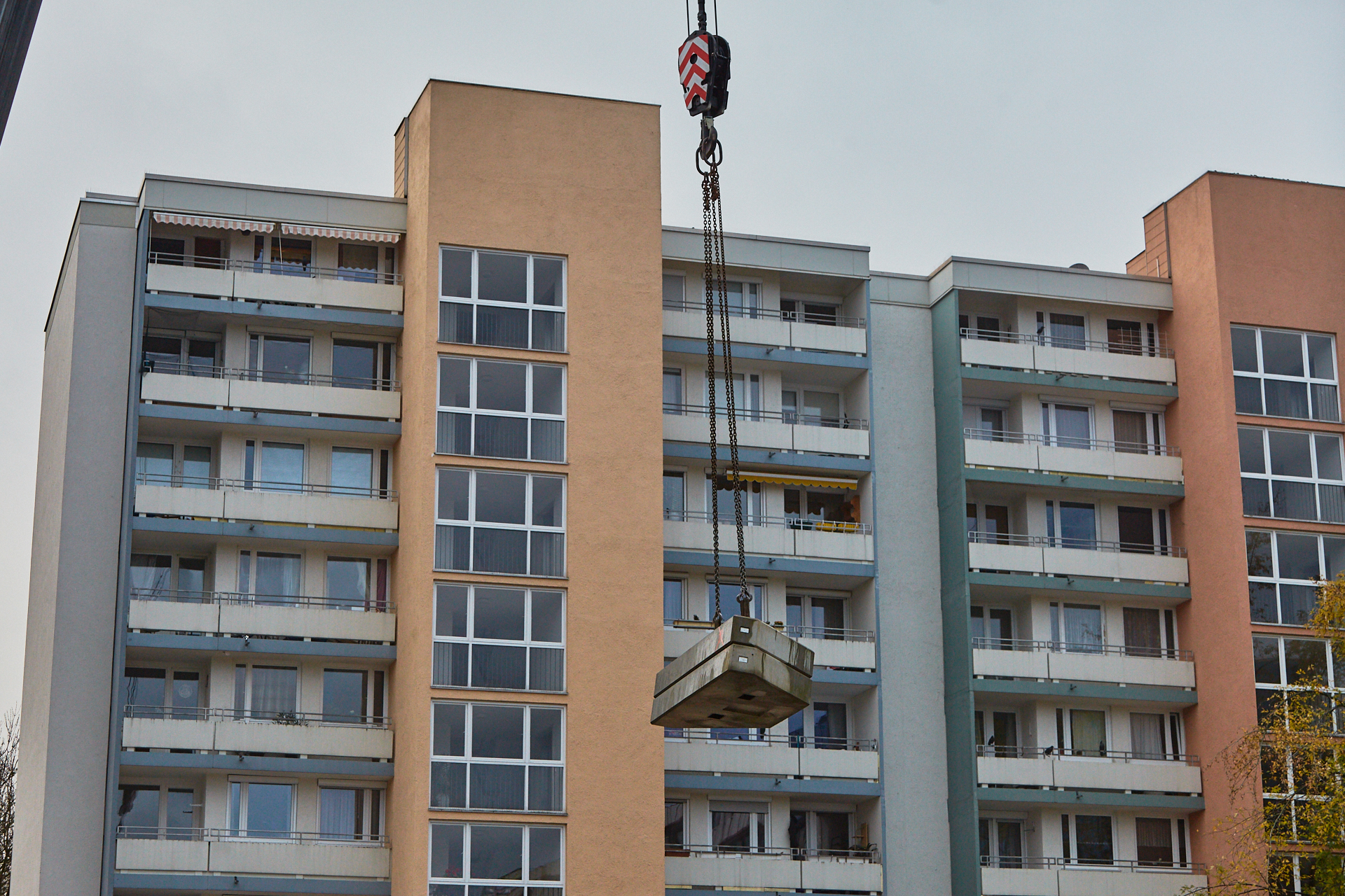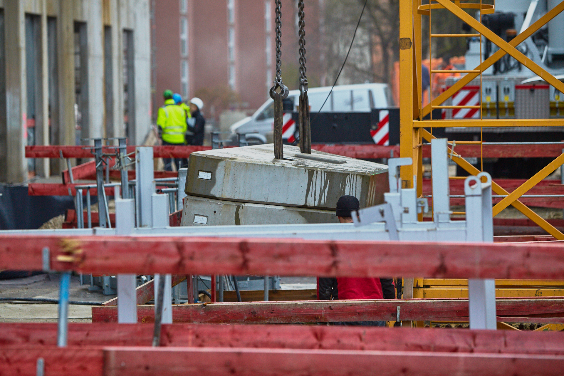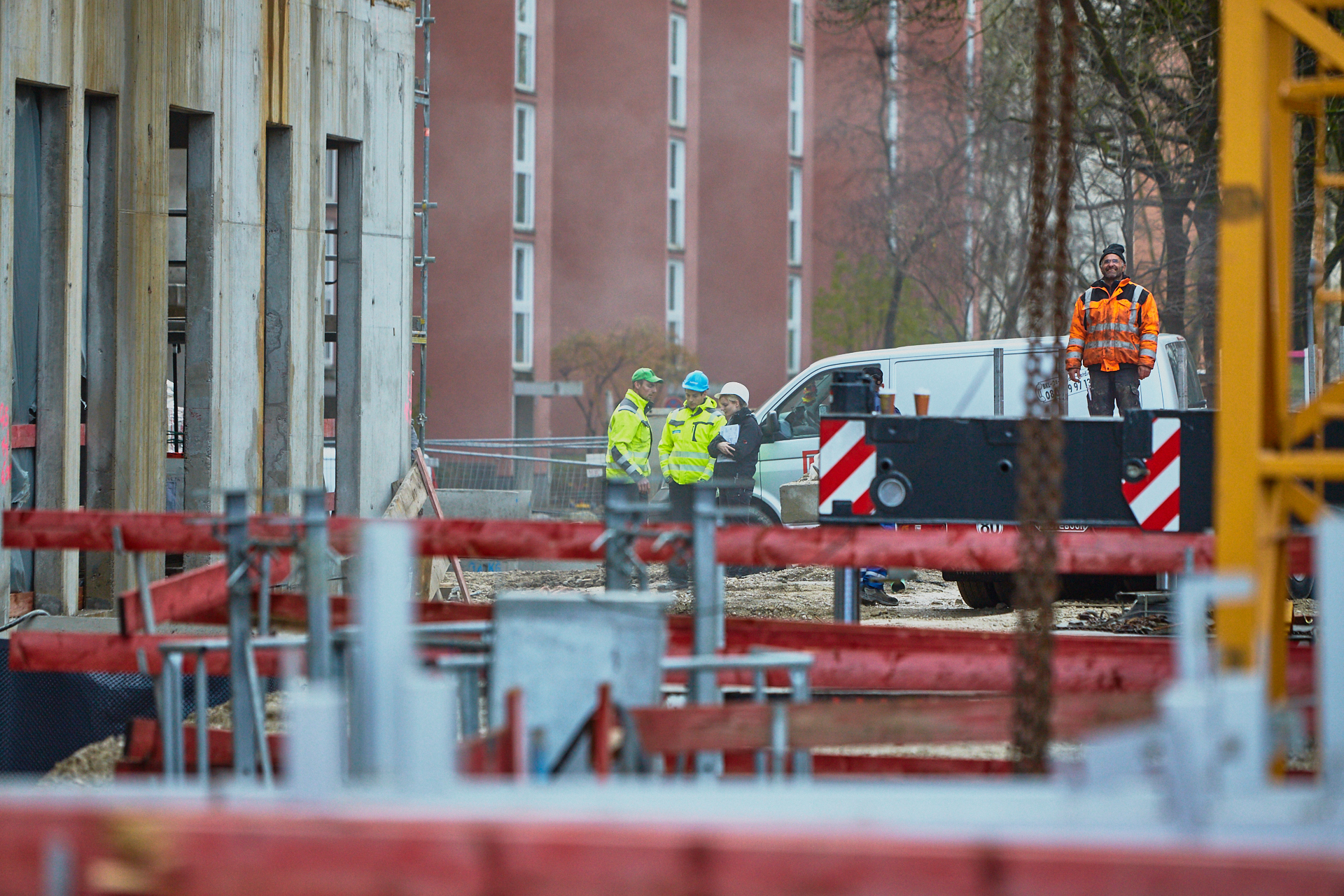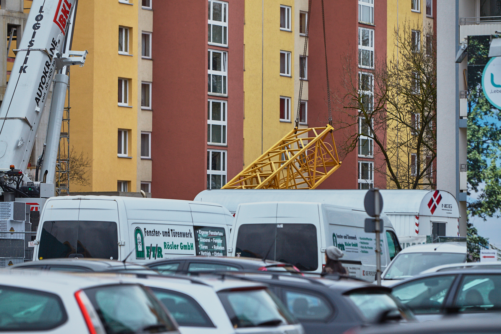 Heute wird der zweite Kran an der Baustelle LAO-HAUS abgebaut. Ein Zeichen, dass eine Bauphase zu Ende geht. Die Baustelle am LAO-Haus ist immer noch mit einem Gerüst ummantelt. Die Außenwände werden mit dicken Isoliermatten gegen Kälte gedämmt. Die Bauarbeiten gehen auf volle Touren weiter