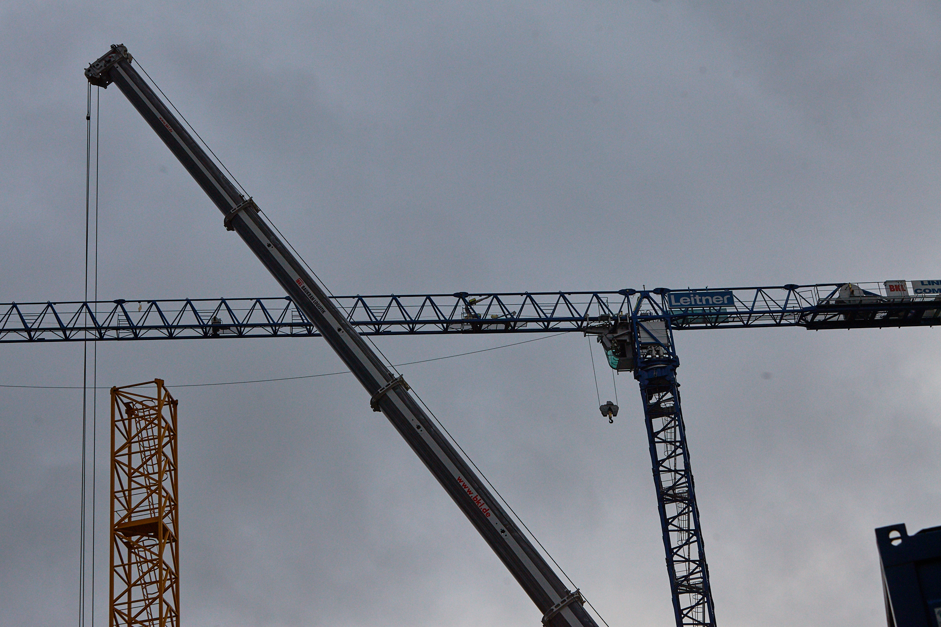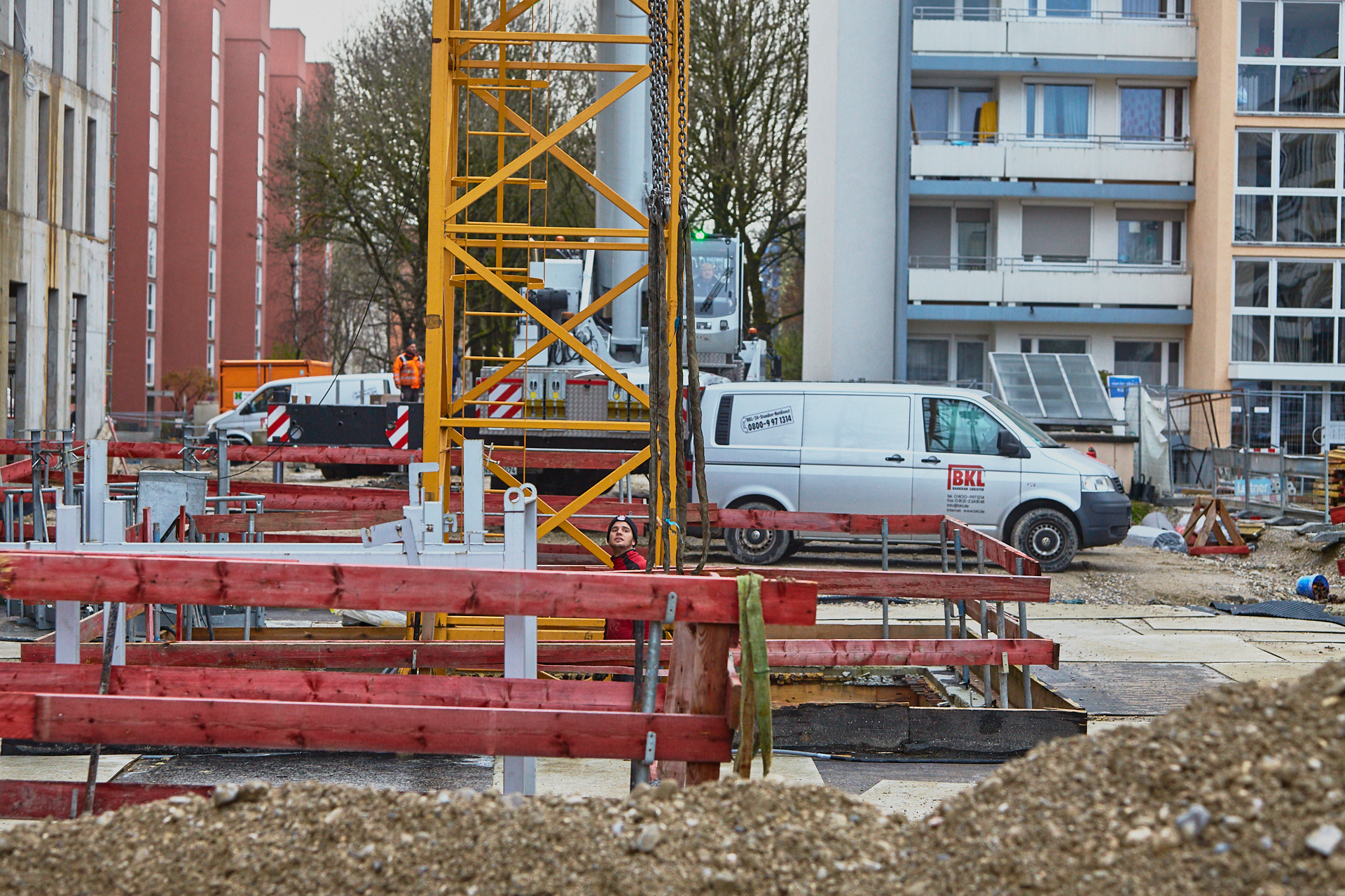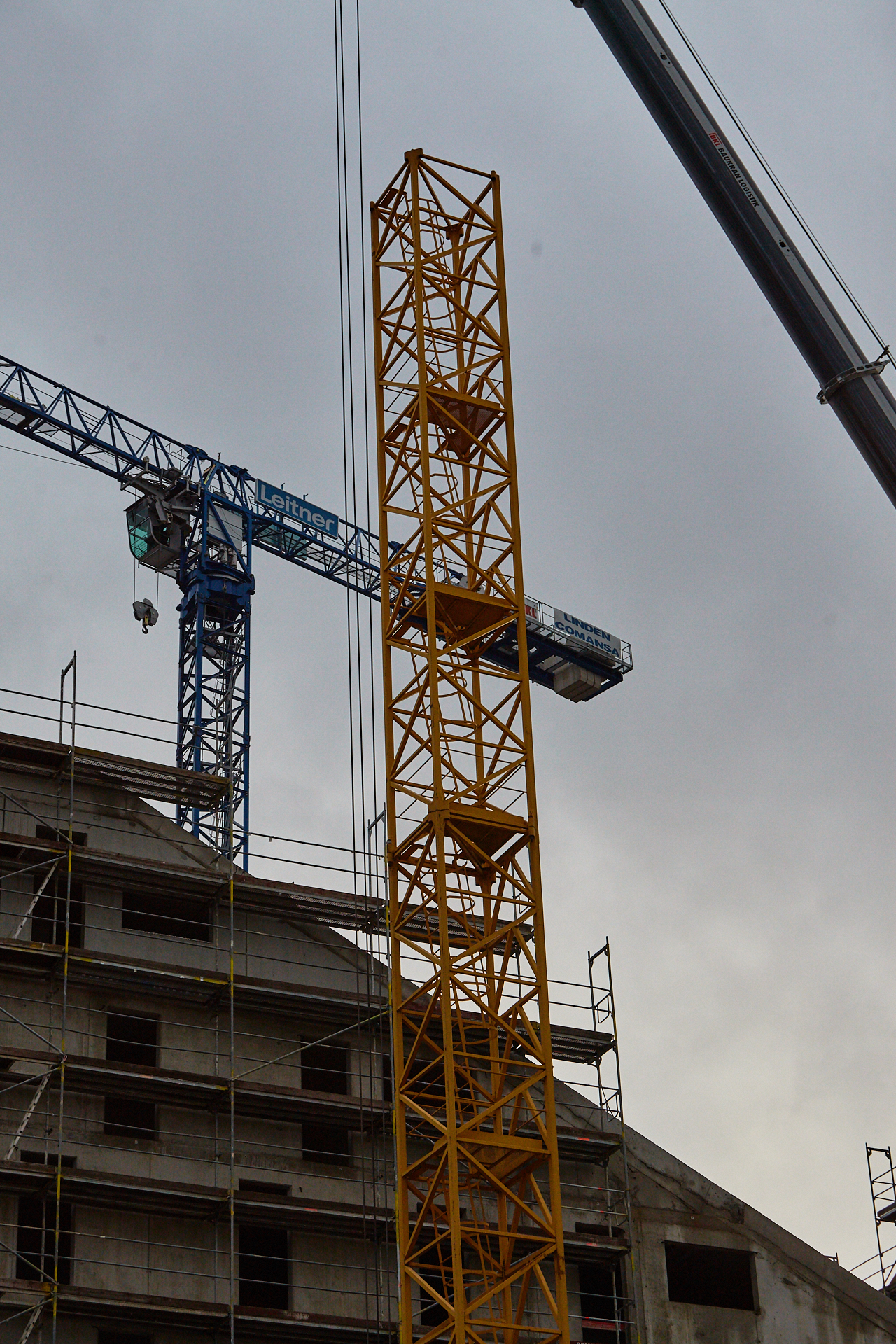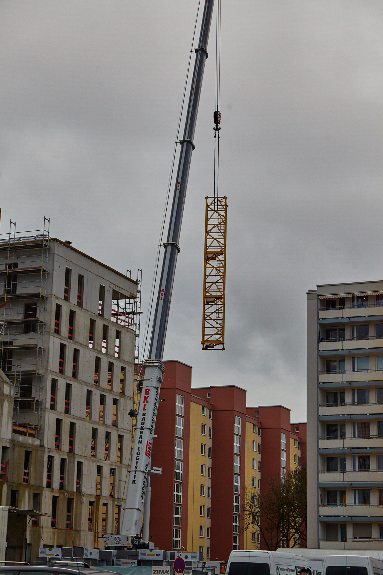Heute wird der zweite Kran an der Baustelle LAO-HAUS abgebaut. Ein Zeichen, dass eine Bauphase zu Ende geht. Die Baustelle am LAO-Haus ist immer noch mit einem Gerüst ummantelt. Die Außenwände werden mit dicken Isoliermatten gegen Kälte gedämmt. Die Bauarbeiten gehen auf volle Touren weiter