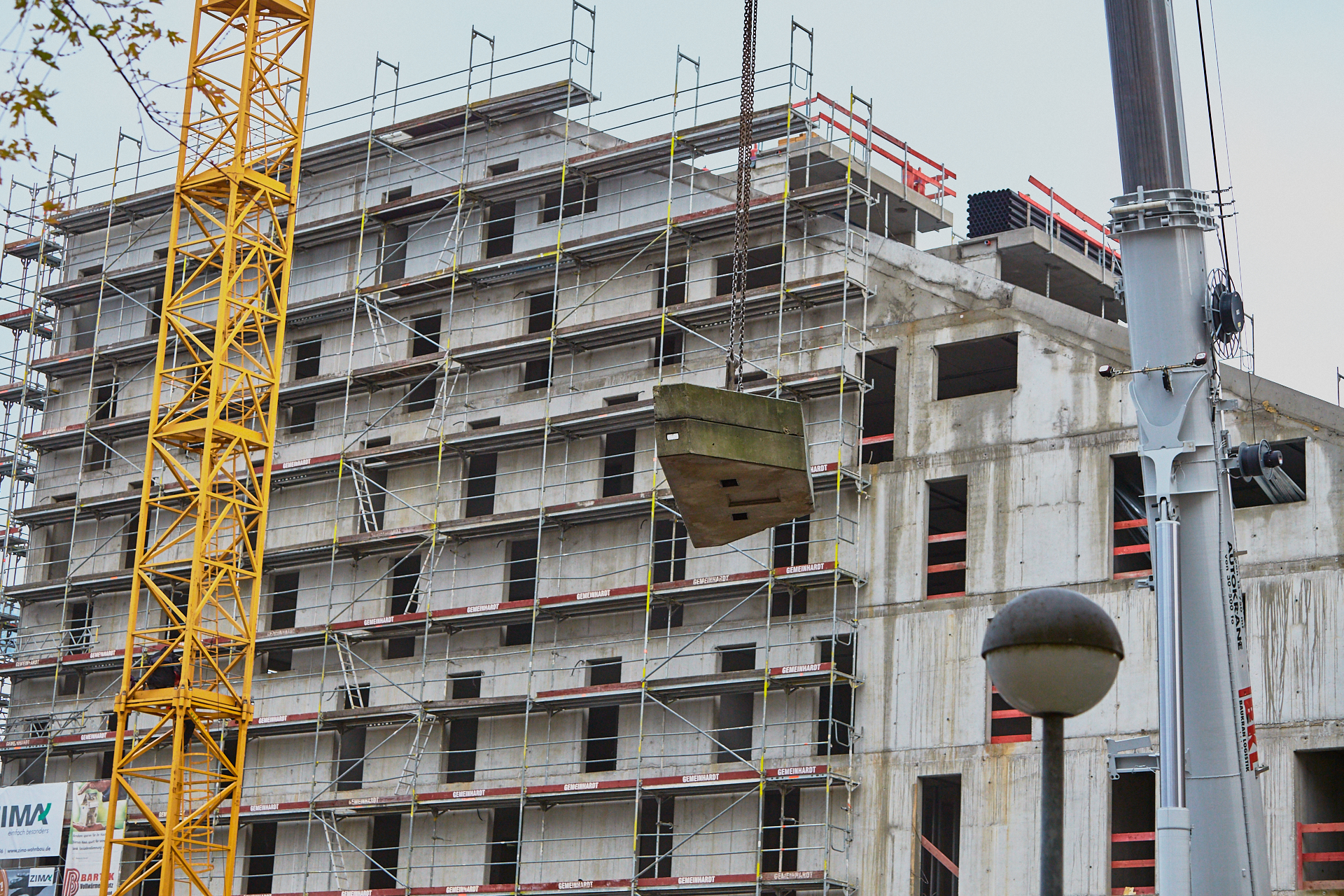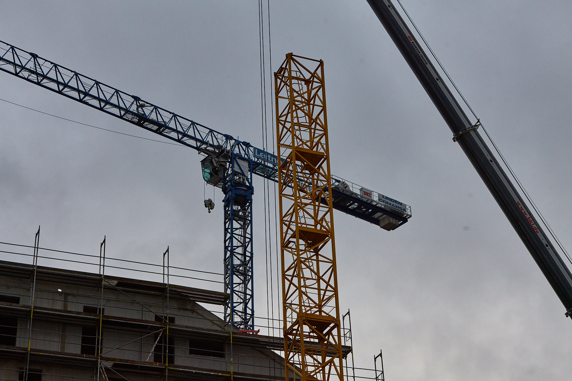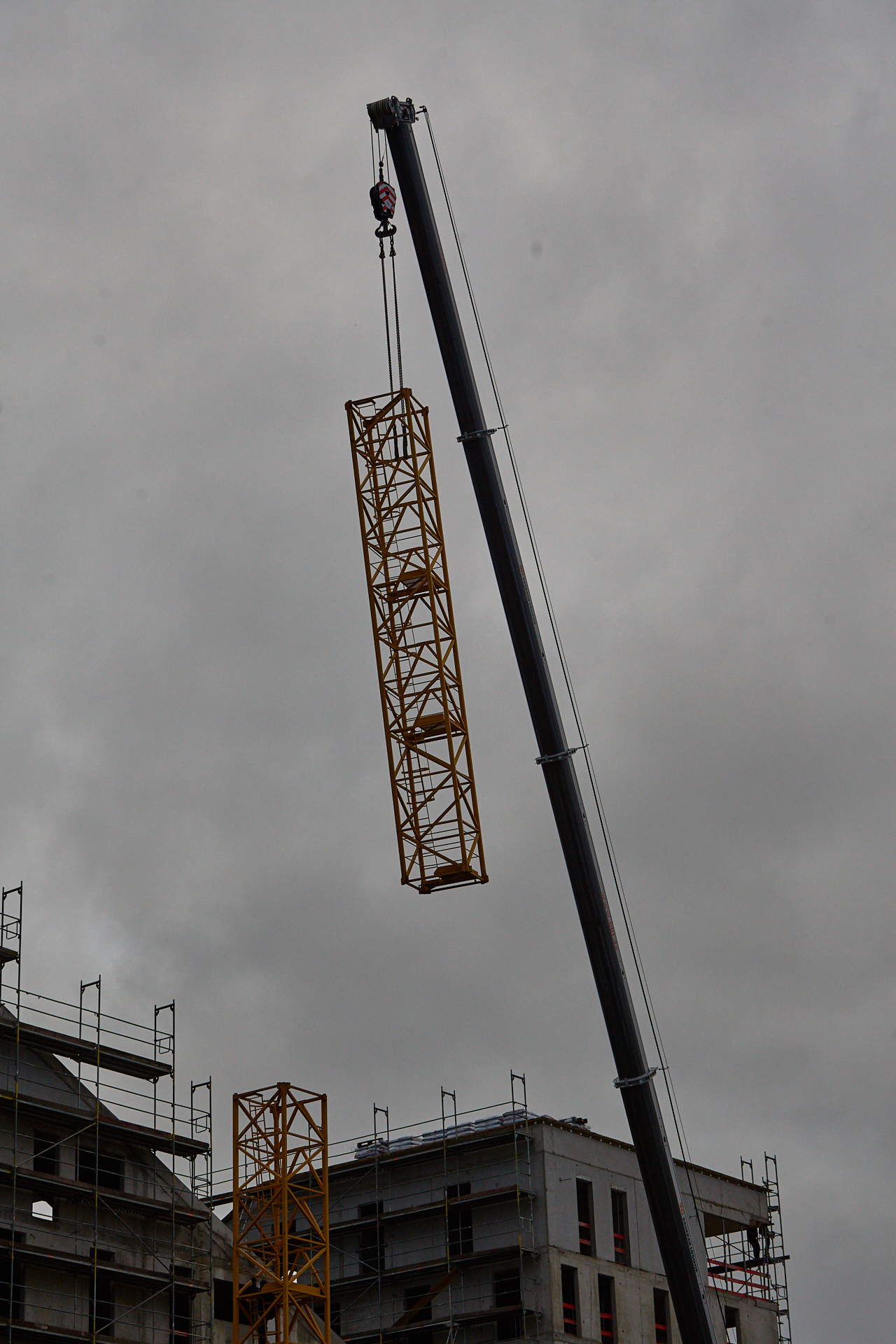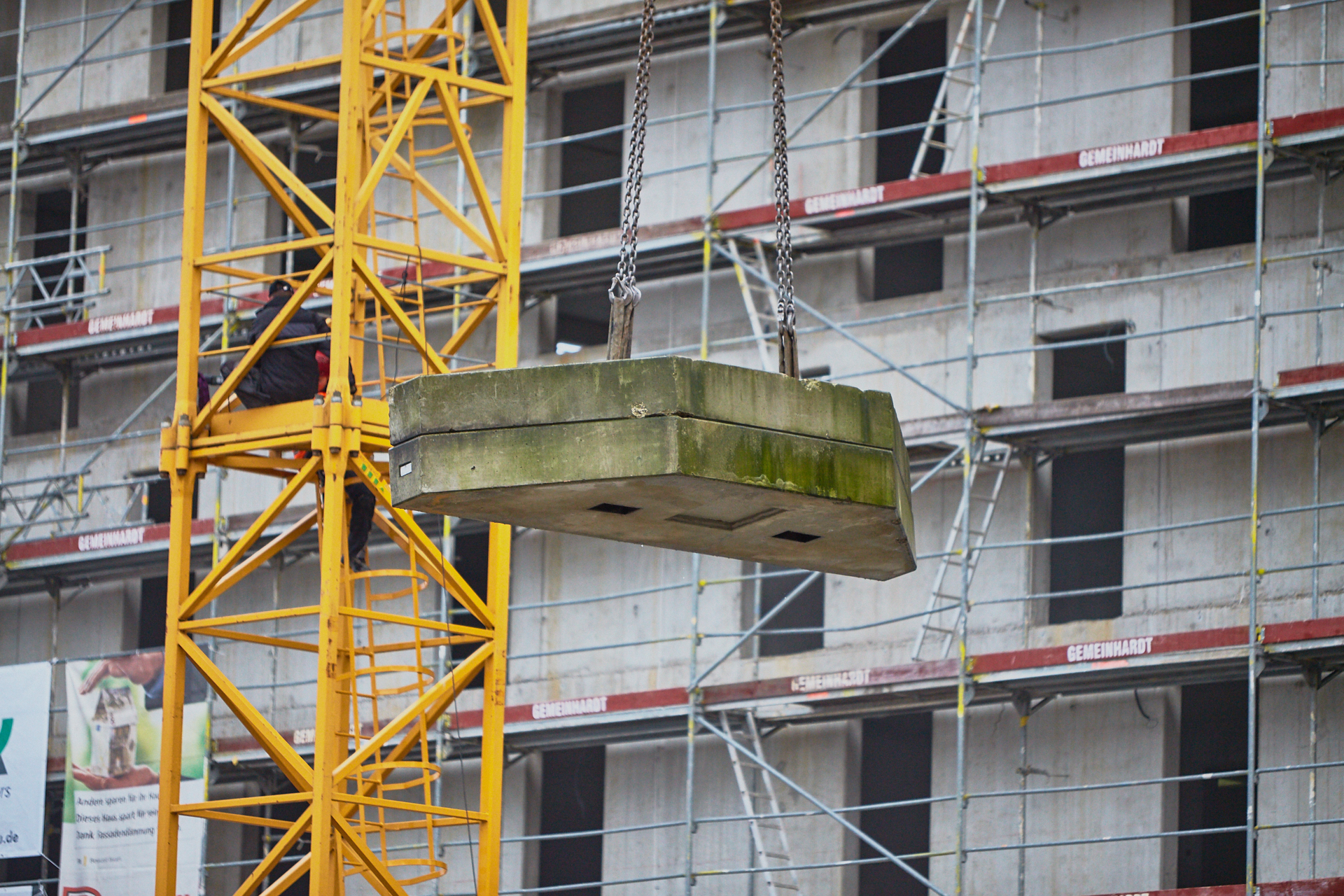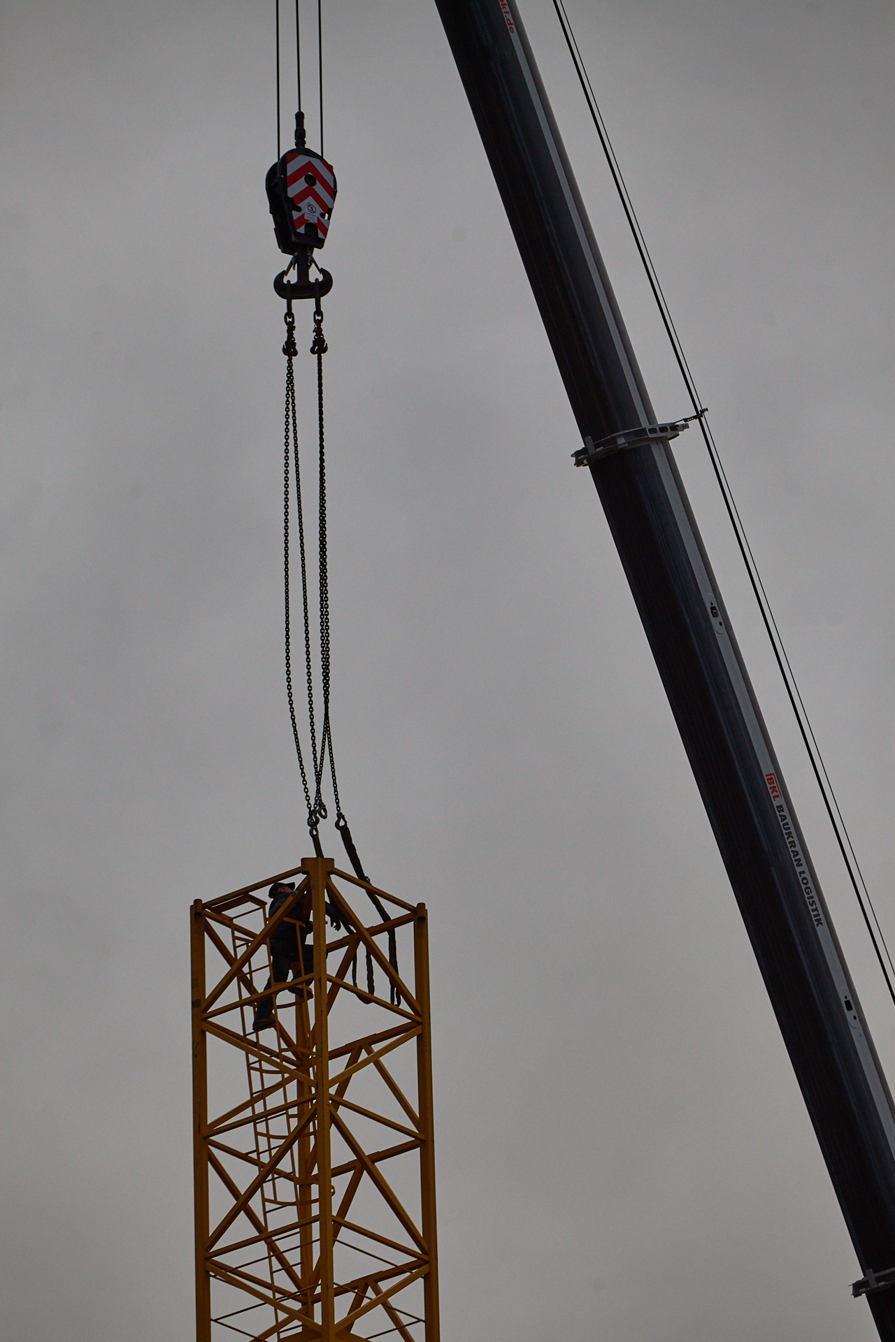 Heute wird der zweite Kran an der Baustelle LAO-HAUS abgebaut. Ein Zeichen, dass eine Bauphase zu Ende geht. Die Baustelle am LAO-Haus ist immer noch mit einem Gerüst ummantelt. Die Außenwände werden mit dicken Isoliermatten gegen Kälte gedämmt. Die Bauarbeiten gehen auf volle Touren weiter
