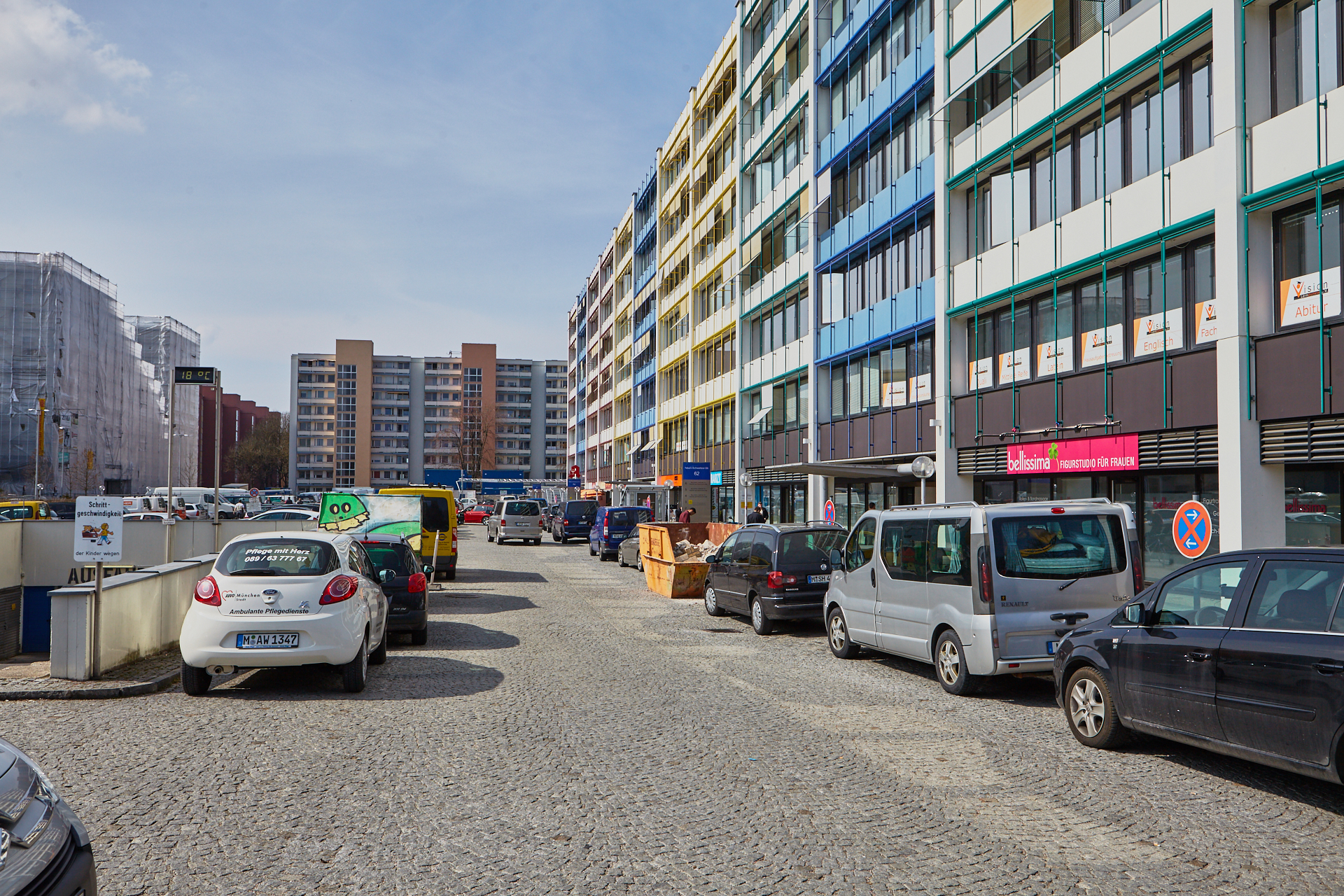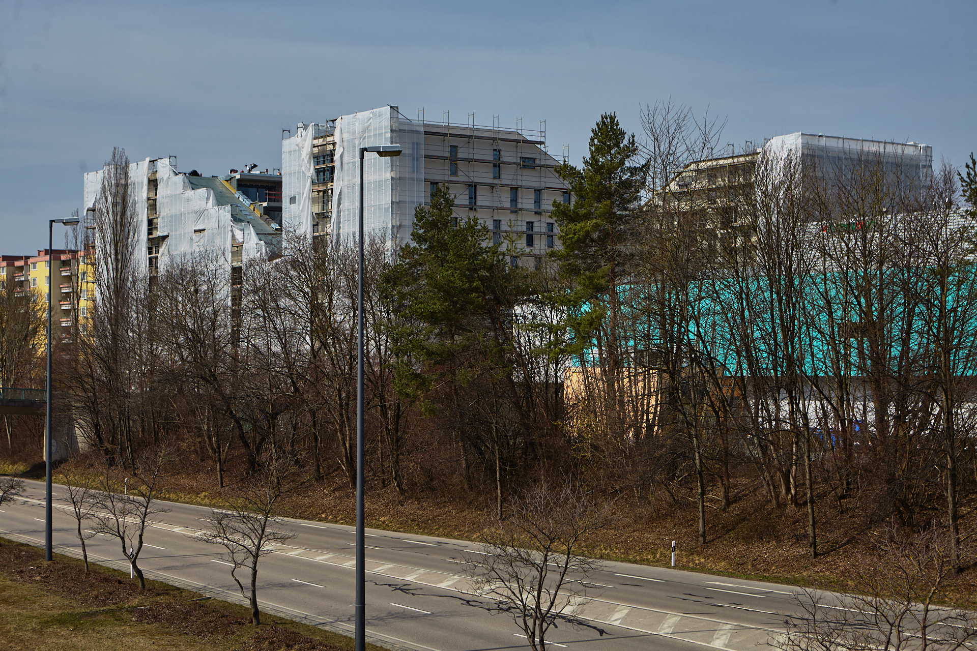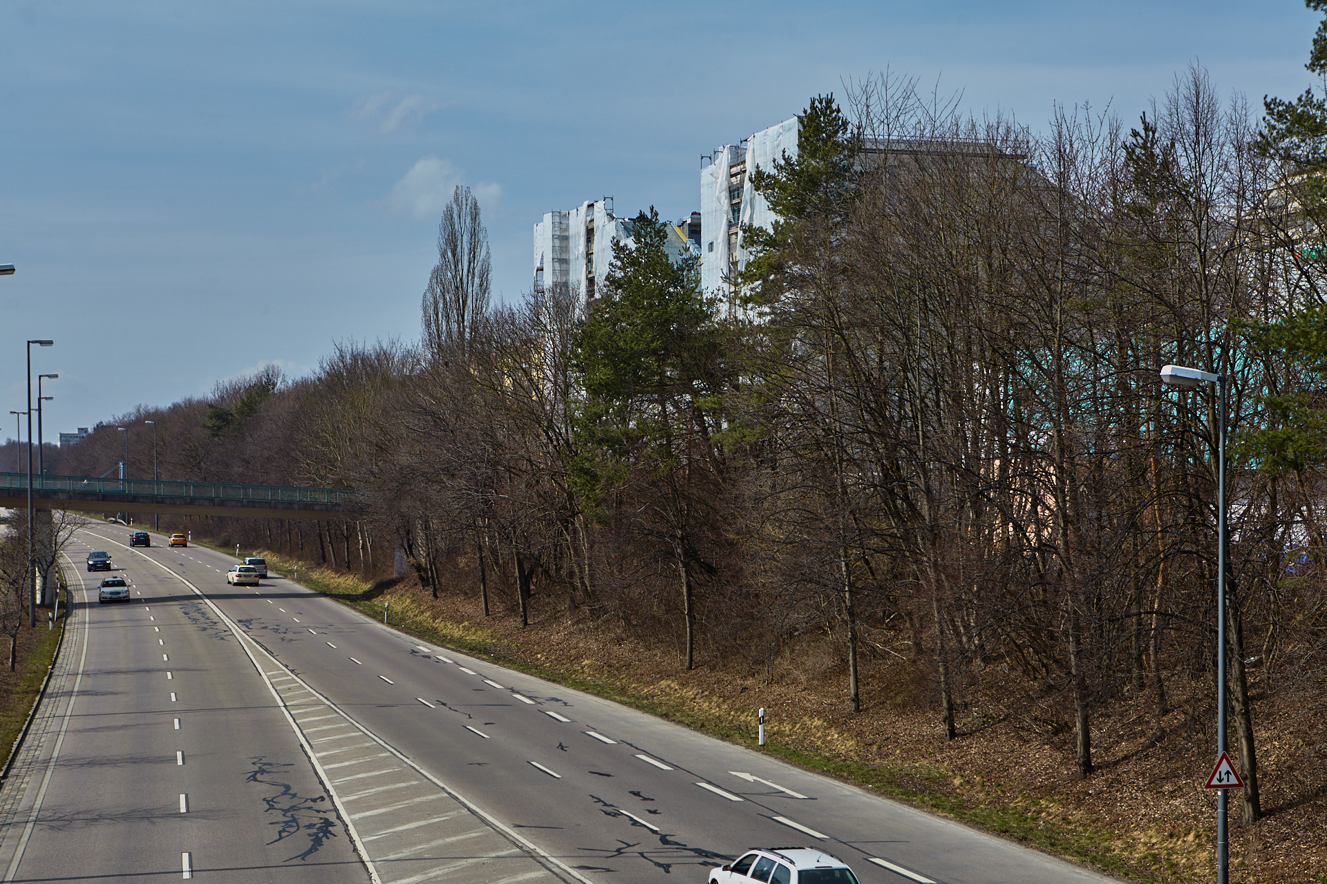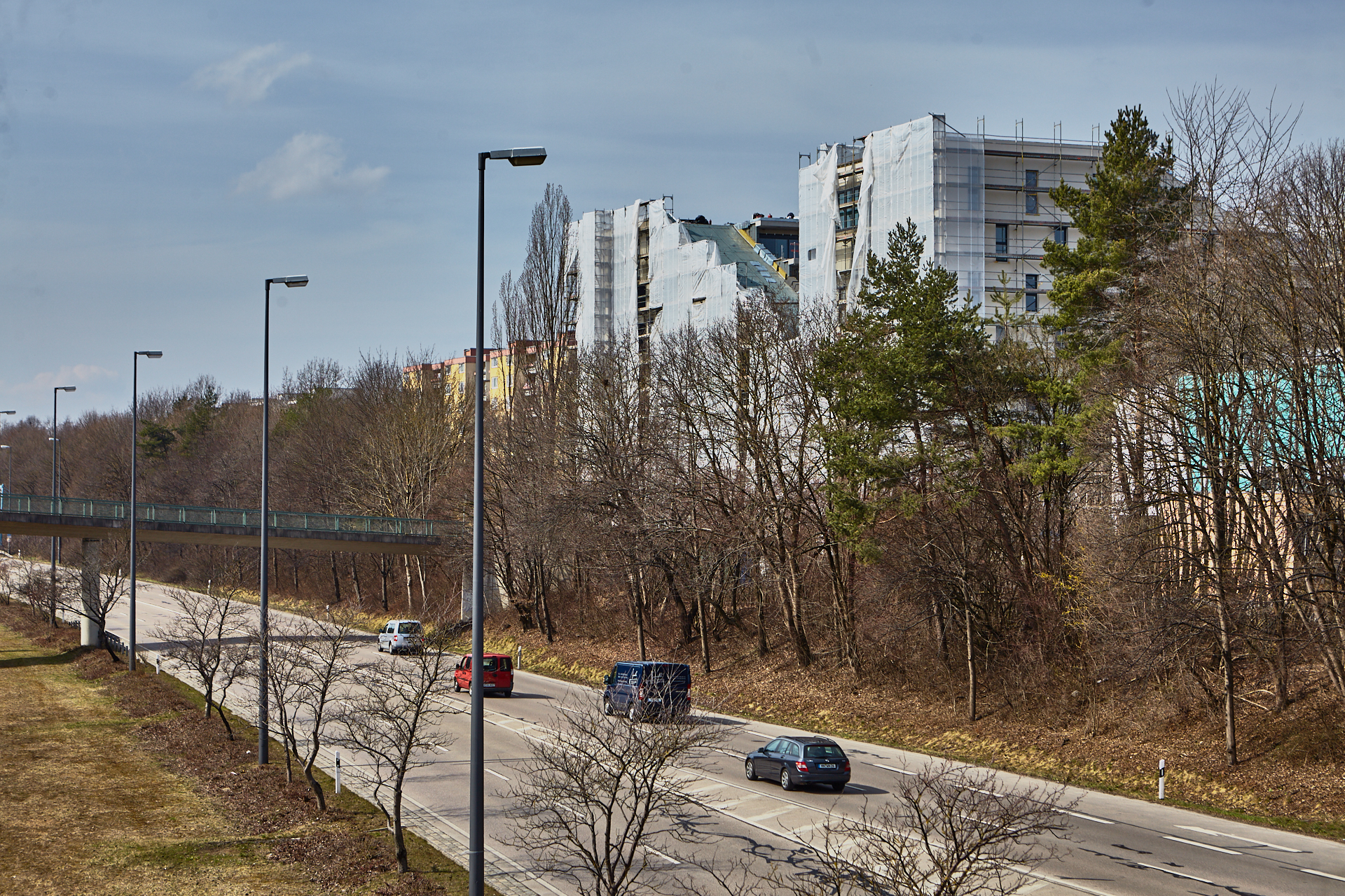Das Neuperlacher LAO-HAUS von der Ständlerstraße aus gesehen. Ein gewaltiger und interessanter Bau.