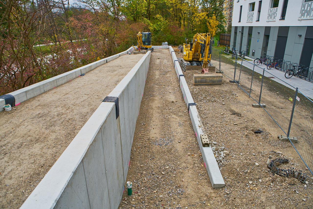 Gut zu sehen ist am heutigen Samstag den 28.10.2017, dass die neue Rampe, welche die Fehlplanung der alten Treppe ersetzten wird, eine moderate Steigung hat,